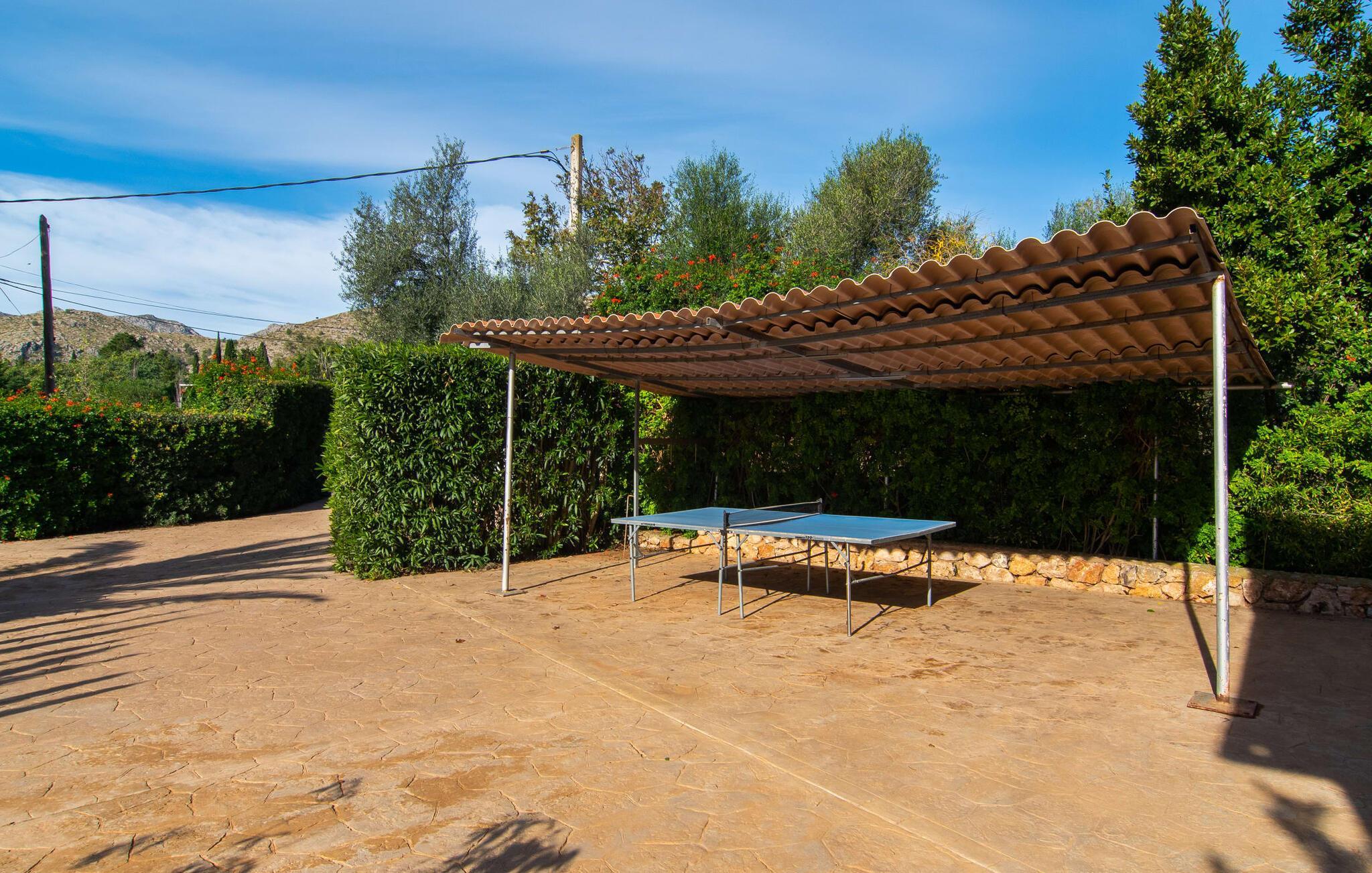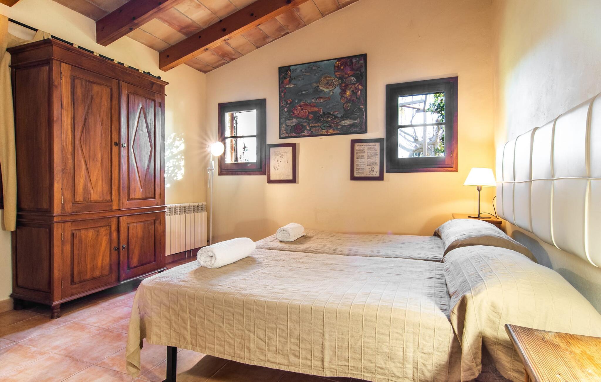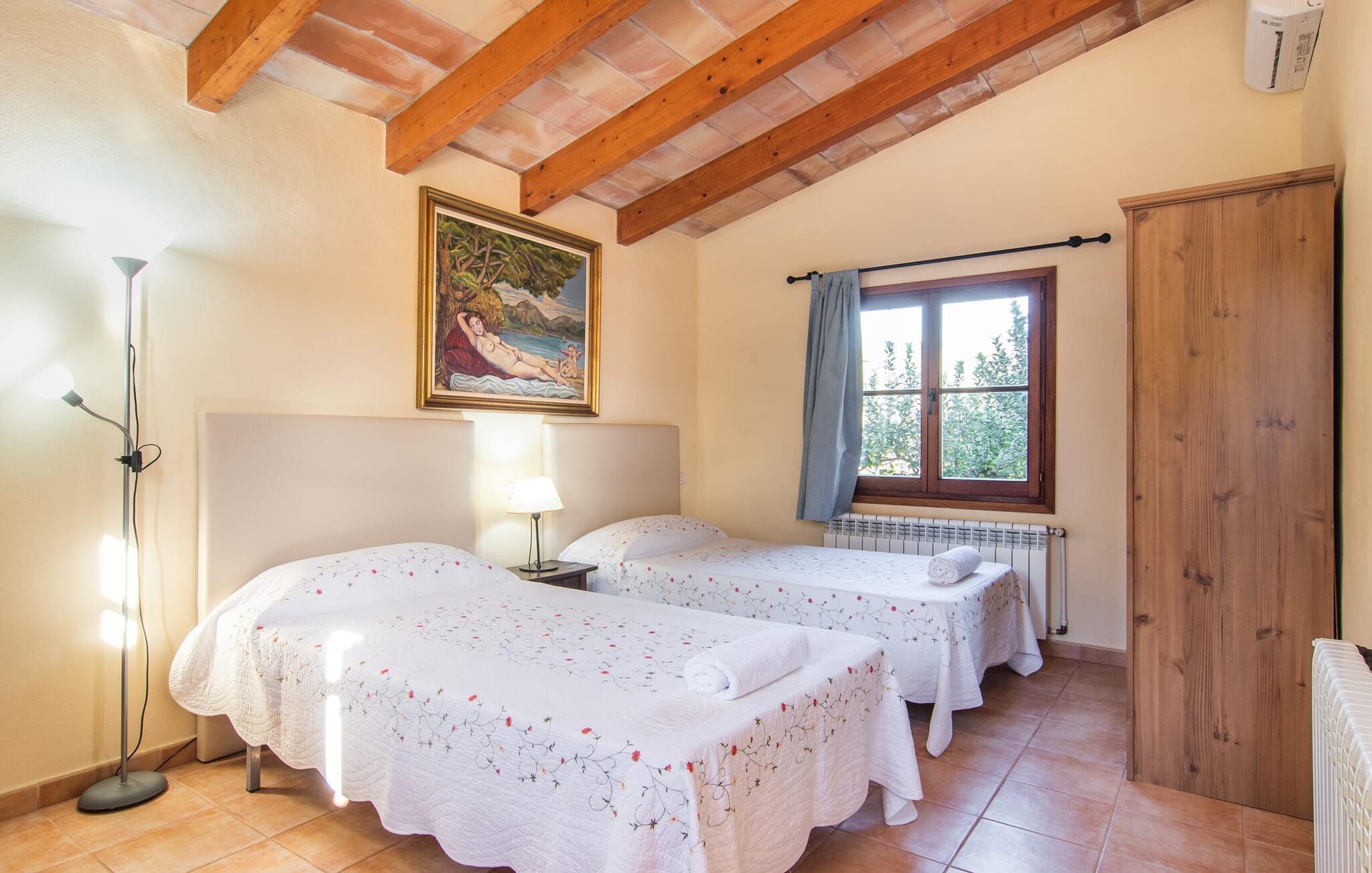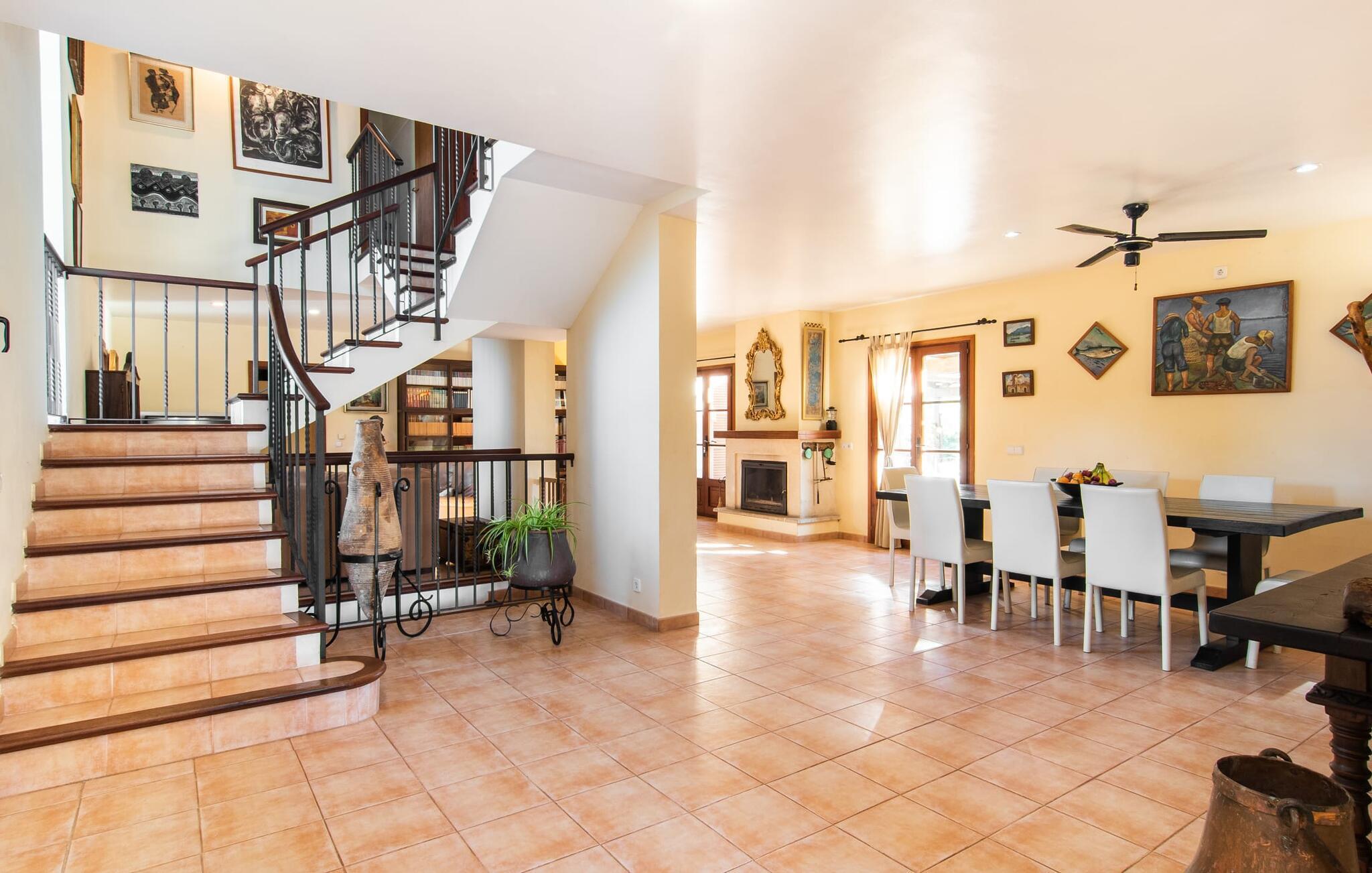 Das Innere des Hauses bietet eine Vielzahl an Annehmlichkeiten. Teracotta-Fliesen, helle Wände, eine teilweise offene Raumgestaltung und liebevoll arrangierte Accessoires sorgen für ein hohes Maß an Gemütlichkeit. Die Wohn- und Essbereiche gehen fließend ineinander über. Der Kamin ist zentral zwischen diesen Bereichen platziert und sorgt für zusätzliche Behaglichkeit an kühlen Abenden. Die voll ausgestattete Küche ist ideal zur Selbstversorgung und bietet sogar Platz für einen weiteren Tisch. Besonders praktisch ist die Durchreiche zum anderen Essbereich. Im Erdgeschoss befinden sich außerdem zwei Doppelschlafzimmer und zwei Badezimmer, eines davon en suite. Im Obergeschoss befinden sich zwei weitere Doppelschlafzimmer und zwei Badezimmer. Somit genießt man im Bauernhaus „Osfort“ ein Höchstmaß an Privatsphäre. Alle Schlafzimmer sind mit einer Klimaanlage ausgestattet, so dass auch im Hochsommer angenehm warme Nächte garantiert sind. Für Abwechslung sorgt der Billardtisch im Obergeschoss. Das ländliche und ruhige Bauernhaus „Osfort“ liegt zwischen Pollença und Port de Pollença im attraktiven Norden Mallorcas. Es ist von einem wunderbar grünen, privaten Bereich umgeben. Port de Pollença mit seinem schönen Yachthafen und dem weißen Sandstrand ist nur etwa 8 Autominuten entfernt. Dort finden Sie auch mehrere Restaurants, Bars und viele Freizeitaktivitäten.
