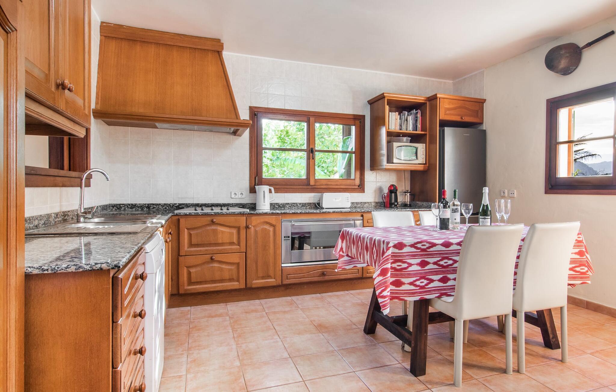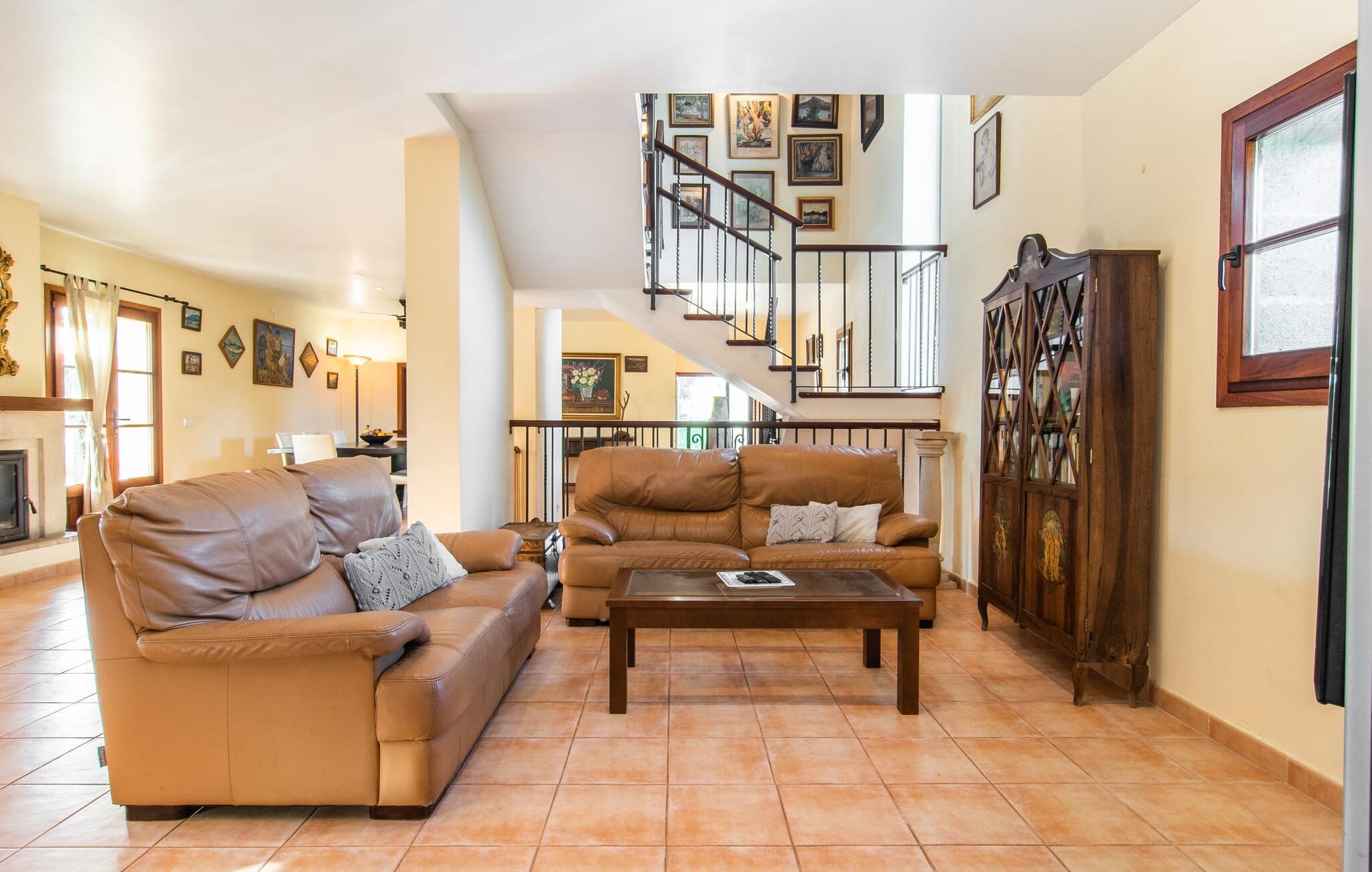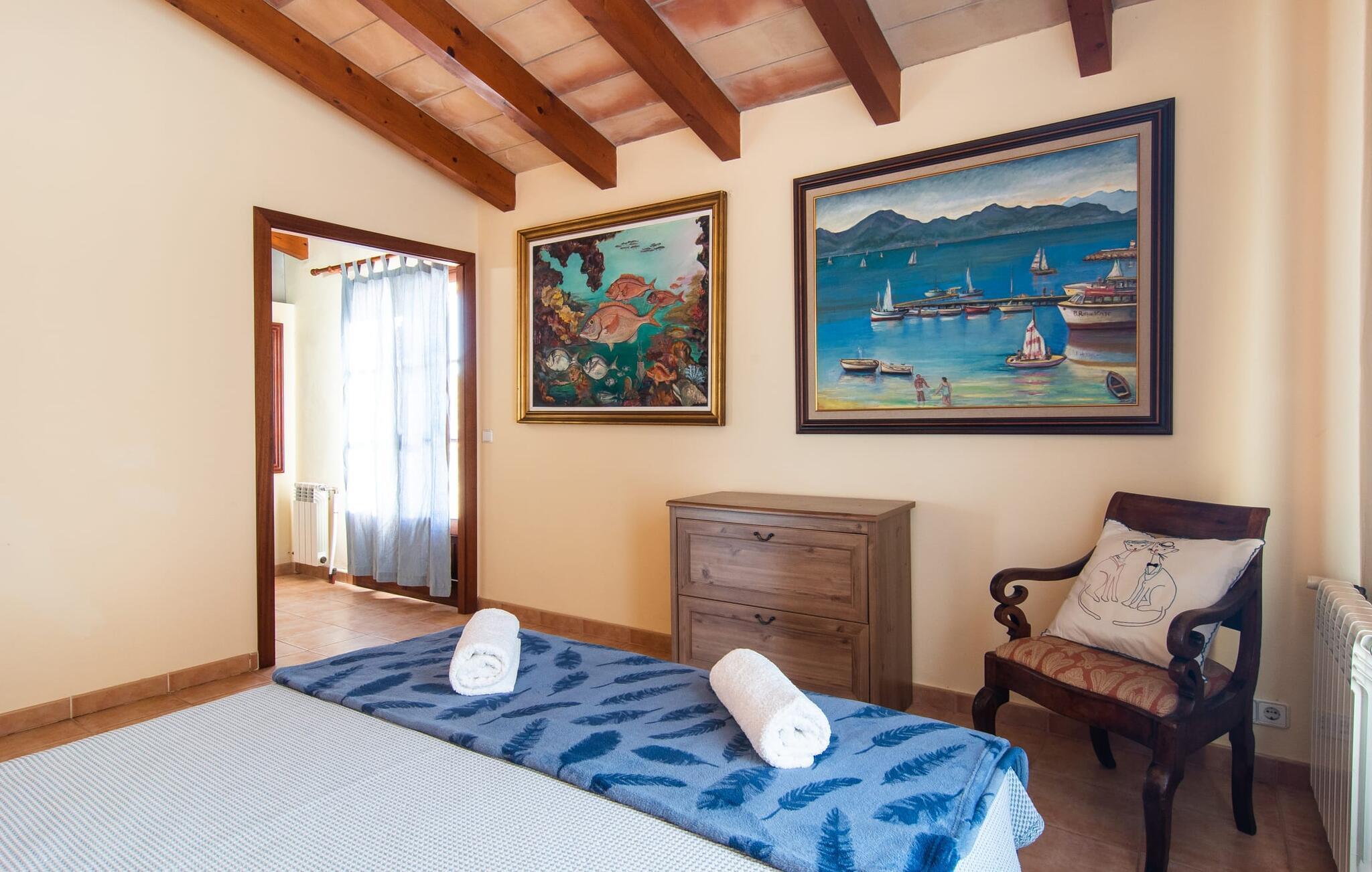 Das Innere des Hauses bietet eine Vielzahl an Annehmlichkeiten. Teracotta-Fliesen, helle Wände, eine teilweise offene Raumgestaltung und liebevoll arrangierte Accessoires sorgen für ein hohes Maß an Gemütlichkeit. Die Wohn- und Essbereiche gehen fließend ineinander über. Der Kamin ist zentral zwischen diesen Bereichen platziert und sorgt für zusätzliche Behaglichkeit an kühlen Abenden. Die voll ausgestattete Küche ist ideal zur Selbstversorgung und bietet sogar Platz für einen weiteren Tisch. Besonders praktisch ist die Durchreiche zum anderen Essbereich. Im Erdgeschoss befinden sich außerdem zwei Doppelschlafzimmer und zwei Badezimmer, eines davon en suite. Im Obergeschoss befinden sich zwei weitere Doppelschlafzimmer und zwei Badezimmer. Somit genießt man im Bauernhaus „Osfort“ ein Höchstmaß an Privatsphäre. Alle Schlafzimmer sind mit einer Klimaanlage ausgestattet, so dass auch im Hochsommer angenehm warme Nächte garantiert sind. Für Abwechslung sorgt der Billardtisch im Obergeschoss. Das ländliche und ruhige Bauernhaus „Osfort“ liegt zwischen Pollença und Port de Pollença im attraktiven Norden Mallorcas. Es ist von einem wunderbar grünen, privaten Bereich umgeben. Port de Pollença mit seinem schönen Yachthafen und dem weißen Sandstrand ist nur etwa 8 Autominuten entfernt. Dort finden Sie auch mehrere Restaurants, Bars und viele Freizeitaktivitäten.