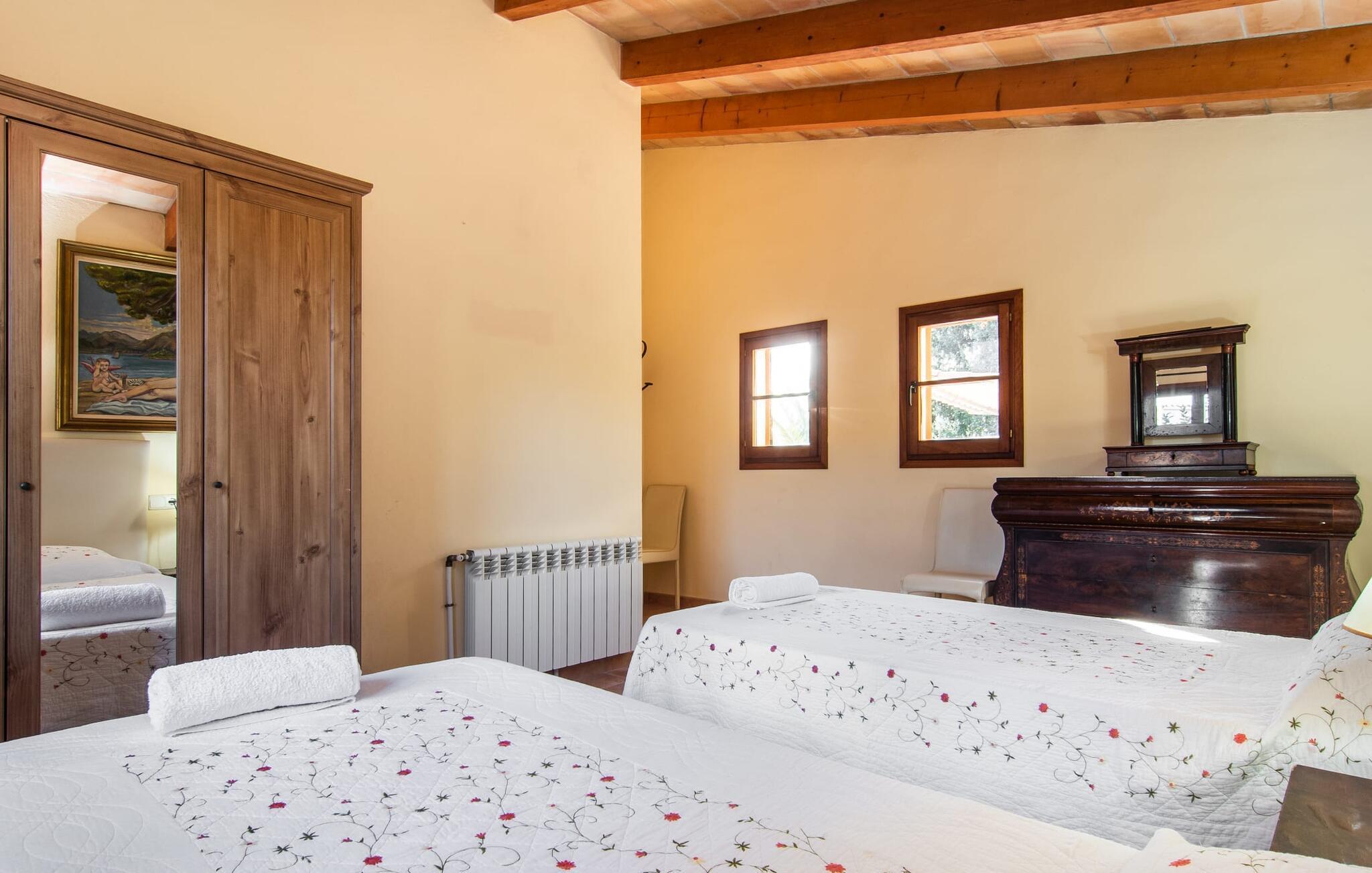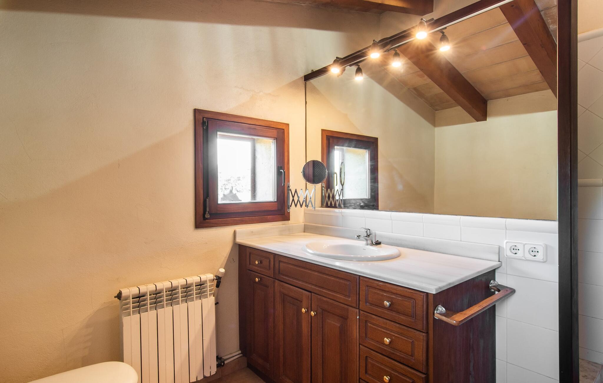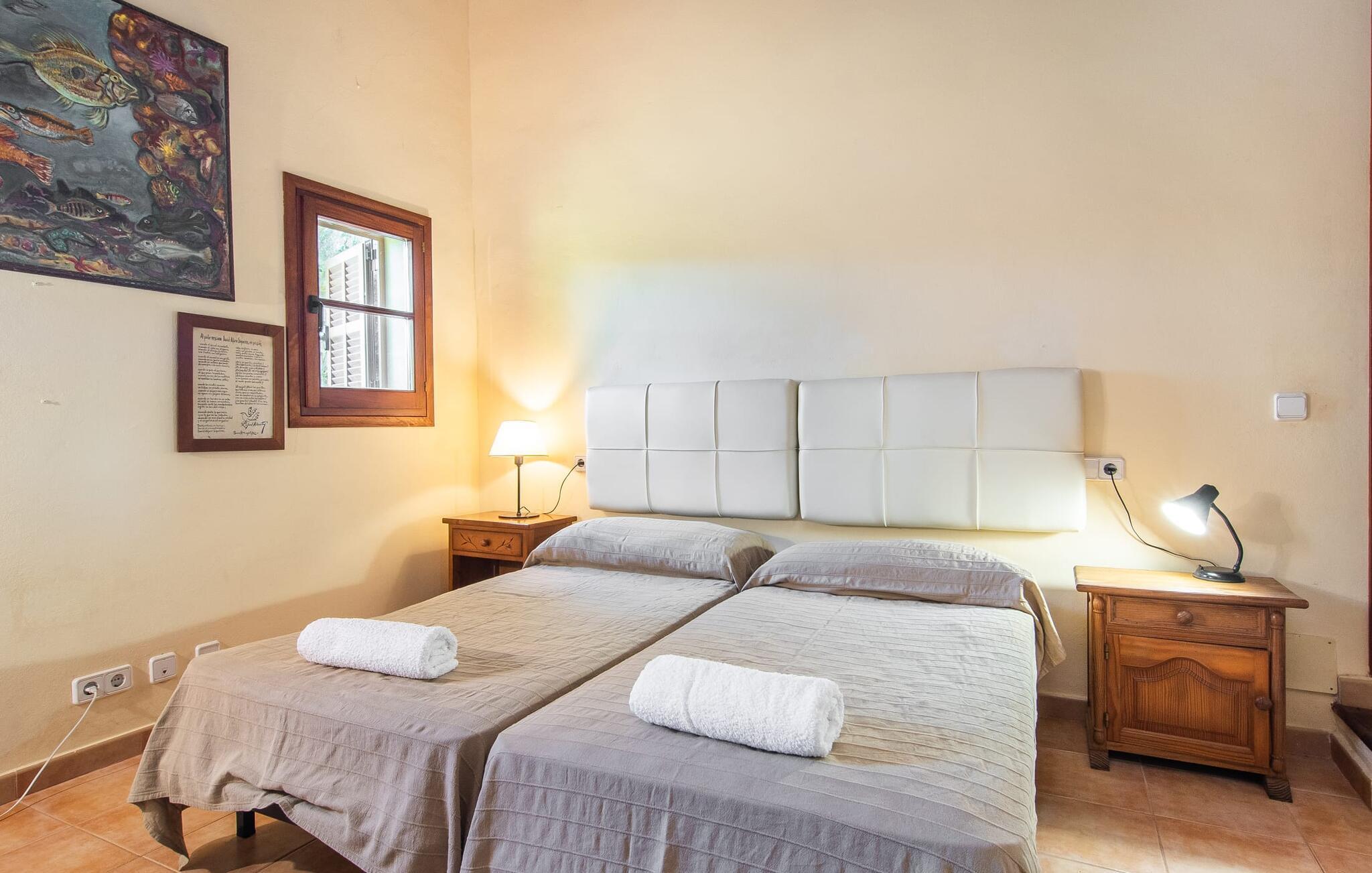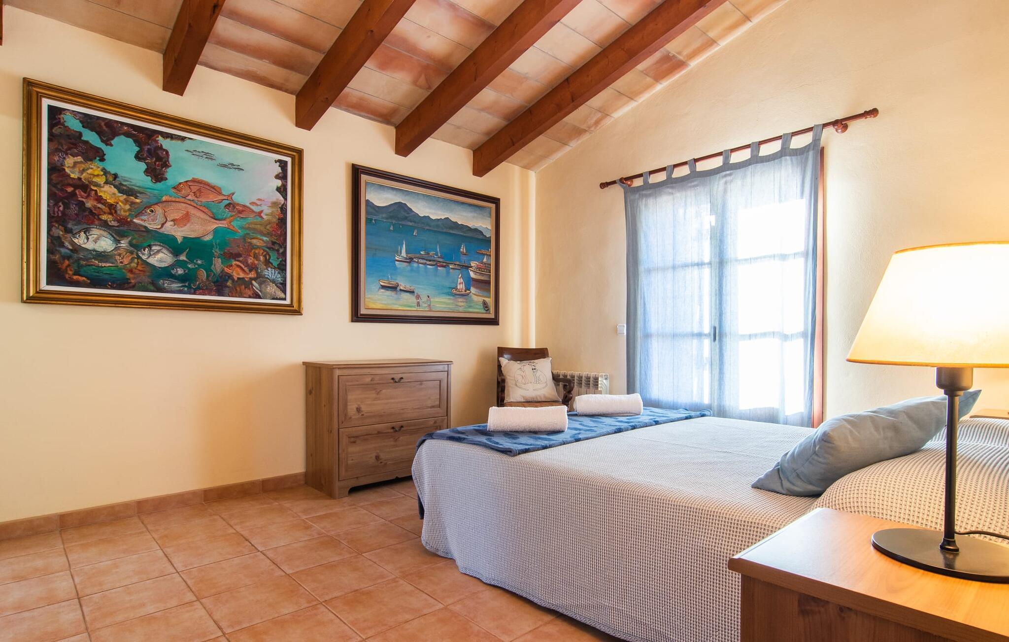 Das Innere des Hauses bietet eine Vielzahl an Annehmlichkeiten. Teracotta-Fliesen, helle Wände, eine teilweise offene Raumgestaltung und liebevoll arrangierte Accessoires sorgen für ein hohes Maß an Gemütlichkeit. Die Wohn- und Essbereiche gehen fließend ineinander über. Der Kamin ist zentral zwischen diesen Bereichen platziert und sorgt für zusätzliche Behaglichkeit an kühlen Abenden. Die voll ausgestattete Küche ist ideal zur Selbstversorgung und bietet sogar Platz für einen weiteren Tisch. Besonders praktisch ist die Durchreiche zum anderen Essbereich. Im Erdgeschoss befinden sich außerdem zwei Doppelschlafzimmer und zwei Badezimmer, eines davon en suite. Im Obergeschoss befinden sich zwei weitere Doppelschlafzimmer und zwei Badezimmer. Somit genießt man im Bauernhaus „Osfort“ ein Höchstmaß an Privatsphäre. Alle Schlafzimmer sind mit einer Klimaanlage ausgestattet, so dass auch im Hochsommer angenehm warme Nächte garantiert sind. Für Abwechslung sorgt der Billardtisch im Obergeschoss. Das ländliche und ruhige Bauernhaus „Osfort“ liegt zwischen Pollença und Port de Pollença im attraktiven Norden Mallorcas. Es ist von einem wunderbar grünen, privaten Bereich umgeben. Port de Pollença mit seinem schönen Yachthafen und dem weißen Sandstrand ist nur etwa 8 Autominuten entfernt. Dort finden Sie auch mehrere Restaurants, Bars und viele Freizeitaktivitäten.