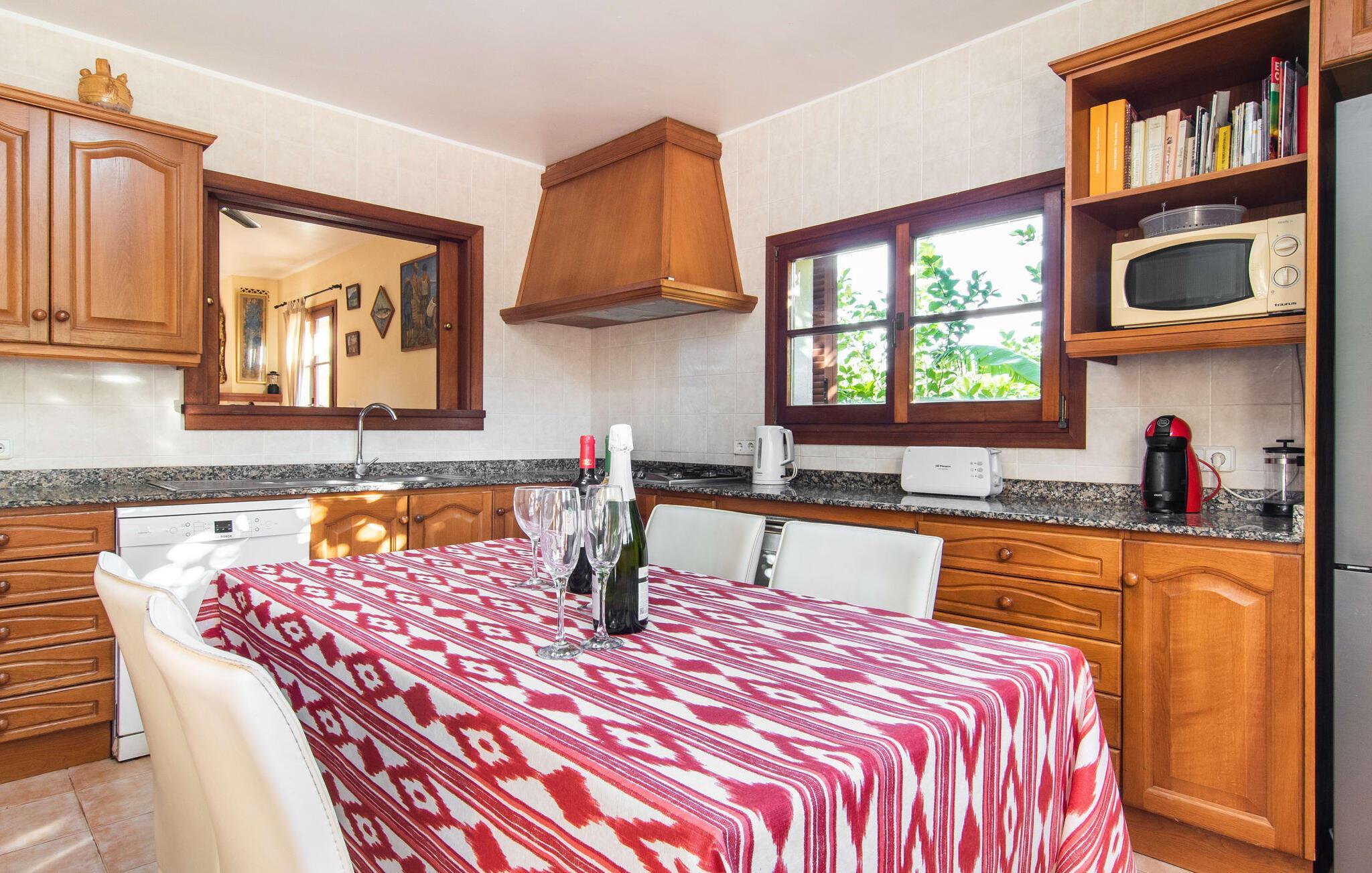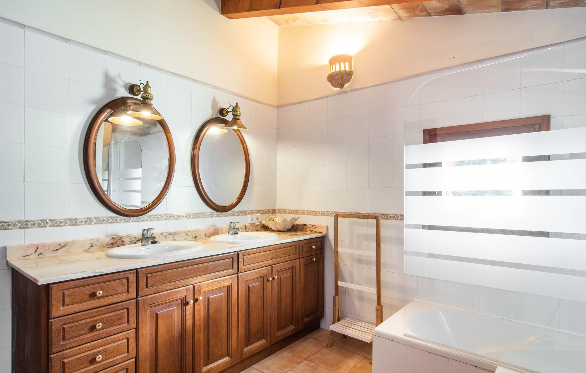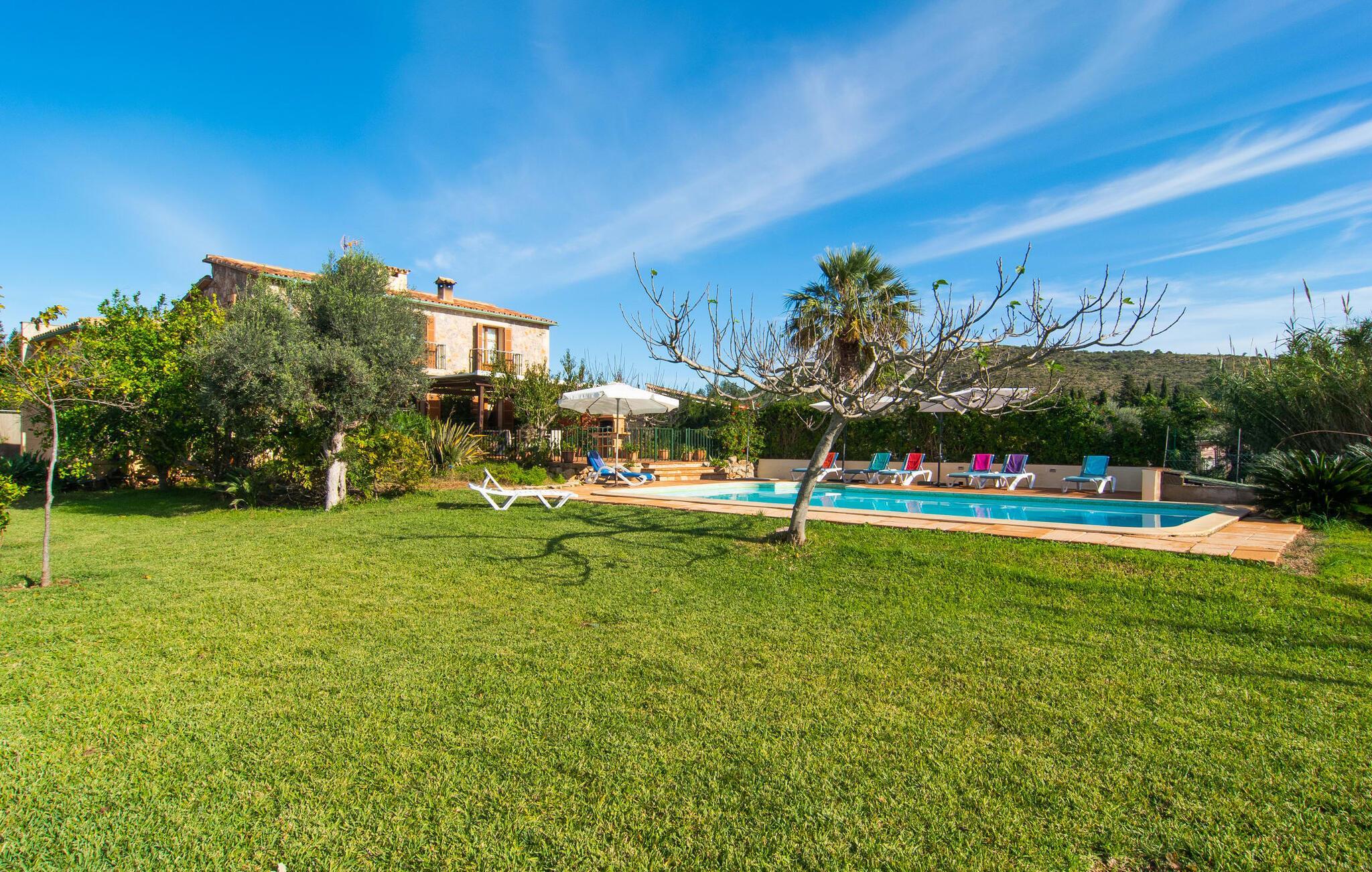 Dieses schöne, gut ausgestattete Landhaus auf Mallorca ist ideal für Familien, die Ruhe suchen und das Meer in unmittelbarer Nähe haben möchten. Sie wohnen hier in einer abwechslungsreichen Landschaft und genießen ein eingewachsenes Anwesen mit mediterraner Vegetation und teilweise altem Baumbestand. Für mitreisende Kinder ist die Liegewiese eine attraktive Spiel- und Tobefläche. Ebenso steht der Pool natürlich nicht nur für sportliche Bahnen, sondern auch für ausgelassenes Planschen zur Verfügung. Bei Bedarf kann der Zugang kindersicher verschlossen werden. Der Pool ist besonders bequem über eine Treppe zu erreichen. Auf der angrenzenden Terrasse stehen genügend Liegen für entspannte Stunden unter mediterranem Himmel bereit. Die teilweise überdachte Veranda liegt leicht erhöht und lädt mit einem Esstisch und einer Lounge zum geselligen Beisammensein ein. Der Grill lädt dazu ein, in der warmen Jahreszeit die meiste Zeit draußen zu verbringen.