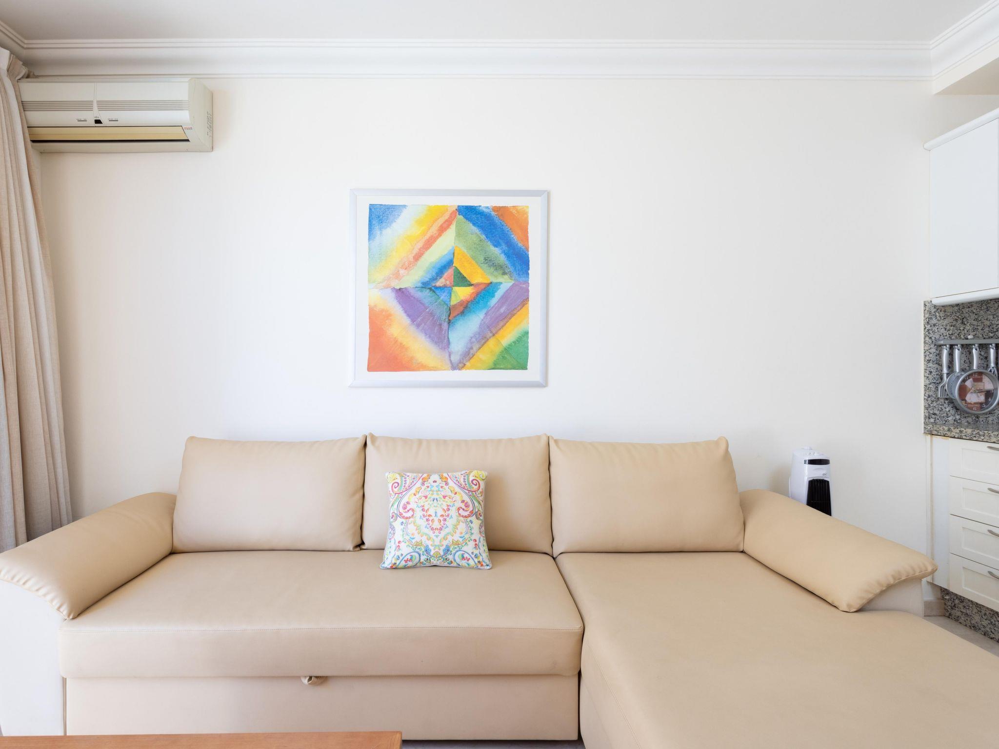 Appartementhaus "El Faro". 300 m vom Meer. Zur Mitbenutzung: Grundstück, Schwimmbad beheizt (saisonale Verfügbarkeit: 01.Jan. - 31.Dez.). Ungleichmässige Schwimmbadform, Aussendusche, öffentliche Parkplätze. Supermarkt, Restaurant 100 m, Bushaltestelle 100 m, Steinstrand 300 m. Golfplatz (9 Loch) 3.8 km.