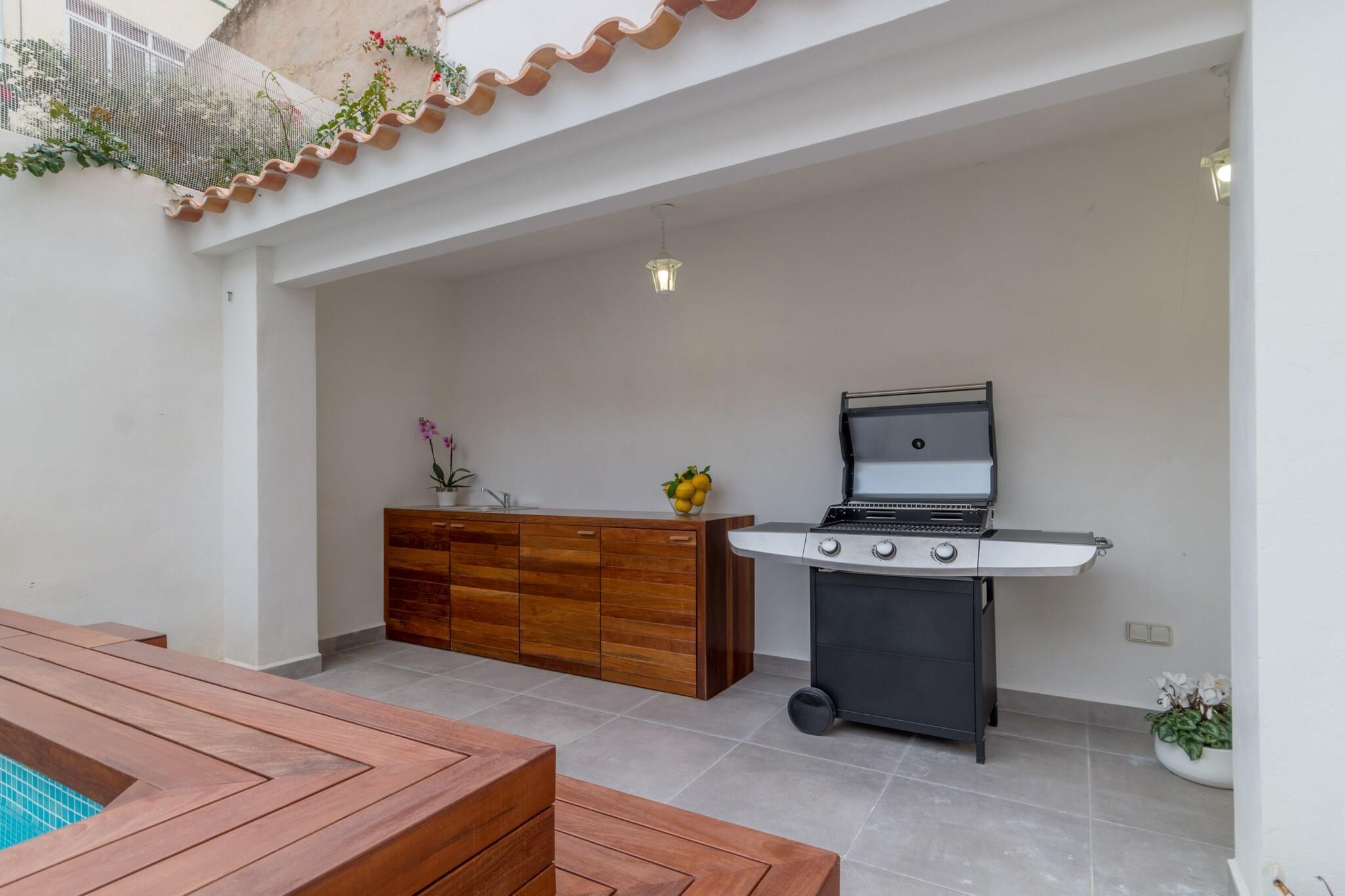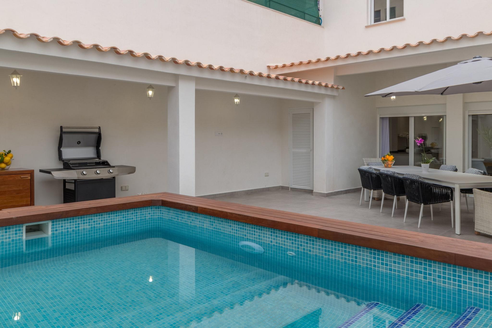 Diese moderne und geschmackvoll eingerichtete Villa Miquel Santandreu 40 auf Mallorca bietet großzügige 190 m² Wohnfläche und bietet mit ihren fünf stilvollen Schlafzimmern bequem Platz für bis zu zehn Gäste. Das Anwesen verfügt über einen einladenden privaten Pool, der zum Abkühlen und Genießen des mediterranen Klimas einlädt. Klimaanlage und Wärmepumpe sorgen für ganzjährigen Komfort. WLAN, sechs Fernseher mit Satellitenkanälen in mehreren Sprachen und weitere Annehmlichkeiten sorgen für einen angenehmen Aufenthalt. Die zentrale Lage und die gute Anbindung an öffentliche Verkehrsmittel wie Bus- und U-Bahn-Stationen sind fußläufig erreichbar, sodass Sie die Umgebung ideal erkunden können. Diese Villa im Herzen von Palma liegt nur 800 Meter vom Sandstrand Platja de Can Pere Antoni entfernt. In der Nähe finden Sie zahlreiche Restaurants, Cafés und Supermärkte, darunter Mercadona, Lidl und Eroski. Erkunden Sie das pulsierende Stadtzentrum mit Palmas historischen Sehenswürdigkeiten, Einkaufsvierteln und kulturellen Attraktionen nur 1 km entfernt. Die Immobilie liegt außerdem günstig in der Nähe von Palmas Bahnhof und U-Bahn-Stationen, sodass Sie bequem zu nahegelegenen Stränden wie Cala Major und Platja de Palma gelangen. In der Villa finden Sie eine voll ausgestattete, separate Küche mit einer Mischung aus Gas- und Elektrokochgeräten, darunter Kühlschrank, Mikrowelle, Backofen und Geschirrspüler. Eine geräumige 130 m² große Terrasse bietet reichlich Platz für Mahlzeiten und Entspannung im Freien, ergänzt durch einen Grill für Mahlzeiten im Freien. Die Mietlizenznummer lautet ETV/11832