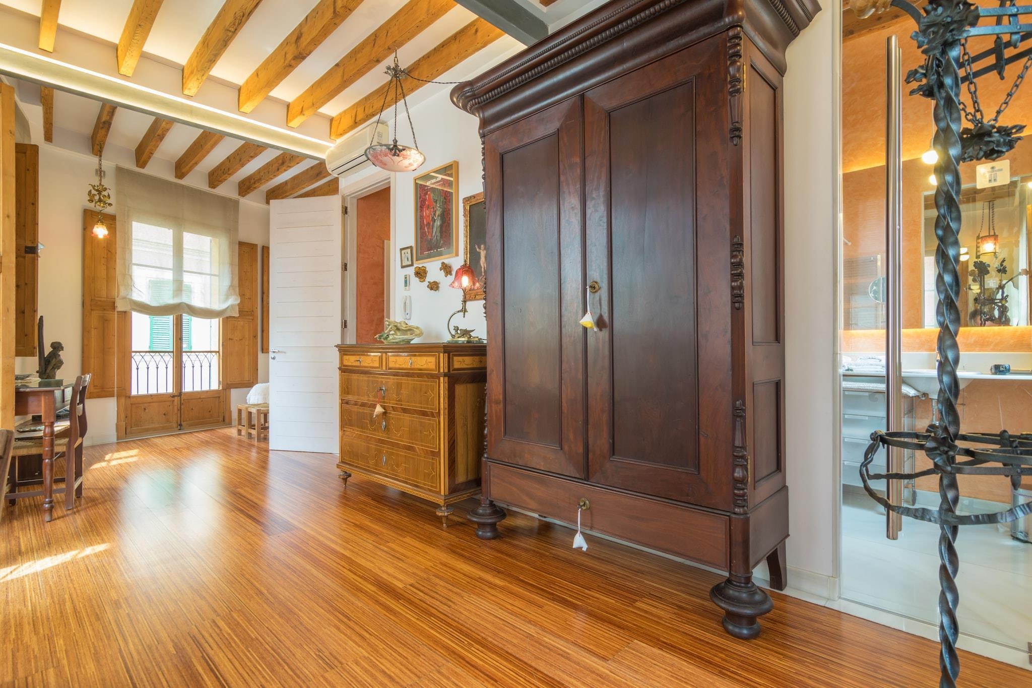Wir heißen Sie herzlich willkommen in diesem beeindruckenden 5stöckigen Stadthaus. Es wurde mit viel Liebe zum Detail komplett renoviert und geschmackvoll eingerichtet. Dabei überzeugt ein gekonnter Mix aus qualitativ, hochwertigen Möbeln, mit in Szene gesetzten antiken, mallorquinischen Stücken um sich richtig zu Hause zu fühlen. Auf Komfort müssen Sie natürlich auch nicht verzichten. Die Dachterrasse ist ohne Zweifel der perfekte Ort das milde Klima zu genießen, den Tisch für das Frühstück in der Sonne zu decken, sich mit einem Buch auf einer der Liegen zu entspannen oder den Tag mit einem kühlen Getränk ausklingen zu lassen. Die Wohnräume verteilen sich auf 3 Etagen, die erste, die zweite und die 3 Etage des Hauses. In der 2 Etage betreten Sie den Wohnraum, mit gemütlichen Sofas zum Ausruhen oder um einen Film auf DVD zu schauen. Im selben Raum befindet sich der Essbereich mit offener Küche. Hier kochen Sie auf einem Cerankochfeld und haben dafür alle wichtigen Geräte und Utensilien die Sie brauchen. In der Etage unter dem Wohnbereich liegt 1 Schlafzimmer mit 2 Einzelbetten und Duschbad en-Suite. Das 2te Schlafzimmer befindet sich in der Etage über dem Wohnbereich, ist mit einem Doppelbett eingerichtet und hat ebenfalls ein Bad mit Hydromassagedusche en-Suite. Alle Räume sind klimatisiert. In der obersten Etage liegt die Terrasse und es gibt eine kleine Küche die mit Basics, wie einem kleinen Kühlschrank, Geschirr, Besteck, einer Spüle sowie der Waschmaschine, Bügelbrett und Bügeleisen eingerichtet ist. Die privilegierte Lage, im Herzen der Altstadt von Palma, macht diese Urlaubsdomizil perfekt für einen einzigartigen Aufenhalt in der wundervollen Stadt. Alle Dienstleistungen die Sie für Ihren Urlaub in Eigenregie benötigen können Sie zu Fuss erreichen. Eine Vielzahl an Bars, Restaurants für jeden Geschmack, Cafés, Eisdielen, Geschäfte und kleine Läden sind in unmittelbarer Umgebung. Sie erreichen sogar den Strand der Playa von Palma nach einem kleinen Spaziergang über den Paseo Marititimo, nach 1,3km zu Fuss. Der Hafen von Palma ist ca 6km entfernt und der Flughafen liegt in 8,7km Entfernung. Golfspieler freuen sich auf eine Partie auf dem Golfplatz Son Muntaner in 7,5km Entfernung. Ein kleines Paradies für einen Stadturlaub! Bitte beachten Sie, dass diese Unterkunft aufgrund bestimmter Merkmale nicht für Familien mit kleinen Kindern geeignet ist. Bitte beachten Sie auch, dass die Garage kein großes Fahrzeug aufnehmen kann. Eventuelle Nebenkosten müssen beim Anbieter nachgefragt werden. Haustiere sind verboten. Partys oder ähnliche Veranstaltungen sind nicht gestattet. Es gibt Parkplätze für 1 Autos in der Garage. Entfernungen Strand: 1.3 km - Playa de Palma, Paseo Marítimo Flughafen: 8.7 km - Son Sant Joan Golfplatz: 7.5 km - Golf Son Muntaner Ortsmitte: 0 km - Palma Bahnhof: 0.850 km - Estación Intermodal, Palma Bushaltestelle: 0.060 km - Plaça D'En Coll Fähre: 6 km - Puerto de Palma Krankenhaus: 6.5 km - Hospital Son Espases Touristen Lizenz: ETV/6958Einheitsregister: ESFCTU00000704200089567800000000000000000000ETV/69586Auf den Balearen gibt es eine Touristensteuer, die Ecotasa genannt wird. Diese Steuer muss vom Gast bezahlt werden. Der zu zahlende Betrag beträgt zwischen 0.55EURO pro Nacht und Gast in der Nebensaison und 2.2EURO pro Nacht und Gast in der Hochsaison. Ab dem 9. Tag reduziert sich die Steuer um die Hälfte. Personen unter 16 Jahren sind davon ausgenommen