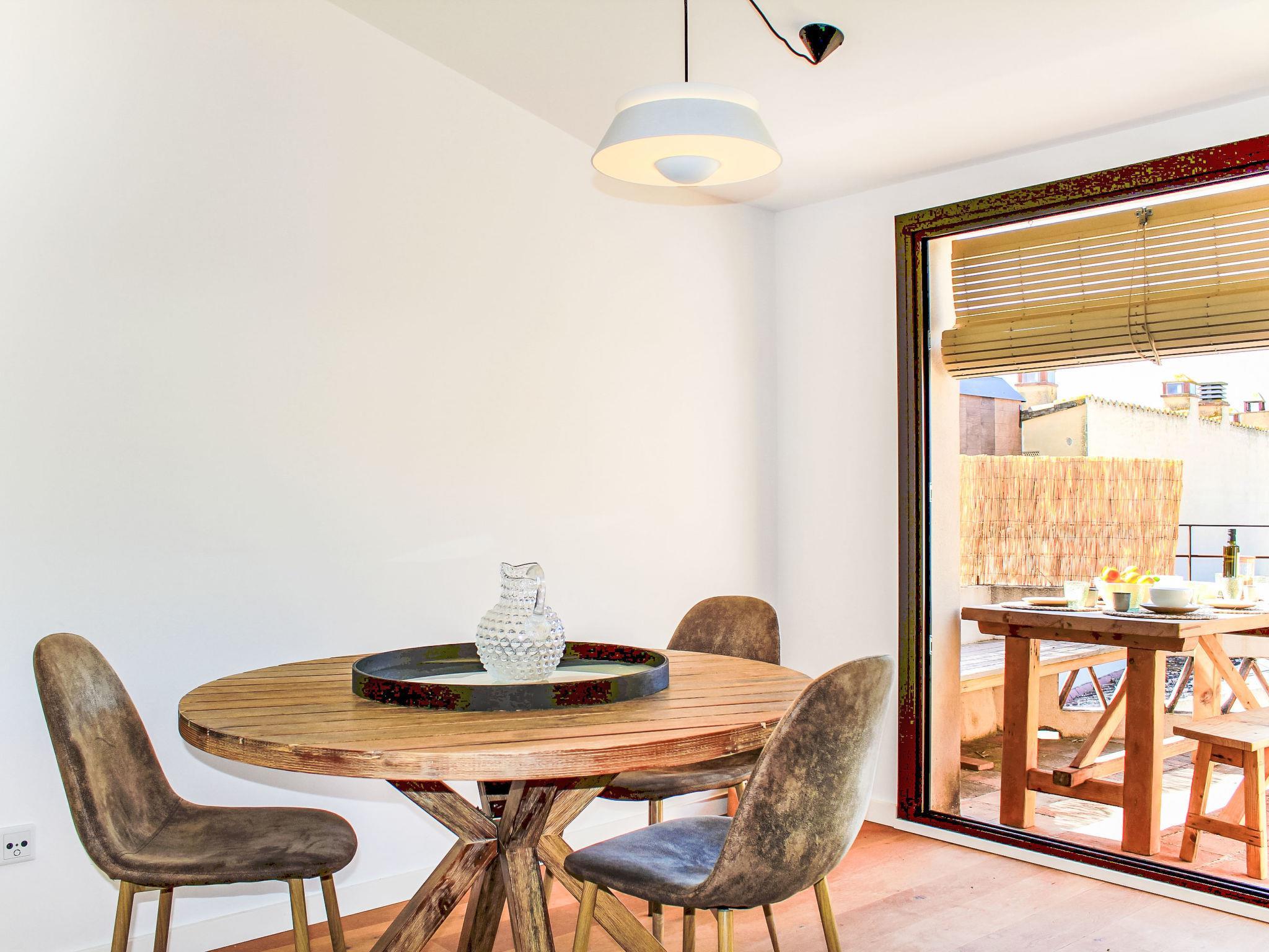 "Can Caritat", 6-Zimmer-Reihenhaus 120 m2 auf 3 Stockwerken. Zweckmässig und komfortabel eingerichtet: Eingang. Ausgang zur Terrasse. Obergeschoss: Wohnzimmer. Esszimmer. 1 Zimmer mit 1 franz. Bett (150 cm, Länge 190 cm). 1 Zimmer mit 1 franz. Bett (140 cm, Länge 190 cm). Offene Küche (Backofen, Geschirrspüler, 4 Induktionskochplatten, Toaster, Wasserkocher, elektrische Kaffeemaschine). Dusche/WC. Heizung. 2. Obergeschoss: Wohnzimmer. Ausgang zur Terrasse. 1 Zimmer mit 1 franz. Bett (135 cm, Länge 190 cm), Dusche/WC. 1 Zimmer mit 1 franz. Bett (140 cm, Länge 190 cm), Dusche/WC. Küche (Backofen, 4 Induktionskochplatten, Wasserkocher, elektrische Kaffeemaschine). Ausgang zur Terrasse. Grosse Terrasse. Terrassenmöbel, Sitzplatz. Schöne Sicht auf das Städtchen. Zur Verfügung: Waschmaschine, Bügeleisen, Haartrockner. Internet (WLAN, gratis). Bitte beachten: für Kleinkinder nicht geeignet. Nichtraucher-Haus, kein Parkplatz. Das Haus verfügt weder über einen Fernseher noch über eine Mikrowelle. HUTG-055650