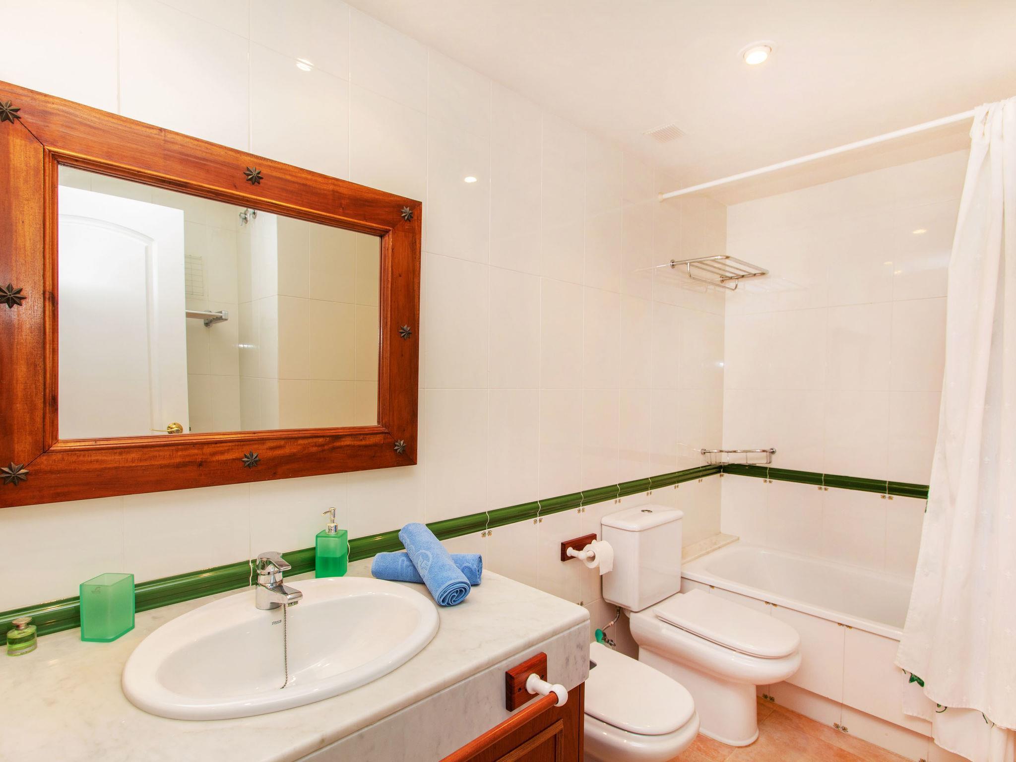 "Port Pals Village", 4-Zimmer-Reihenhaus 150 m2 auf 3 Stockwerken. Zweckmässig eingerichtet: Wohn-/Esszimmer mit Digital-TV. Ausgang zur Terrasse. Küche (4 Glaskeramikplatten, Toaster, Wasserkocher, Mikrowelle, Tiefkühler, elektrische Kaffeemaschine). Sep. WC. Keine Heizmöglichkeit. Obergeschoss: 1 Zimmer mit 1 franz. Bett (135 cm, Länge 190 cm), Bad/WC. 1 Zimmer mit 1 franz. Bett (135 cm, Länge 190 cm). 1 Zimmer mit 2 Betten (90 cm, Länge 190 cm). Bad/WC. Gartensitzplatz. Terrassenmöbel. Sicht auf das Schwimmbad. Zur Verfügung: Waschmaschine, Bügeleisen, Kinderhochstuhl, Babybett, Haartrockner. Internet (WLAN, gratis). Parkplatz Nr. Num 20 exterior (1 Auto). Bitte beachten: TV nur ES. HUTG-058499 // Reg. Nr.: ESFCTU00001700700022603400000000000000000HUTG-0584998