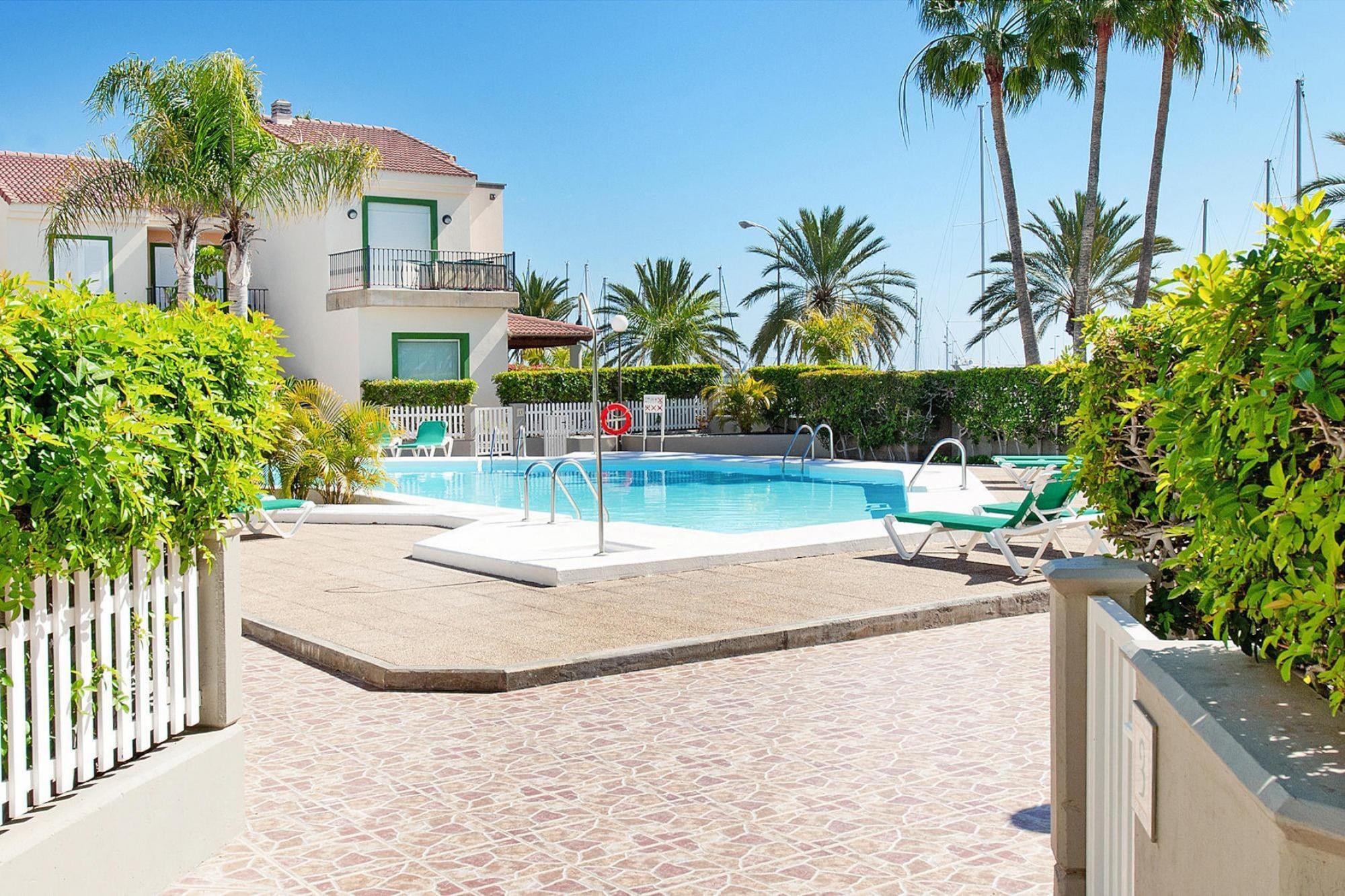 In der malerisch gelegenen privaten Marina verbringen Sie Ihren Urlaub im modernen zweistöckigen Bungalow. Lassen Sie sich von dem zauberhaften Ambiente einfangen. Am besten starten Sie den Tag mit einem ausgedehnten Frühstück auf der teilüberdachten Terrasse. Von hier können Sie den ganzen Tag zusehen, wie die Atlantikwellen die schicken Boote im Hafen hin und her schaukeln. Gerade am Abend kreiert diese spektakuläre Kulisse eine wirklich außergewöhnliche Atmosphäre. Auch vom Balkon haben Sie einen uneingeschränkten Blick auf die tolle Szene. In Ihrem modernen und komfortabel ausgestatteten Ferienhaus bleiben Ihnen keine Wünsche offen, auf 140 Quadratmetern haben Sie viele Rückzugsmöglichkeiten. Erfrischen Sie sich im gemeinschaftlichen Außenpool oder machen sie einen kurzen Spaziergang zum Sandstrand. Eine kurze Fahrt vom Urlaubsort Playa de las Meloneras entfernt befindet sich der Jachthafen von Pasito Blanco. Der moderne Jachthafen ist sechs Kilometer westlich von Maspalomas gelegen. Neben einigen Ferienhäusern, einer Pension und einem Supermarkt gibt es eine Segelschule sowie einen privaten Campingplatz. Zum Baden lädt eine kleine Sandbucht ein. Mobilität: nicht geeignet für Personen mit eingeschränkter Mobilität