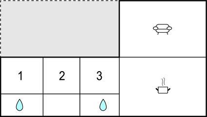Badezimmer (nr. 1) - WC. Warmes und kaltes Wasser. Dusche