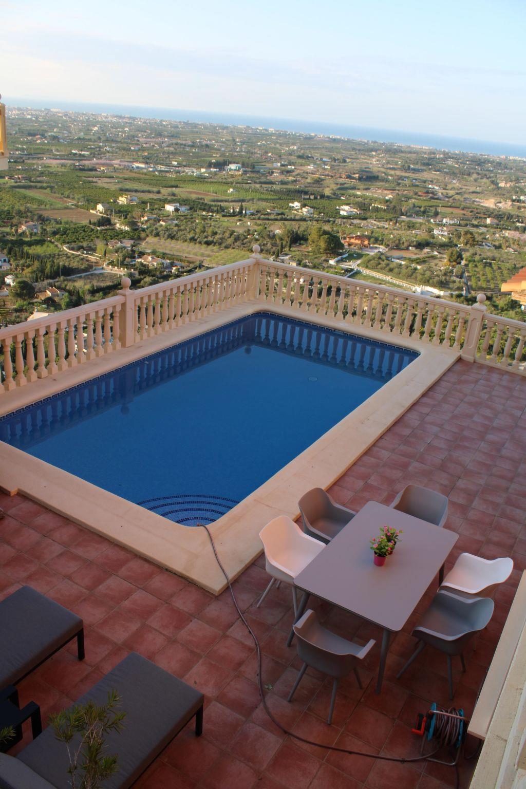 Entdecken Sie dieses modern eingerichtete Ferienhaus in der Villengegend der Urbanisation La Sella bei Dénia, gelegen auf einem geschlossenen Privatgrundstück. Die ruhige Lage in einem besonders ruhigen Teil der Urbanisation, am Ende einer kaum befahrenen Sackgasse, garantiert Privatsphäre und Erholung pur. Von diesem herrlichen Zufluchtsort aus genießen Sie einen phantastischen Blick auf das etwa 10 km entfernte Mittelmeer, das Segària-Gebirge, Dénia und den Naturpark Montgó sowie die grüne Ebene mit ihren Orangen-, Zitronen- und Mandelhainen.