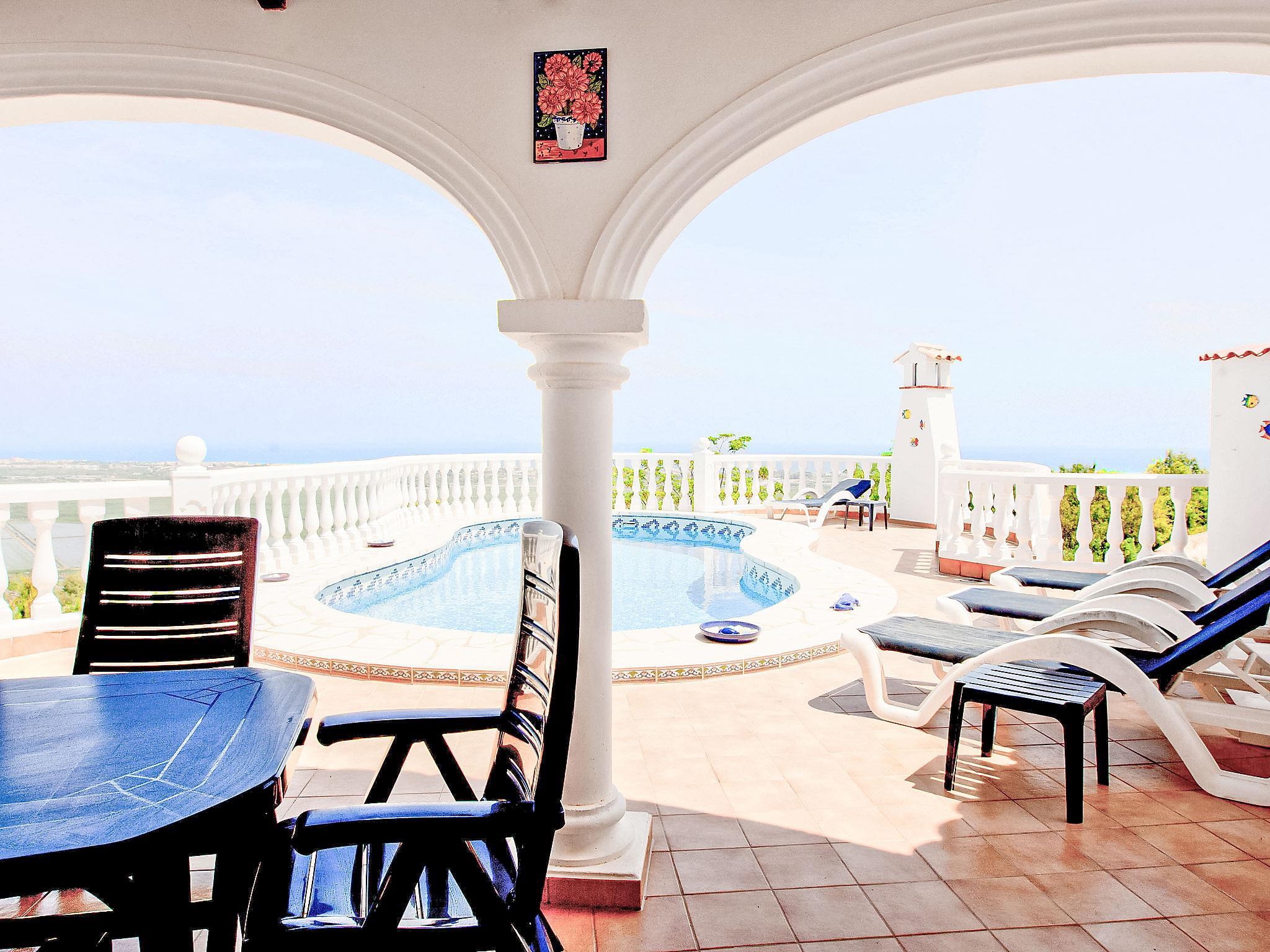 "Villa Ma-Nita", 4-Zimmer-Villa. Schön und geschmackvoll eingerichtet: Wohn-/Esszimmer mit Sat-TV, G-Heizung und Klimaanlage. Ausgang zur Terrasse, zum Schwimmbad. 2 grosse Zimmer, jedes Zimmer mit 1 franz. Bett und Klimaanlage. Offene Küche (Backofen, Geschirrspüler, X Glaskeramikplatten, Mikrowelle, Tiefkühler). Bad/WC, Dusche/Bidet/WC. Unteres Geschoss: (Aussentreppe) 1 Zimmer mit 1 franz. Bett und TV (Flachbildschirm), Klimaanlage und Warmluftheizung. (2 Glaskeramikplatten). Dusche/WC. Grosse Terrasse überdacht, grosse Terrasse. Terrassenmöbel, Gartengrill, Liegestühle. Herrliche Panoramasicht auf das Meer und die Landschaft. Zur Verfügung: Waschmaschine. Internet (WLAN, gratis). Parkplatz (eingezäunt). Bitte beachten: Nichtraucher-Haus. Maximal 1 Haustier/Hund erlaubt. TV nur DE, ES. AT-433078-A