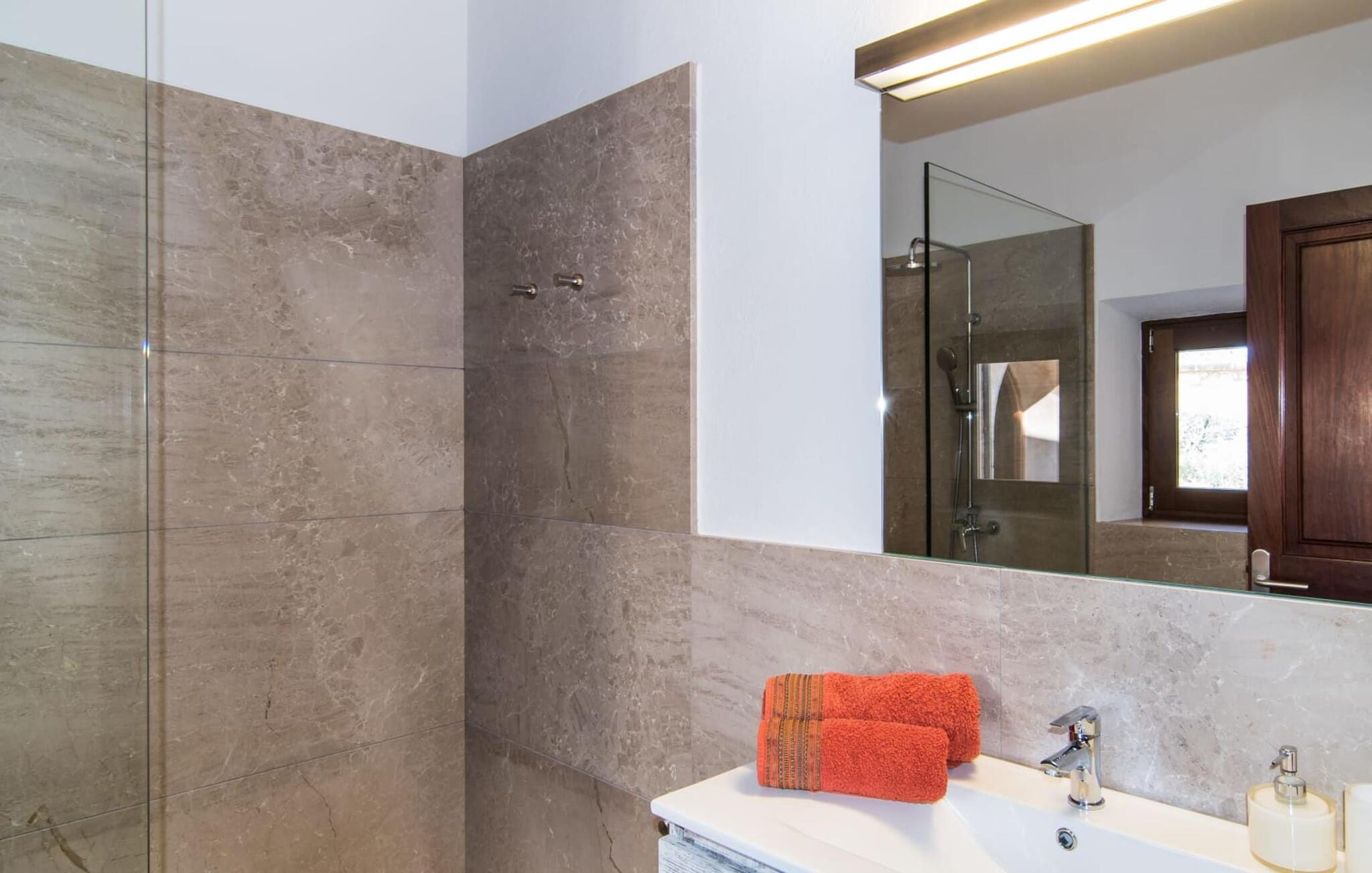 Im Inneren versprüht die Villa rustikalen Charme mit hellen Farbtönen, dunklen Balken und authentischer Keramik. Das geräumige Wohnzimmer lädt mit gemütlichen Sofas und einem großen Flachbild-TV zum Entspannen ein. Die moderne Küche ist gut ausgestattet, um Mahlzeiten zuzubereiten, die Sie im stilvollen Essbereich genießen können. Drei liebevoll gestaltete Doppelzimmer mit bequemen Doppelbetten befinden sich im Erdgeschoss, ein weiteres Schlafzimmer befindet sich im Obergeschoss. Drei elegante Bäder sind mit Naturstein und hochwertigen Glasduschen ausgestattet.