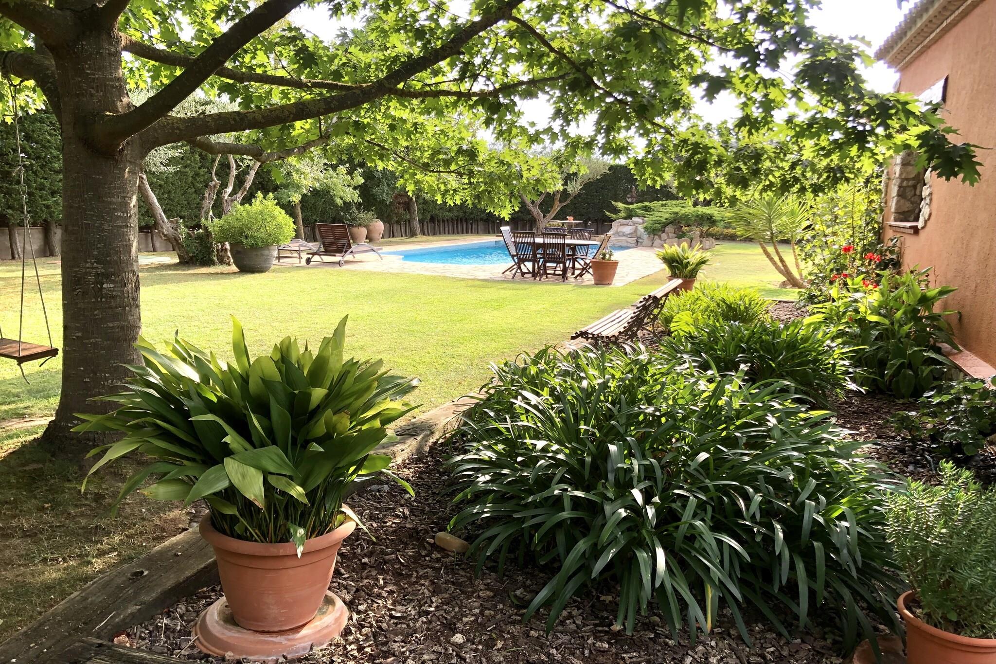 Charming Catalan Villa Experience the warmth of Catalan architecture in this spacious villa, thoughtfully designed to combine comfort and authenticity. With four bedrooms accommodating families or friends, the house offers a cozy living and dining area with a fireplace, air conditioning, and plenty of space to unwind. The fully equipped kitchen allows you to prepare meals at your leisure, while the large veranda provides the perfect spot for morning coffee or evening chats. Relaxing Outdoor Escape Step outside to enjoy the private 10x5 m swimming pool, surrounded by sun loungers and a landscaped garden. The large porch and terraces offer serene views, ideal for reading or simply soaking up the sun. Host a memorable barbecue in the fenced garden, or take a stroll in the urbanization's peaceful streets. Bicycles are available for exploring nearby paths, adding adventure to your stay. Convenient Location & Dining Situated just 1 km from the town center, the villa is close to bakeries, restaurants, and grocery stores. Golf enthusiasts will appreciate being next to a golf course, while the Costa Brava beaches are only 18-20 km away. For excursions, Figueres-Vilafant train station (11 km) and Girona-Costa Brava Airport (62 km) provide easy access, while the nearby Peralada vineyards invite you to enjoy Catalonia's renowned wines.