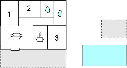 Schlafzimmer 12m2 (nr. 2) - 1 Schlafmöglichkeit. (Einzelbett(en)). 2 Schlafmöglichkeiten. (Doppelbett(en)).