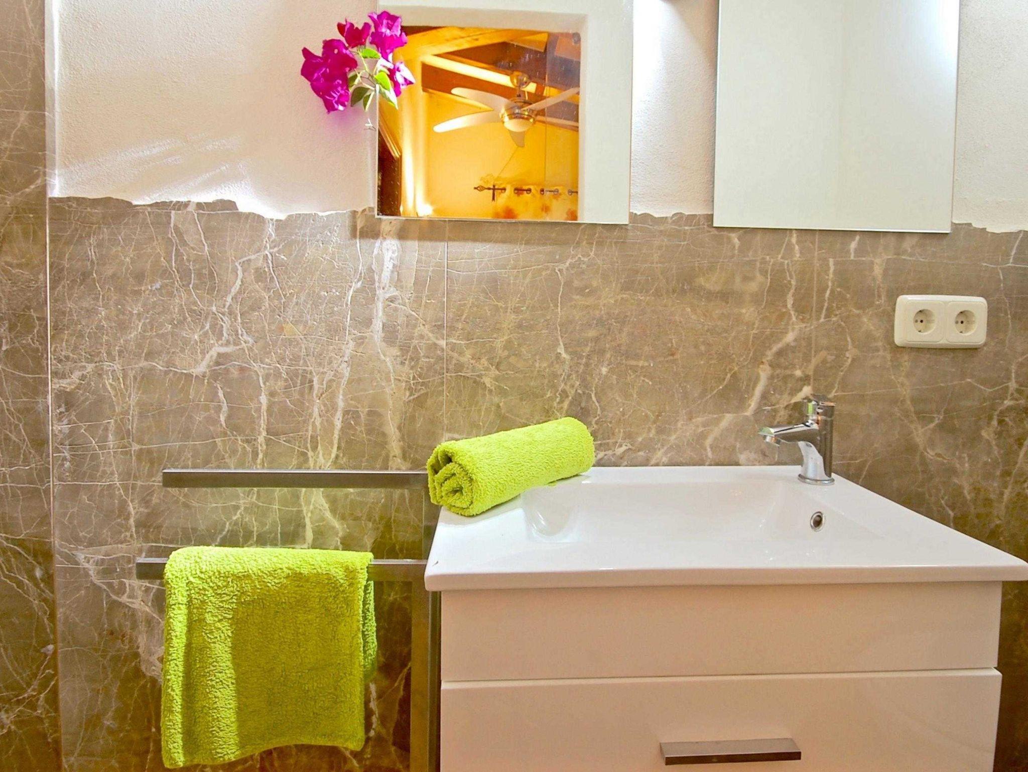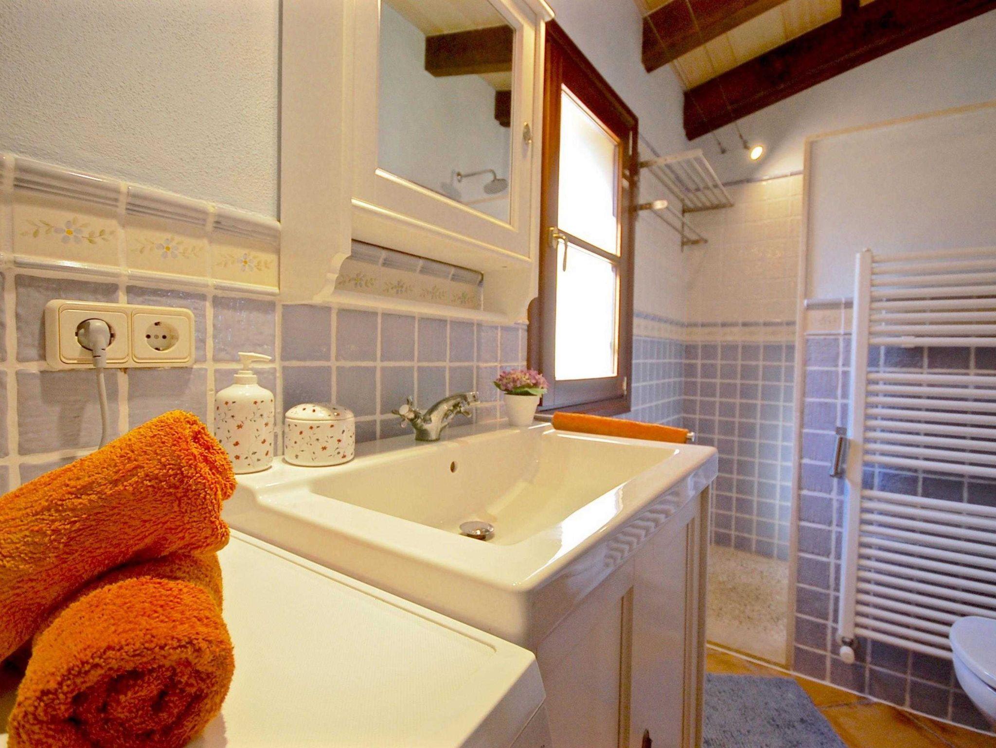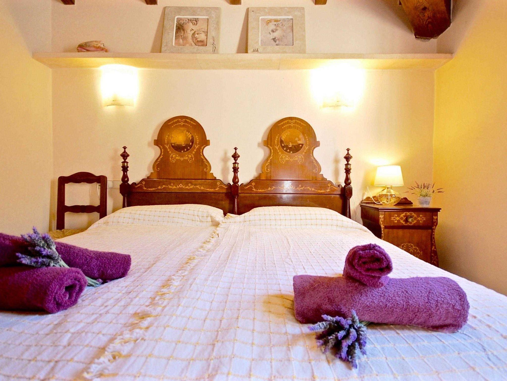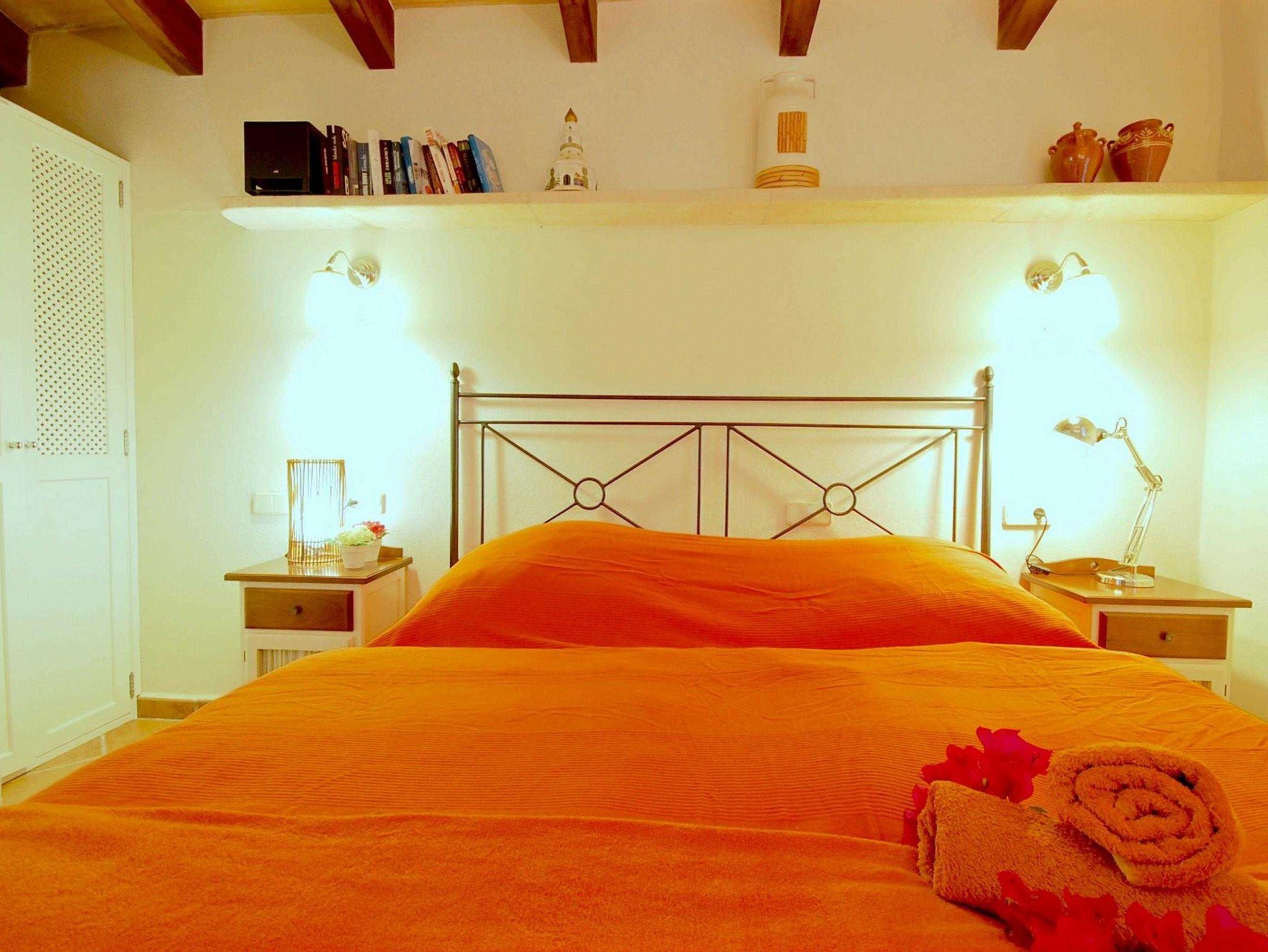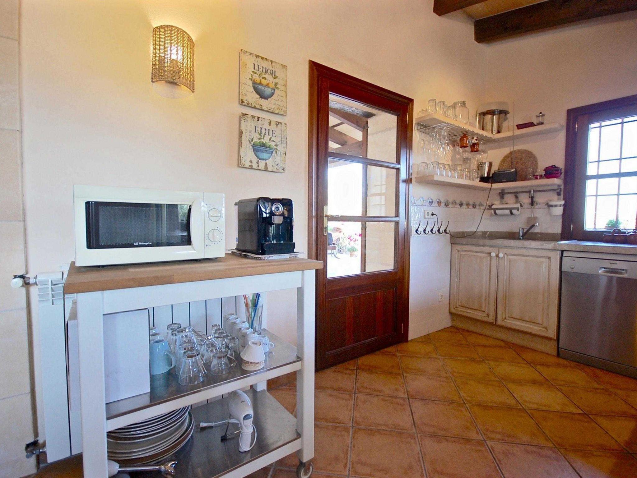 Die Finca verfügt über zwei Schlafzimmer: eines mit einem komfortablen Doppelbett und das andere mit zwei Einzelbetten. Das Doppelzimmer hat ein eigenes Bad mit Dusche. Die voll ausgestattete Küche bietet alles, was man für einen entspannten Aufenthalt benötigt, darunter einen großen Herd, eine Mikrowelle, Toaster, Kaffeemaschine und Spülmaschine.
