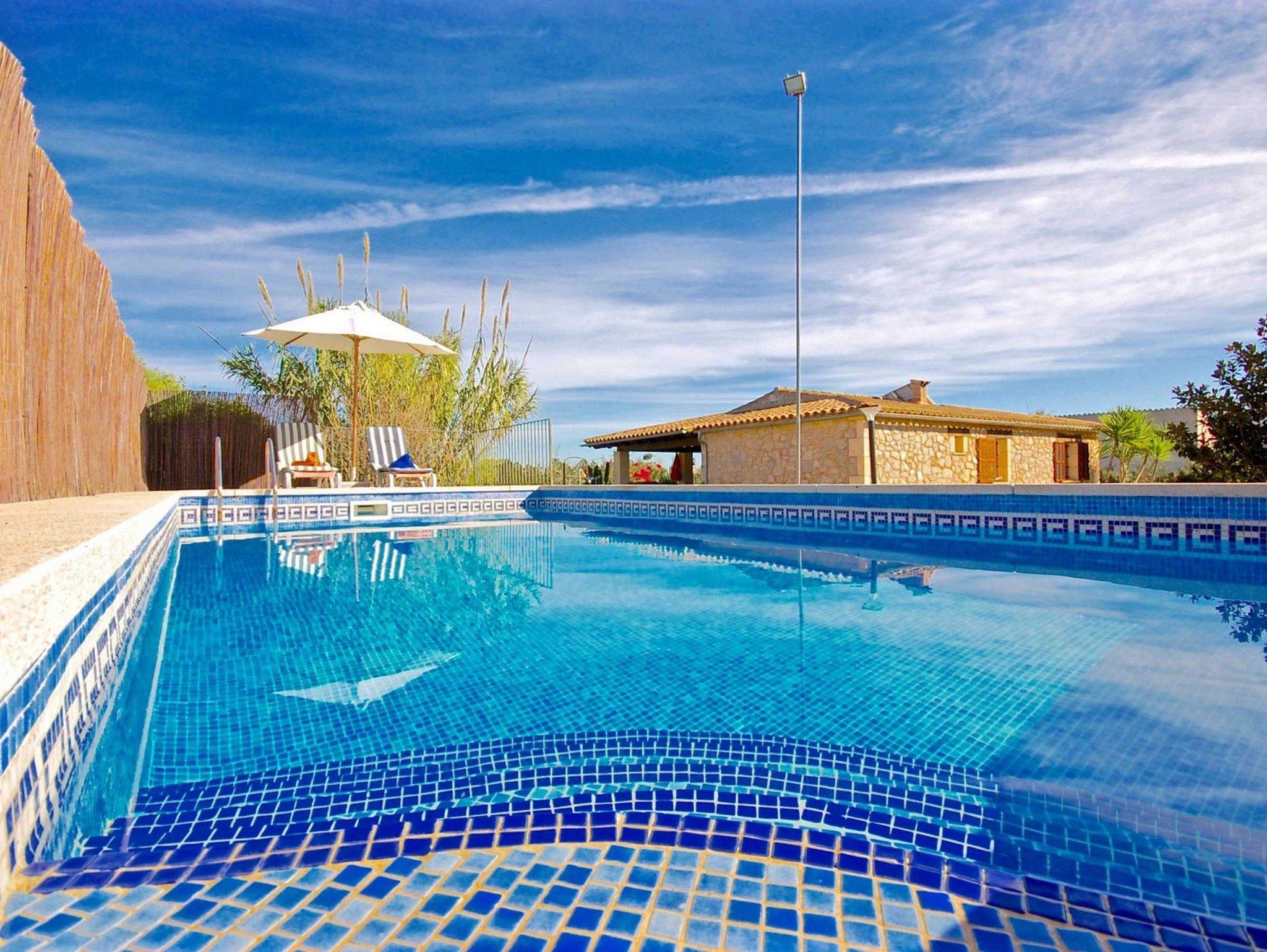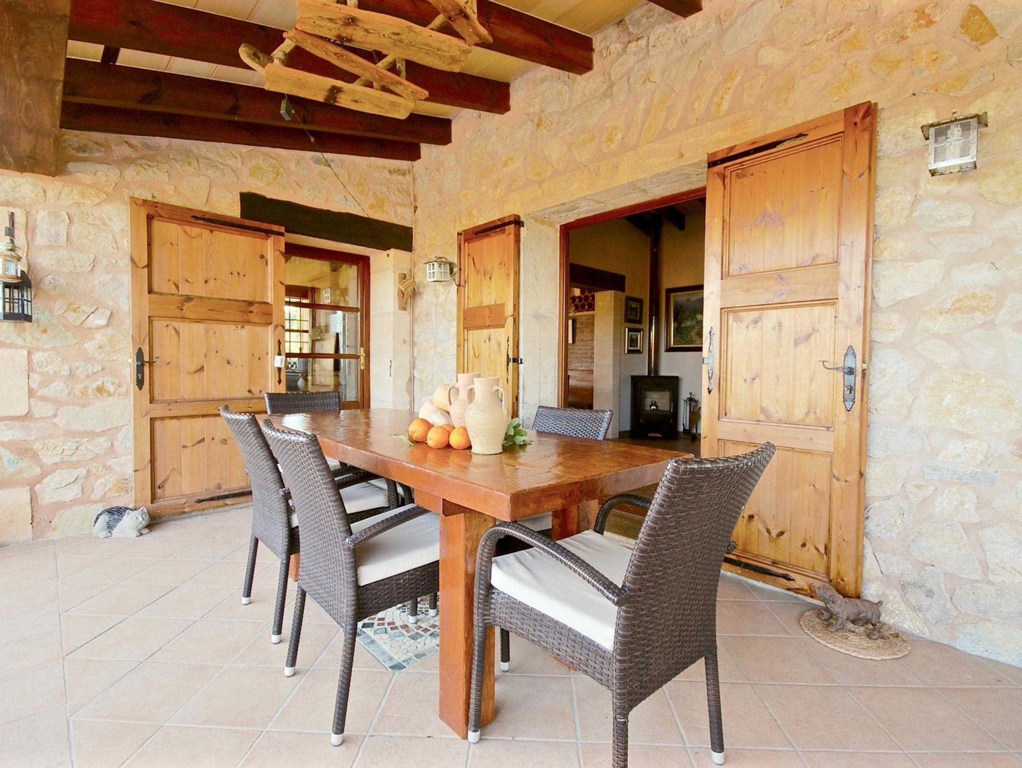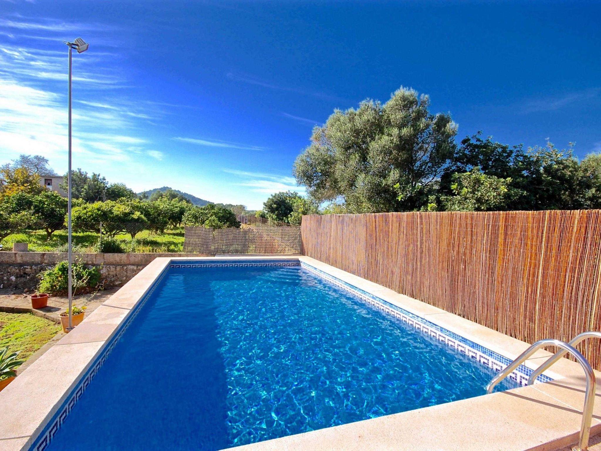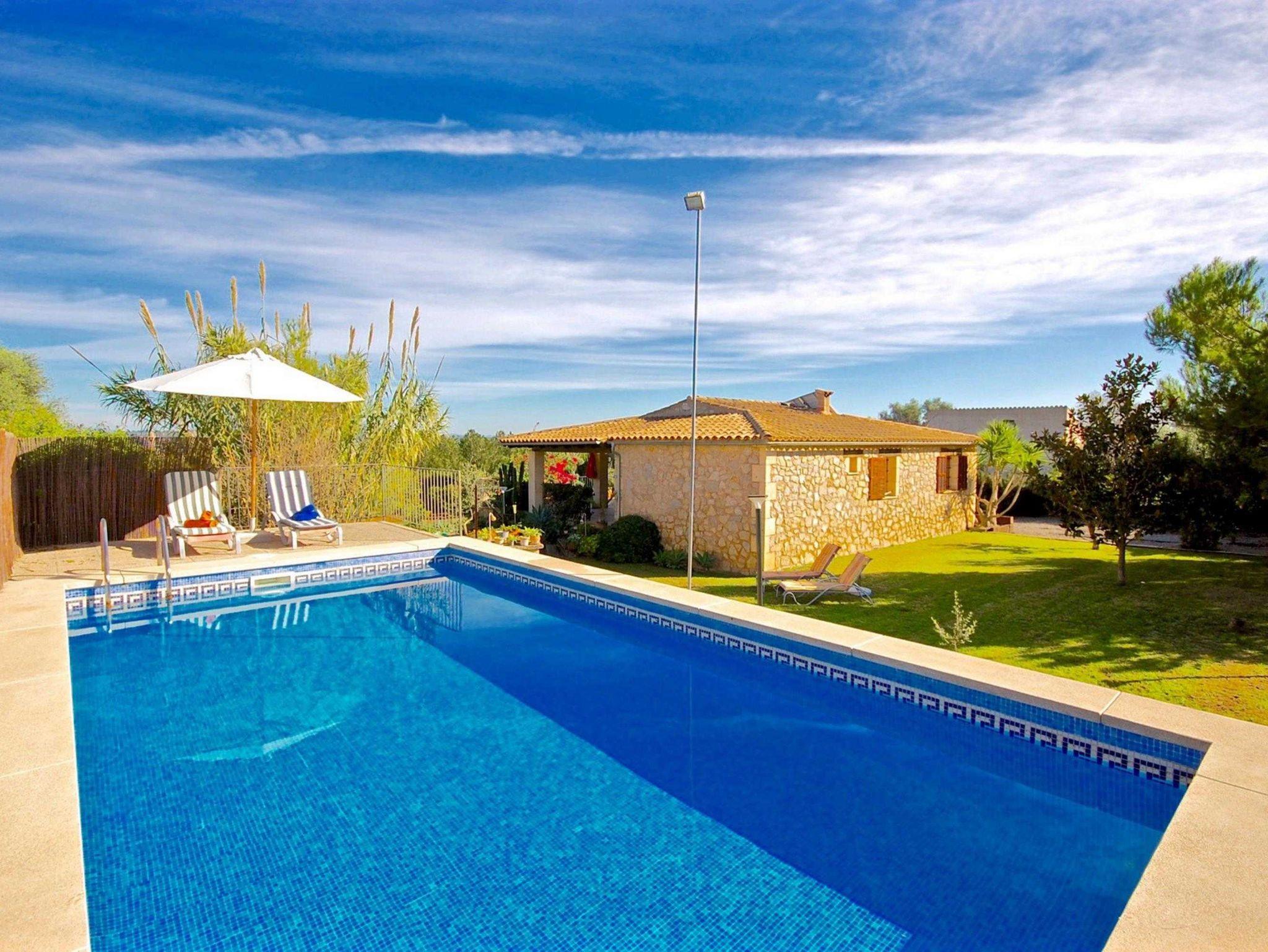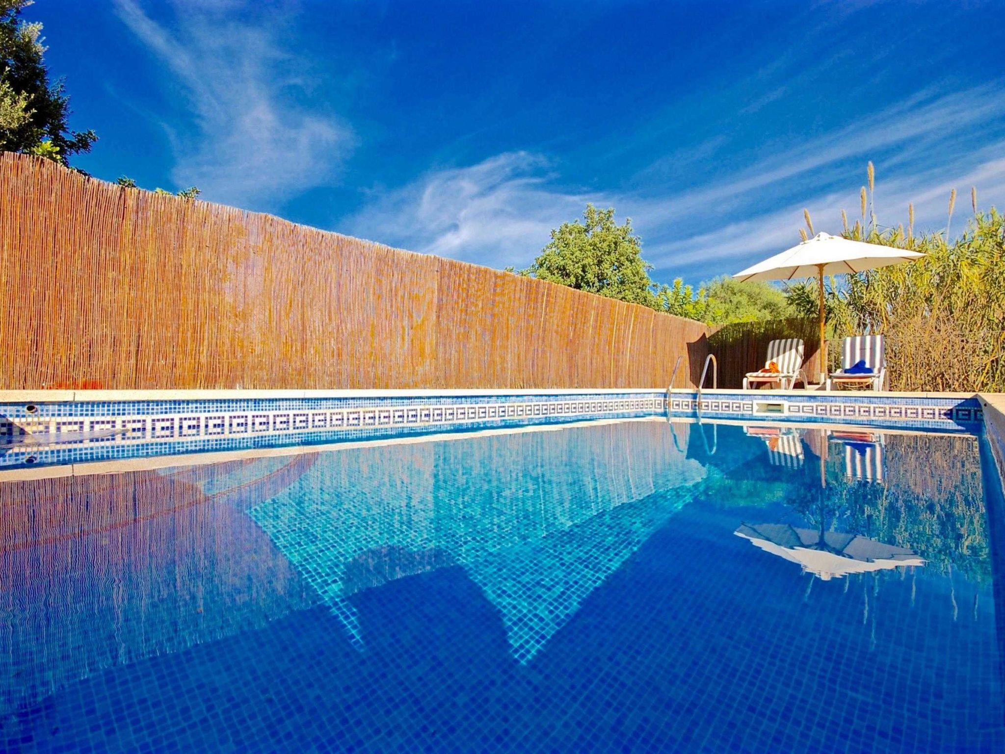 Die Finca verfügt auch über einen privaten Pool der etwas erhoben ist. Mit Sonnenliegen und grosser Rasenfläche. Es gibt einen grossen fixen Grill sowohl als auch einen super Holzofen(Lizenznummer ETV/3279)