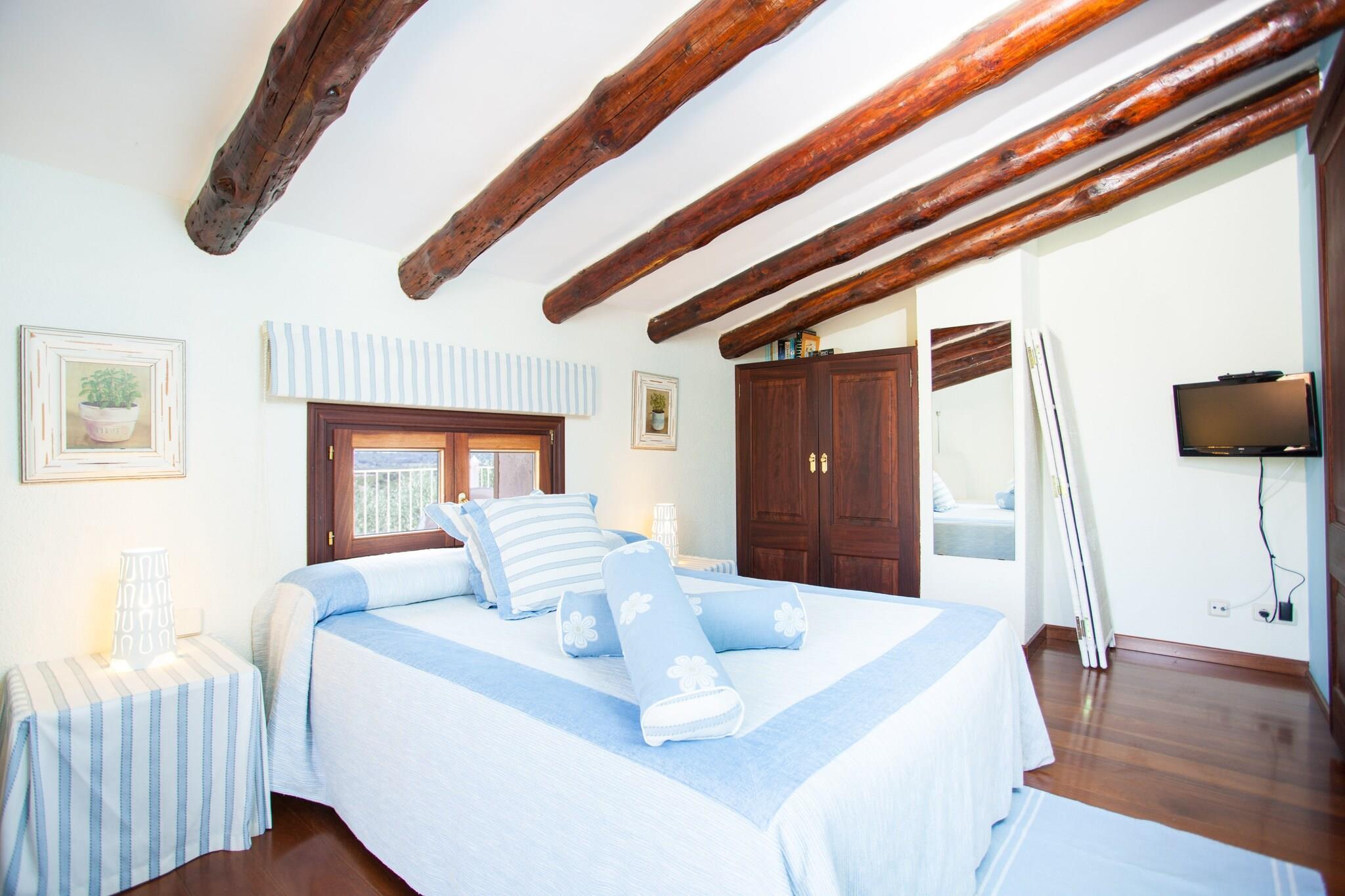 Wohnzimmer, Küche(Kochherd, Kaffeemaschine, Backofen), Schlafzimmer(2x Einzelbett), Schlafzimmer(Doppelbett), Schlafzimmer(Doppelbett), Badezimmer, Badezimmer, Mikrowelle, Spülmaschine, Kühlschrank, Tiefkühlschrank, Kühl-/Gefrierkombination, Dusche, Dusche, Waschbecken, Waschbecken, Toilette, Toilette, Klimaanlage, Garten, Gartenmöbel, 8x Liegen, Grill, Sonnenschirm, Pool, Tischtennisplatte, Kinderbett, Hochstuhl