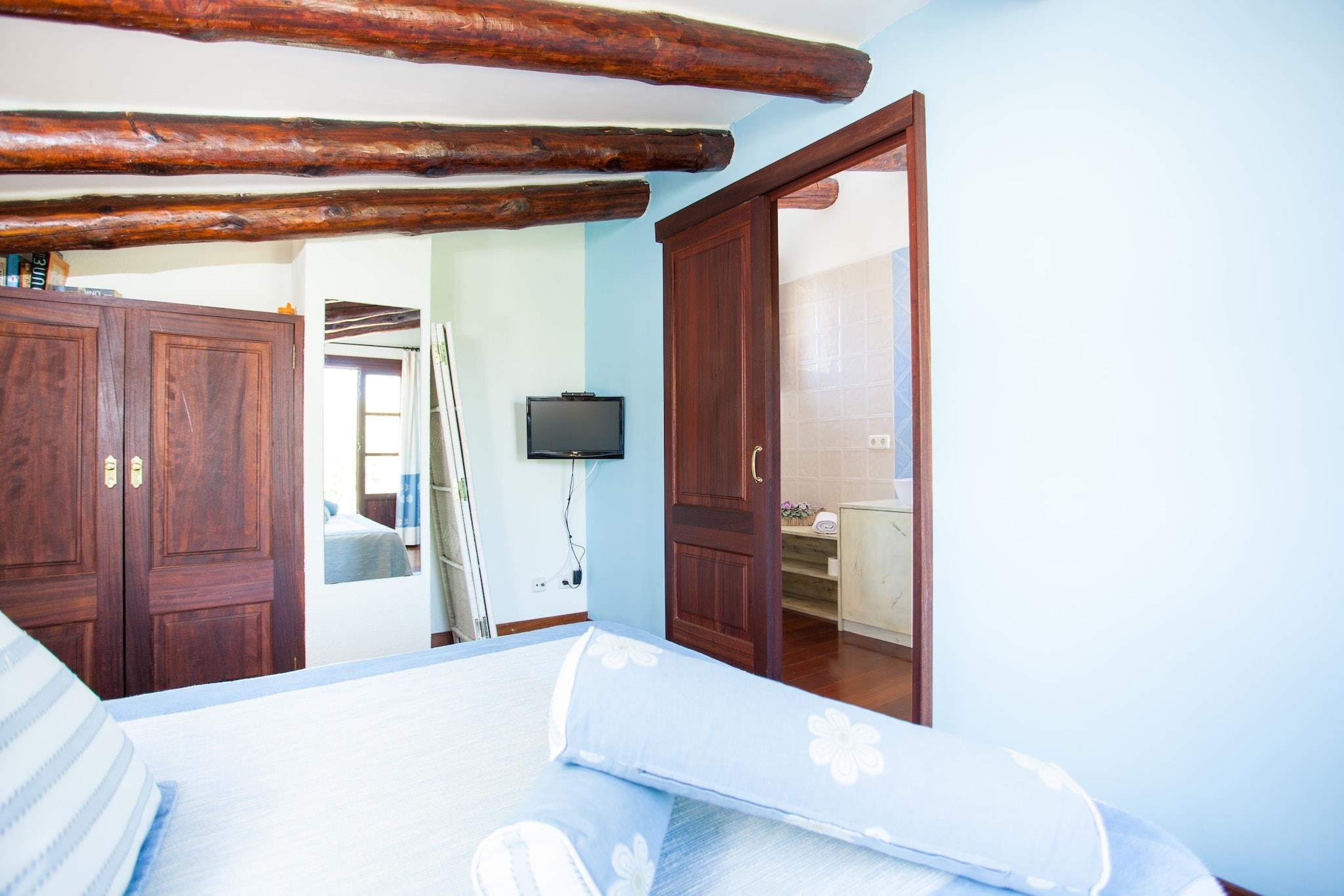 Der hauseigene, 7.5 Meter x 3.5 Meter große Pool lädt an heißen Sommertagen zu einem erfrischenden Bad ein. Sonnenanbeter machen es sich auf einer der Liegen bequem. Das Sofa mit Sonnendach neben dem Pool ist ein hübscher Ort zum Lesen und Entspannen, wobei man den Blick über die Landschaft schweifen lassen kann. Noch zwei Eckdaten zum Schwimmbad: das Wasser wird mit Chlor sauber gehalten und die Tiefe beträgt zwischen 1.2 Meter und 1.6 Meter. Auf der Veranda lässt sich ein Abendessen mit der Familie veranstalten und eine Tischtennisplatte sorgt für sportliches Vergnügen. Das Grundstück der Finca ist umzäunt und es gibt keine direkten Nachbarn. Das Interieur der Finca ist im traditionellen, mallorquinischen Stil gehalten mit originellen Deckenbalken aus Holz und vielen kleinen Details, die den Räumen ein behagliches Flair geben. Im Erdgeschoss liegt der Wohn-Essbereich, der Zugang zur Veranda hat. Der Fernseher ist mit Satellitenempfang ausgestattet. Im Herbst kann man sich während kühler Nächte am Kamin warme Gedanken machen. Anschließend befindet sich die Küche, die gut ausgestattet ist. Ein Gasherd, Geschirrspüler, einige Kochutensilien und ein Elektroofen machen das Kochen während des Urlaubs zum Vergnügen. Die Waschküche mit Bügeleisen, Bügelbrett und Waschmaschine ist besonders bei längeren Aufenthalten sehr praktisch. Drei Schlafzimmer sorgen für angenehme Träume, davon zwei (eines mit Ehebett; eines mit zwei Einzelbetten) im Erdgeschoss. Ein Duschbad steht dem Erdgeschoss zur Verfügung. Im ersten Stock findet man ein Zimmer mit Doppelbett, Klimaanlage und Duschbad en-suite. Ein Babybettchen und ein Hochstuhl werden gerne auf Anfrage vorbereitet. Diese kokette Finca liegt nahe Petra, der Geburtsort von Fray Junipero Serra, der die Stadt San Francisco gründete. Ihm ist ein eigenes Museum gewidmet. Ausserdem kann man das Kloster San Bernadino und die Kapelle Santuario de la Virgen de Bonany besichtigen. Im Ortskern findet man Restaurants und kleine Geschäfte - also alles, um seine täglichen Besorgungen zu erledigen. Der nächste Sandstrand befindet sich im Norden und es handelt sich um den feinsandigen und familienfreundlichen Strand in Can Picafort. Die Hauptstadt, Palma de Mallorca, liegt ca. 40 km entfernt und hat ein großartiges Ambiente, viele Restaurants, Geschäfte, Supermärkte und einen sehenswerten Altstadtkern. Eventuelle Nebenkosten müssen beim Anbieter nachgefragt werden. Haustiere sind verboten. Partys oder ähnliche Veranstaltungen sind nicht gestattet. Es gibt Freiluftparkplätze für 3 Autos. Entfernungen Strand: 20.5 km - Can Picafort Flughafen: 47.8 km - Aeroport de Son Sant Joan Golfplatz: 15.6 km - Rotana Golf Ortsmitte: 4.5 km - Ariany Bahnhof: 2.3 km - Estació de Petra Bushaltestelle: 2.3 km - Petra Fähre: 28.4 km - Port d'Alcúdia Krankenhaus: 14.1 km - Hospital de Manaor Touristen Lizenz: ETV/941Einheitsregister: ESFCTU000007029000405502000000000000000000000ETV/9412Bei der Anreise muss die Ecotasa (Touristensteuer der Balearen) bar bezahlt werden. Der zu zahlende Betrag beträgt zwischen 0.55EURO pro Nacht und Gast in der Nebensaison und 2.2EURO pro Nacht und Gast in der Hochsaison. Ab dem 9. Tag reduziert sich die Steuer um die Hälfte. Personen unter 16 Jahren sind davon ausgenommen.