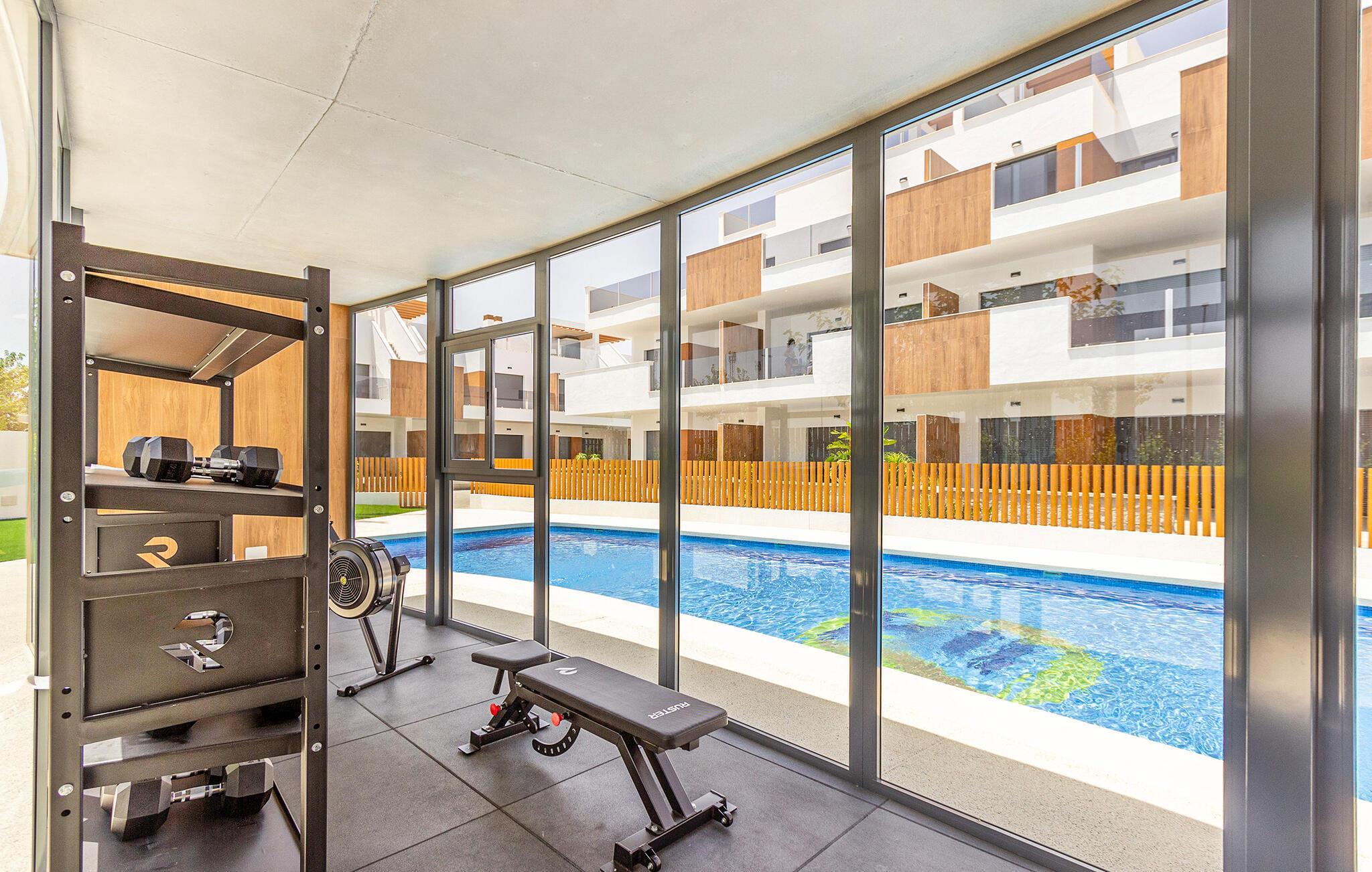 Entspannen Sie auf der Terrasse oder genießen Sie die gemeinschaftlichen Annehmlichkeiten wie den Pool oder den Fitnessbereich am Pool. Für Familien bietet der nahegelegene Spielplatz zusätzlichen Spaß.