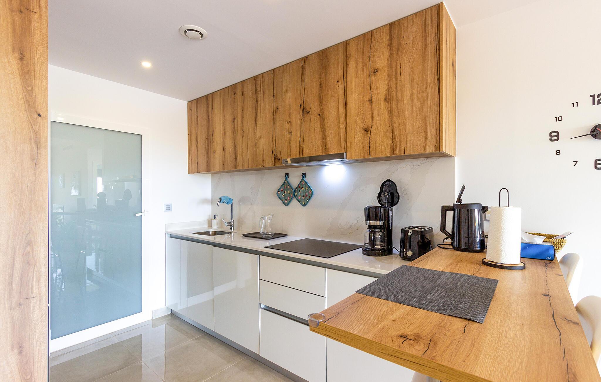 Diese moderne Ferienwohnung bietet Ihnen ein stilvolles Zuhause in einer erstklassigen Wohnanlage. Die helle, offene Gestaltung des Innenraums, kombiniert mit geschmackvollen Möbeln, schafft eine entspannte und gleichzeitig luxuriöse Atmosphäre. Große Fenster lassen viel Licht herein, während die moderne Küche und das gemütliche Wohnzimmer zum Verweilen einladen.