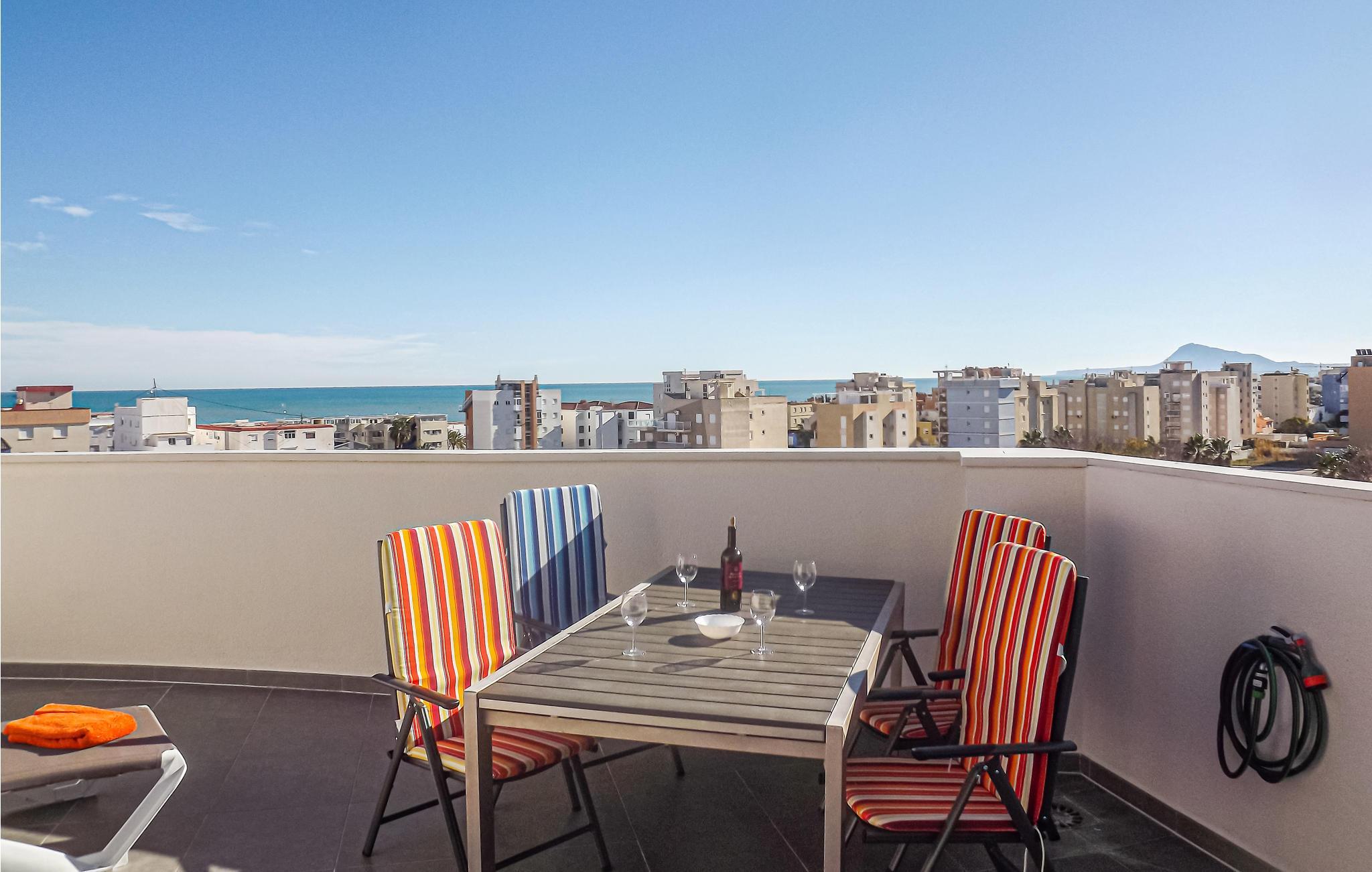 Diese schöne Ferienwohnung erwartet Sie im 6. Stock und bietet einen fantastischen Blick auf das Meer und die Berge. Die Wohnung bietet Platz für eine Familie oder zwei Paare, die zusammen einen wunderschönen Urlaub mit Sonne, Strand und Meer erleben möchten. Das Interieur der Wohnung ist modern und ansprechend und verteilt sich auf 2 Schlafzimmer, 1 Badezimmer, 1 Wohnraum und einen Wohnraum mit Küche.