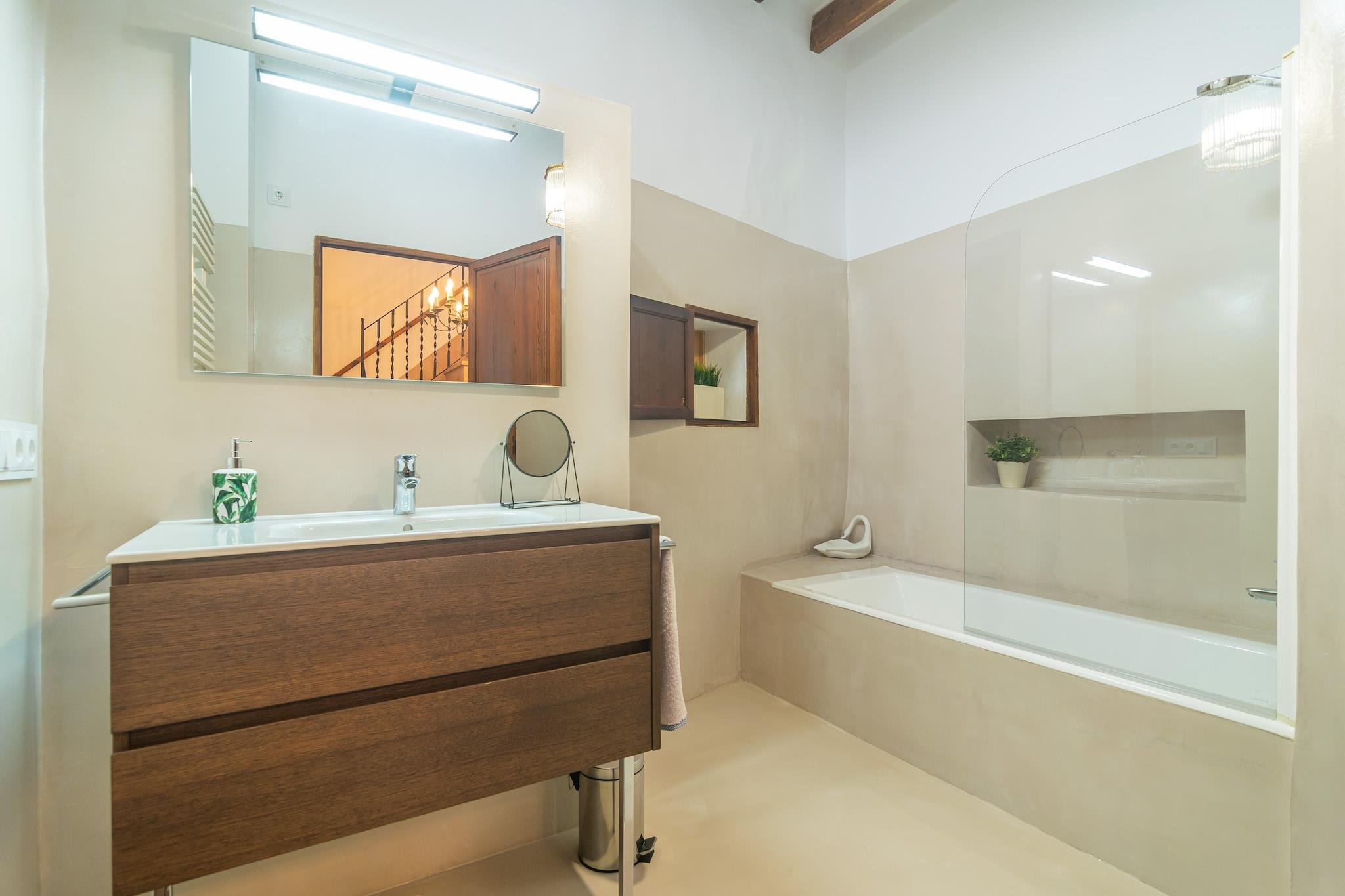 Das Haus verfügt über einen großen Innenhof mit mehreren Ecken, wo Sie das gute Wetter auf der Insel genießen können. Der Salzwasserpool mit einer Größe von 2,5 x 5,10 m und einer maximalen Tiefe von 1,45 m ist ideal für die Abkühlung an den heißesten Tagen. Sie können ein Sonnenbad nehmen, ein leckeres Barbecue zubereiten oder bei einem Drink den Sternenhimmel bewundern. Die köstlichen Mahlzeiten können Sie geschützt unter der vollständig möblierten Veranda genießen. Es gibt auch ein Außenbad mit Dusche. Das Haus befindet sich in einer ruhigen Straße, 200 m vom Marktplatz entfernt. Die moderne Einrichtung ist komplett ausgestattet. Im Erdgeschoss befindet sich das schöne Wohnzimmer mit Smart-TV, Klimaanlage und Holzherd, das zur Wohnküche mit Ceran-Kochfeld offen ist. Die Waschküche bietet Waschmaschine, Trockner, Bügeleisen und Bügelbrett. Im Erdgeschoss befinden sich außerdem ein Schlafzimmer mit TV, Klimaanlage und Doppelbett, ein Badezimmer mit Badewanne und ein separates Arbeitszimmer. In der ersten Etage befinden sich zwei Schlafzimmer mit Doppelbetten, eines davon mit TV. Beide haben ein eigenes Bad mit Dusche, Klimaanlage und direkten Zugang zur Terrasse. Wenn Sie mit Ihrem Baby reisen, können wir Ihnen ein Kinderbett und einen Hochstuhl zur Verfügung stellen. Das Haus liegt in einem sehr ruhigen Dorf mit Anbindung an öffentliche Verkehrsmittel, ein paar Bars und eine Apotheke. Für den Rest der Grundversorgung wie Restaurants und Supermärkte müssen Sie nach Montuïri (6 km) oder Algaida (4 km) fahren. Der nächstgelegene Strand ist Arenal oder es Trenc, aber Sie können auch zu einem der anderen schönen Strände der Insel fahren. Wenn Sie Lust auf eine Partie Golf haben, ist der nächstgelegene Golfplatz 16,8 km entfernt, Golf Son Gual. Es gibt eine Garage mit Platz für ein Auto, die mit dem Innenhof des Hauses verbunden ist. Sehr geeignet für Fahrräder. Das Haus hat 3 Kamine, aber Sie können nur den einen im Haus auf der Rückseite des Innenhofs nutzen. Eventuelle Nebenkosten müssen beim Anbieter nachgefragt werden. Haustiere sind willkommen. Partys oder ähnliche Veranstaltungen sind nicht gestattet. Es gibt Parkplätze für 1 Autos in der Garage. Entfernungen Strand: 25.3 km - El Arenal Flughafen: 28.2 km - Son Sant Joan Golfplatz: 16.8 km - Golf Son Gual Ortsmitte: 0.150 km - Pina Bahnhof: 18.6 km - Binissalem Bushaltestelle: 0.450 km - Pina Fähre: 34.2 km - Palma de Mallorca Krankenhaus: 24.1 km - Hospital Son Llàtzer Touristen Lizenz: ETV/10716Einheitsregister: ESFCTU000007008000961874000000000000000000000ETV/9470Auf den Balearen gibt es eine Touristensteuer, die Ecotasa genannt wird. Diese Steuer muss vom Gast bezahlt werden. Der zu zahlende Betrag beträgt zwischen 0.55EURO pro Nacht und Gast in der Nebensaison und 2.2EURO pro Nacht und Gast in der Hochsaison. Ab dem 9. Tag reduziert sich die Steuer um die Hälfte. Personen unter 16 Jahren sind davon ausgenommen