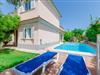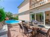 Wohnzimmer, Küche, Schlafzimmer, Schlafzimmer, Schlafzimmer, Badezimmer, Badezimmer, 2x Einzelbett, Doppelbett, Doppelbett, Kochherd, Kaffeemaschine, Backofen, Mikrowelle, Kühl-/Gefrierkombination, Badewanne, Dusche, Waschbecken, Waschbecken, Toilette, Toilette, Garten, Gartenmöbel, 5x Liegen, Grill, Pool, Kinderbett, Hochstuhl