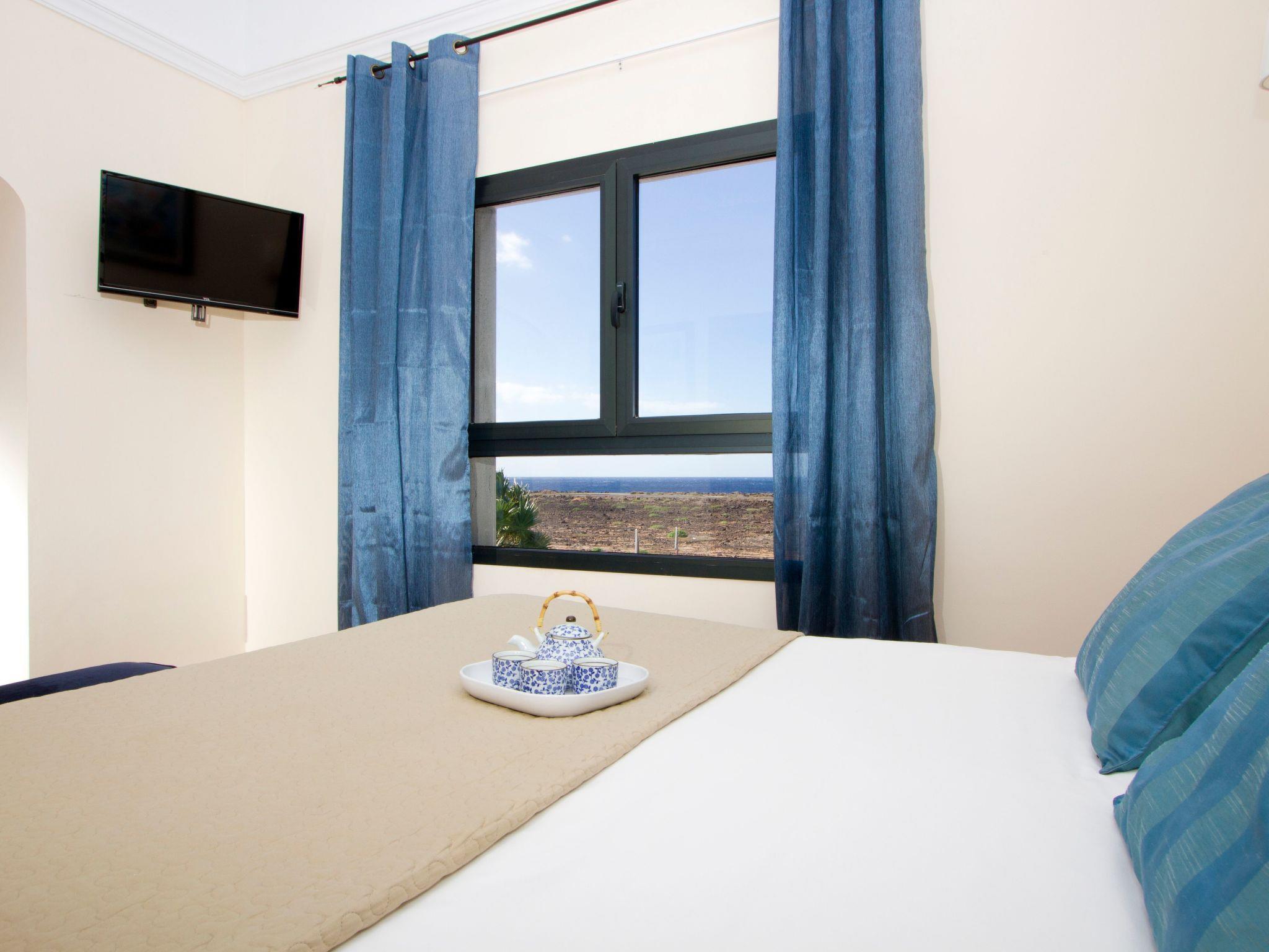Die Villen liegen in der Wohnsiedlung Montaña Roja in Playa Blanca und bieten einen spektakulären Blick auf das Meer und die Inseln Lobos von Fuerteventura. Die 135 m2 großen Villas Coral Deluxe mit privatem Swimming-Pool und Meerblick bieten 3 Schlafzimmer mit bequemen Platz für 6 Personen. Das Hauptschlafzimmer in der 1. Etage rechnet mit einem Doppelbett, eigenem Badezimmer, Zimmersafe (kostenpflichtig) und einem großen Balkon mit Meerblick. Im Untergeschoss befinden sich 2 Schlafzimmer mit Meerblick und jeweils 2 Einzelbetten und ein weiteres komplettes Badezimmer. Alle Villen stellen Satelliten-TV, DVD, Bügeleisen, kostenlosen W-Lan Zugang, Fön und Amenities zur Verfügung. Die Küche ist in allen Villen mit Ofen, Mikrowelle, Spülmaschine und mit Küchengeräten komplett ausgestattet. Eine weitläufige Terasse bietet einen Grill, 6 Sonnenliegen, einen überdachten Sitzbereich mit Tisch für bis zu 6 Personen und Zugang zum privaten Abstell-/Waschmaschinenraum. Gegen Aufpreis kann der Privatpool im Winter beheizt werden
