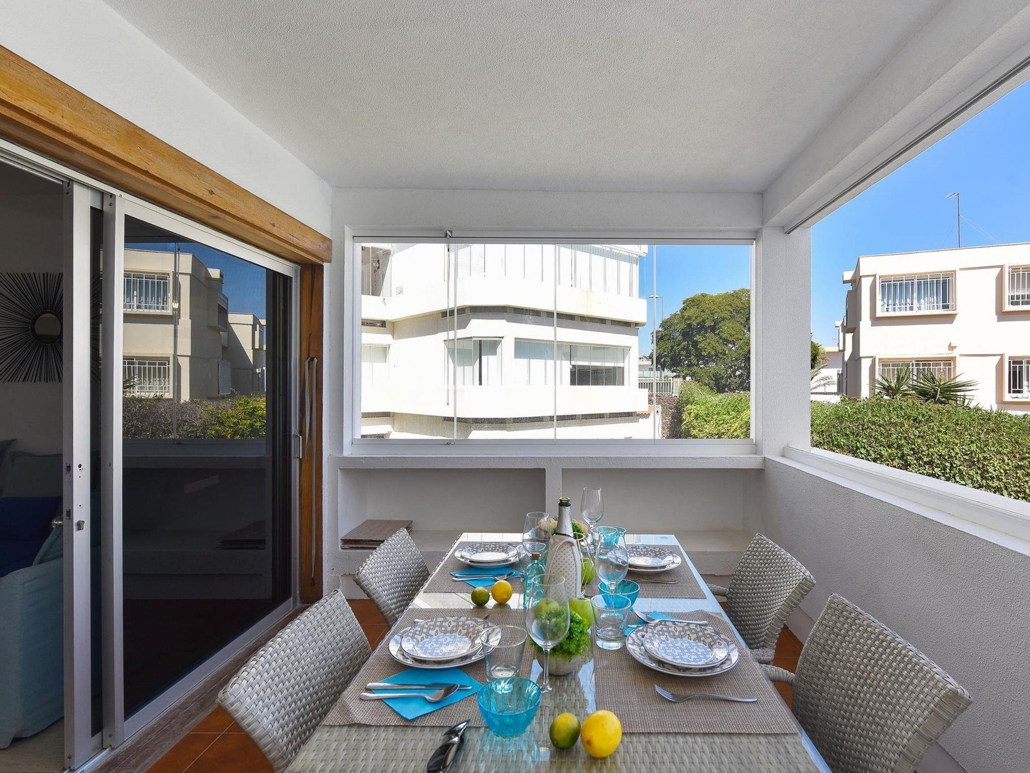"Aida 202", 2-Zimmer-Wohnung 55 m2. Komfortabel und modern eingerichtet: Wohn-/Esszimmer mit Esstisch und Digital-TV. Ausgang zum Balkon. 1 Zimmer mit 1 franz. Bett. Ausgang zum Balkon. Küche (2 Glaskeramikplatten, Toaster, Wasserkocher, Mikrowelle, Tiefkühler, elektrische Kaffeemaschine). Dusche/WC. Balkon. Balkonmöbel. Sicht auf das Meer. Zur Verfügung: Waschmaschine, Kinderhochstuhl, Babybett bis 2 Jahre, Haartrockner. Internet (WLAN, gratis). Bitte beachten: Nichtraucher-Unterkunft. VV-35-1-0018066 // Reg. Nr.: ESFCTU0000350130003259010000000000000VV-35-1-00180663