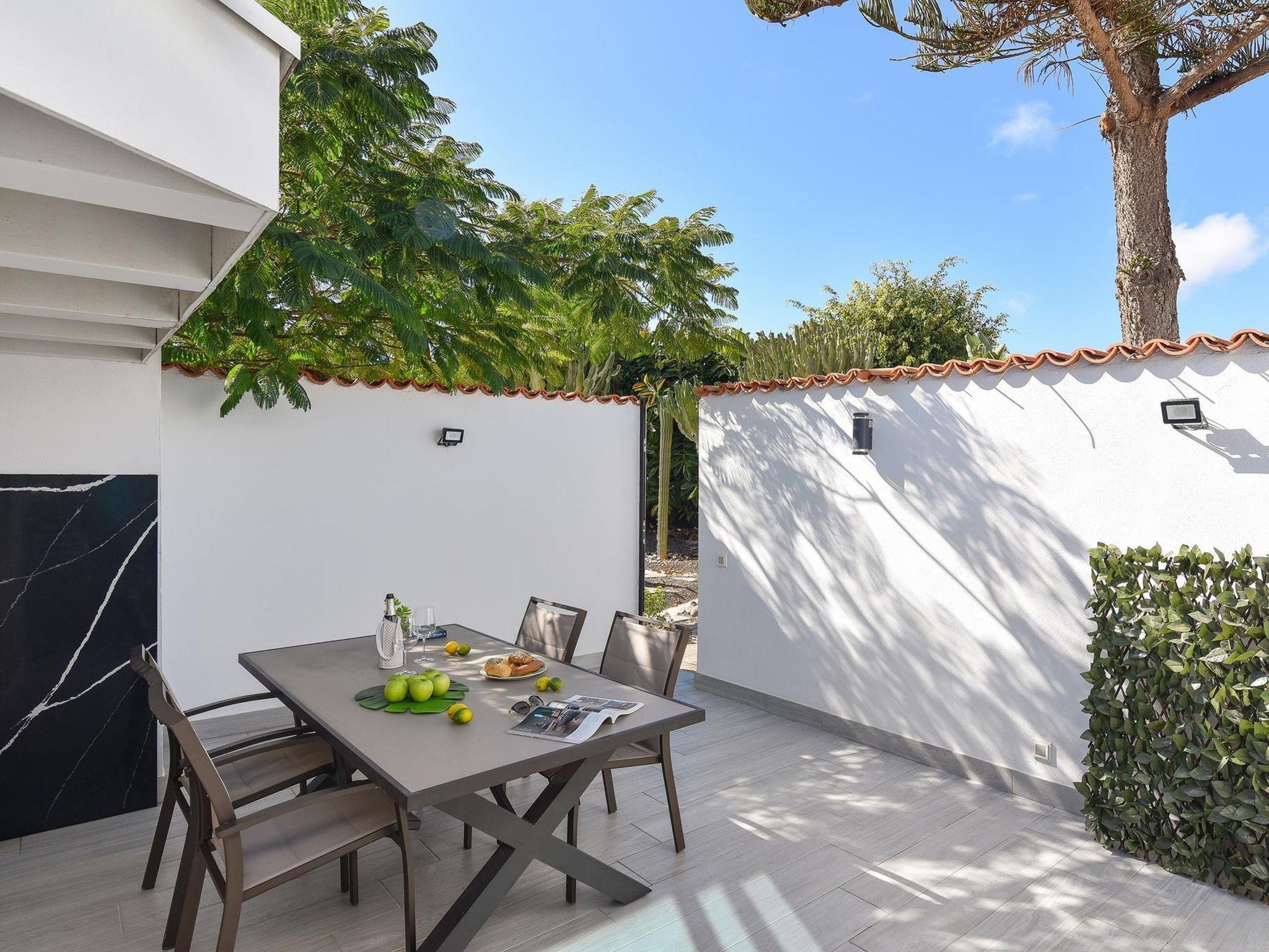 Moderne, gemütliche Villa "Villa Daniela". Im Ortszentrum von Playa del Inglés, zentrale, belebte Lage. Zur Alleinbenutzung: Grundstück (eingezäunt), Schwimmbad (3 x 2 m, 120 - 120 cm tief, saisonale Verfügbarkeit: 01.Jan. - 31.Dez.). Aussendusche. Im Hause: Klimaanlage. Öffentliche Parkplätze auf der Strasse. Einkaufsgeschäft, Supermarkt 200 m, Bushaltestelle "Shopping Center Cita" 50 m. Der Besitzer akzeptiert keine Jugendgruppen. Bitte beachten: Flugplatz 35 km vom Haus. Die Nachbarschaft ist sehr lärmempfindlich. Ruhe und gutes Benehmen wird erwartet.