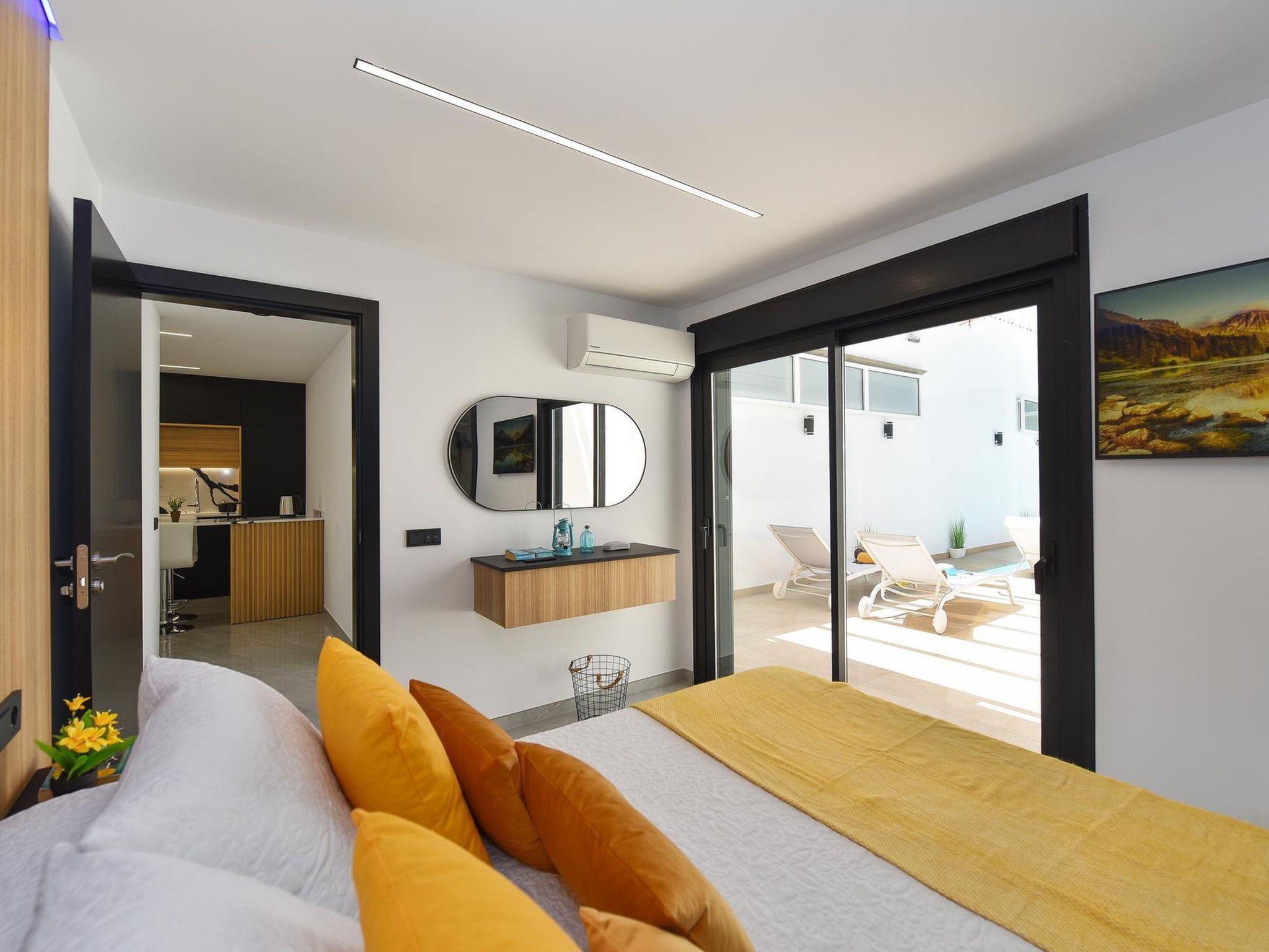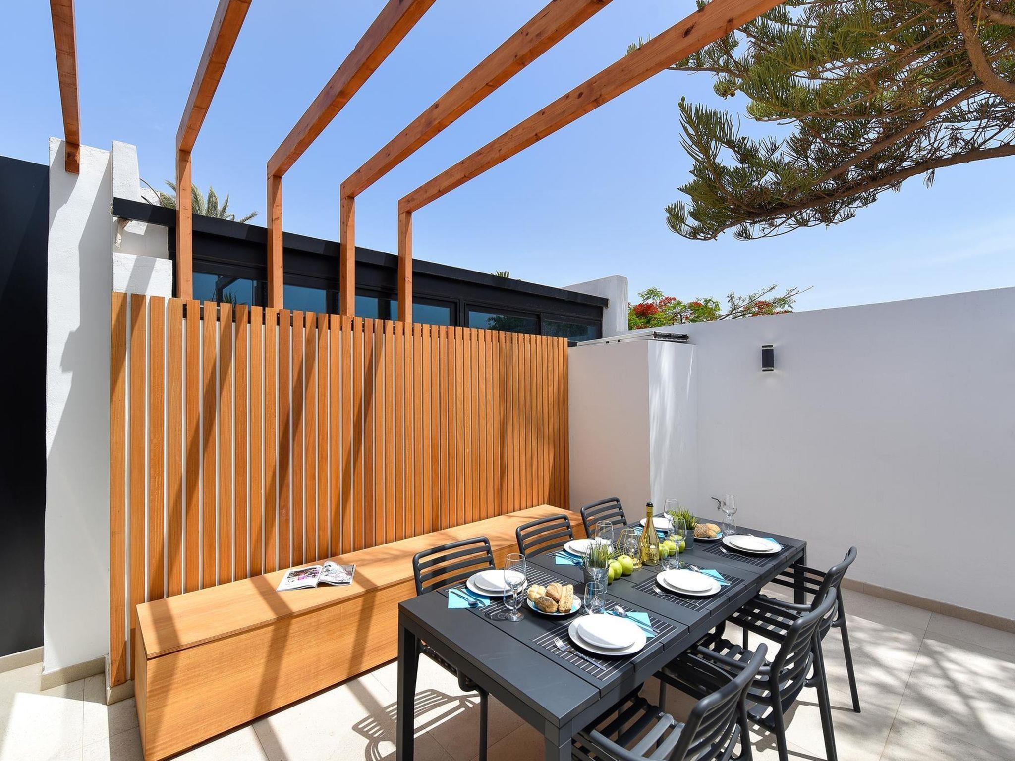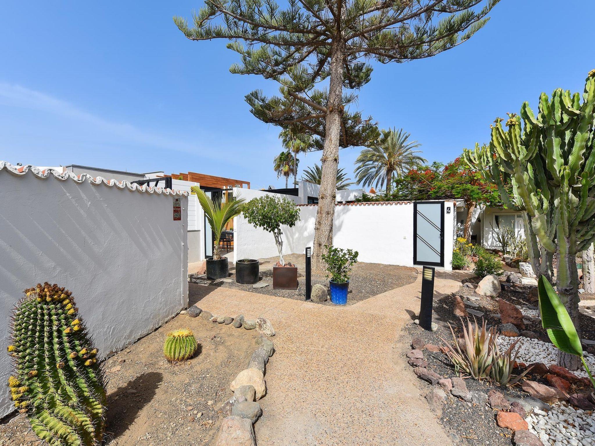 Moderne, komfortable Villa "Villa Aisha". Im Ortszentrum von Playa del Inglés, zentrale, belebte Lage. Zur Alleinbenutzung: Grundstück (eingezäunt), Schwimmbad (4 x 4 m, 150 - 150 cm tief, saisonale Verfügbarkeit: 01.Jan. - 31.Dez.). Aussendusche. Im Hause: Klimaanlage. Öffentliche Parkplätze auf der Strasse. Einkaufsgeschäft, Supermarkt 200 m, Bushaltestelle "Shopping Center Cita" 10 m. Der Besitzer akzeptiert keine Jugendgruppen. Bitte beachten: Flugplatz 35 km vom Haus. Die Nachbarschaft ist sehr lärmempfindlich. Ruhe und gutes Benehmen wird erwartet.