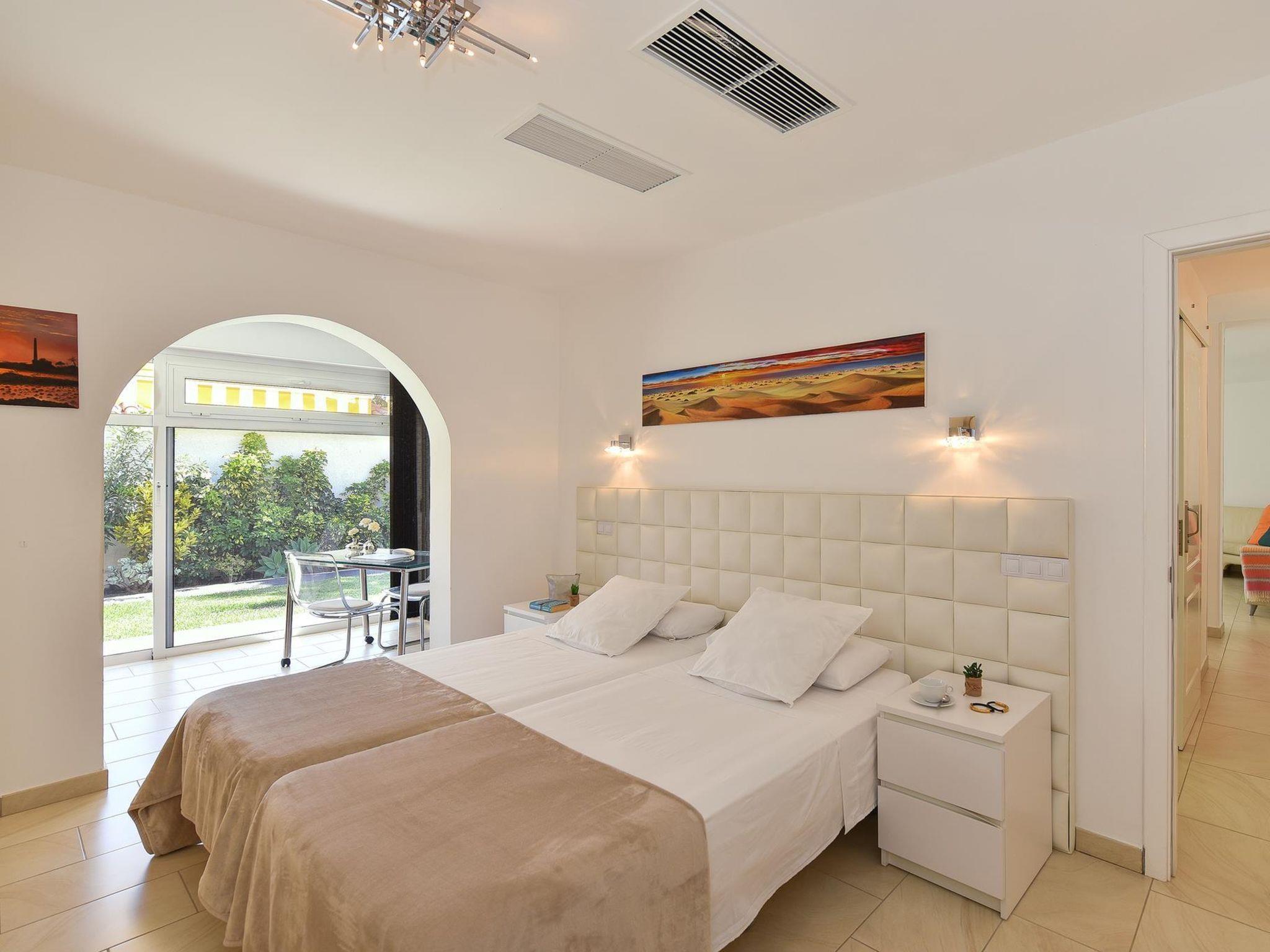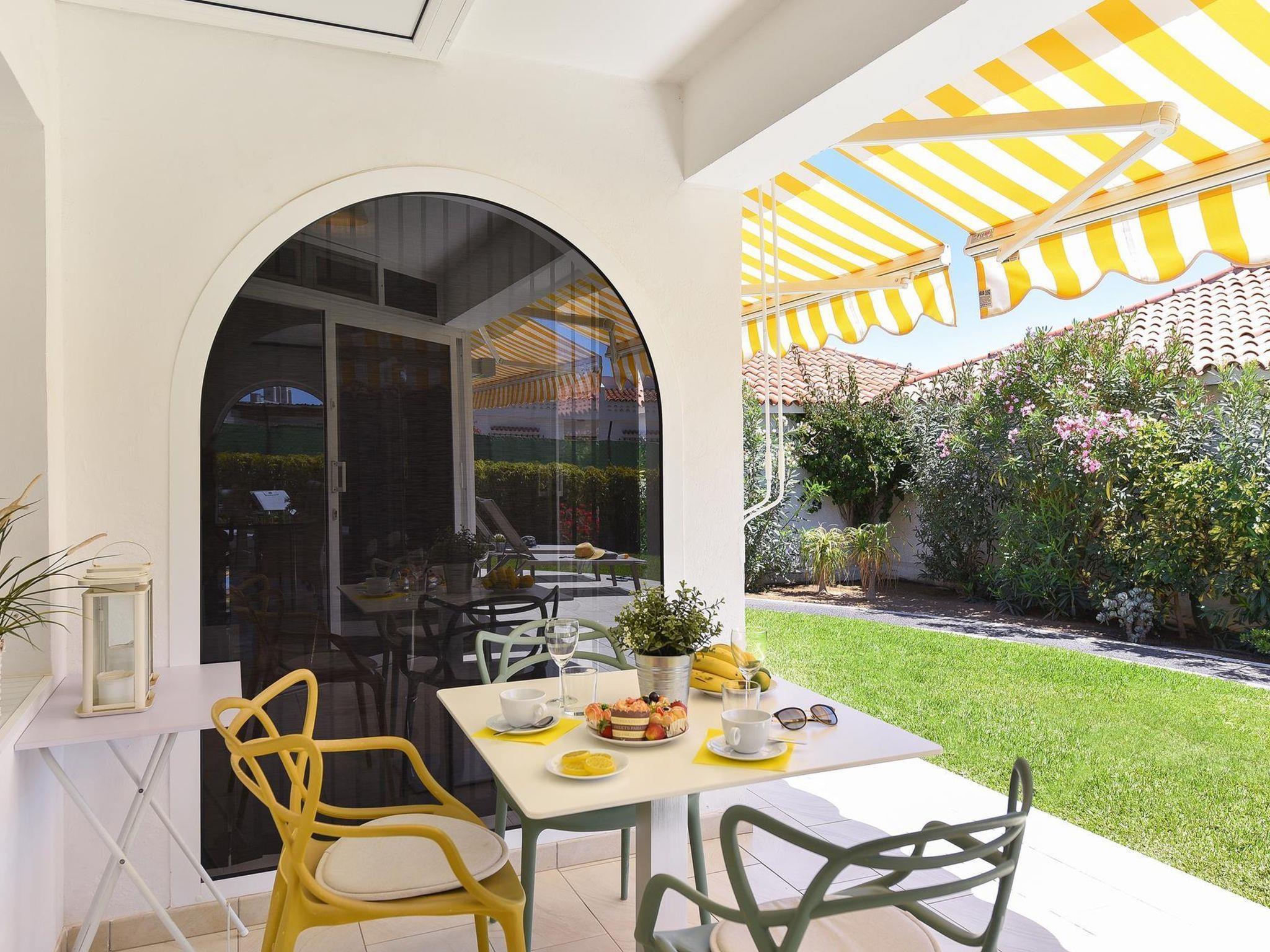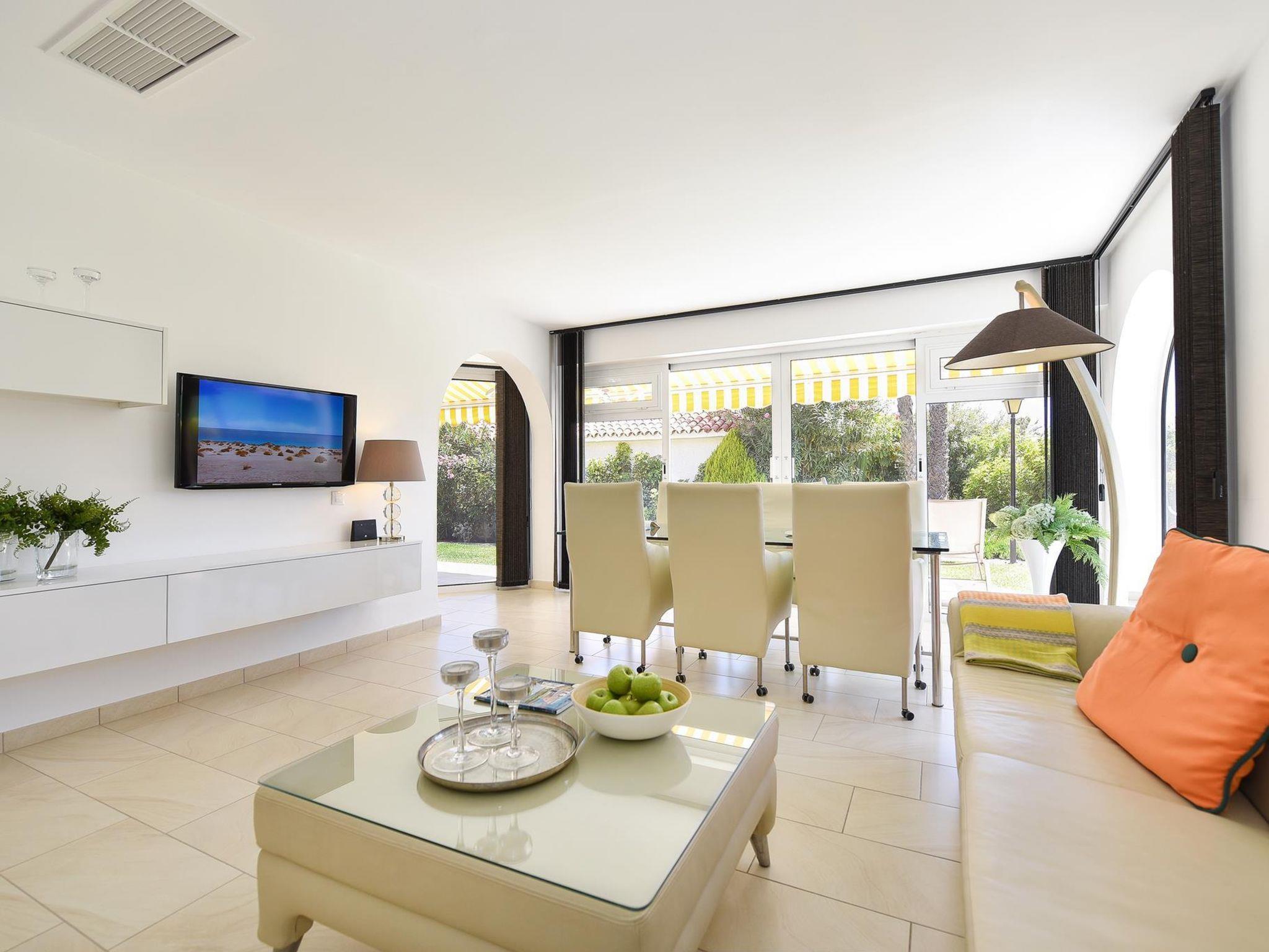 "Sun Club EM259A", 2-Zimmer-Haus 80 m2. Einfach und komfortabel eingerichtet: Wohn-/Esszimmer mit Esstisch, Sat-TV, Digital-TV und Klimaanlage. Ausgang zum Gartensitzplatz. 1 Zimmer mit 2 Betten und Klimaanlage. Küche (Backofen, 4 Glaskeramikplatten, Toaster, Wasserkocher, Mikrowelle, elektrische Kaffeemaschine). Dusche/WC. Gartensitzplatz. Terrassenmöbel, Gartengrill, Liegestühle. Sicht auf den Garten. Zur Verfügung: Waschmaschine, Safe, Bügeleisen, Kinderhochstuhl, Babybett bis 2 Jahre, Haartrockner. Internet (WLAN, gratis). Bitte beachten: Nichtraucher-Haus. 2022-T4663 // Reg. Nr.: ESFCTU0000350130003748550000000000000VV-35-1-00173131
