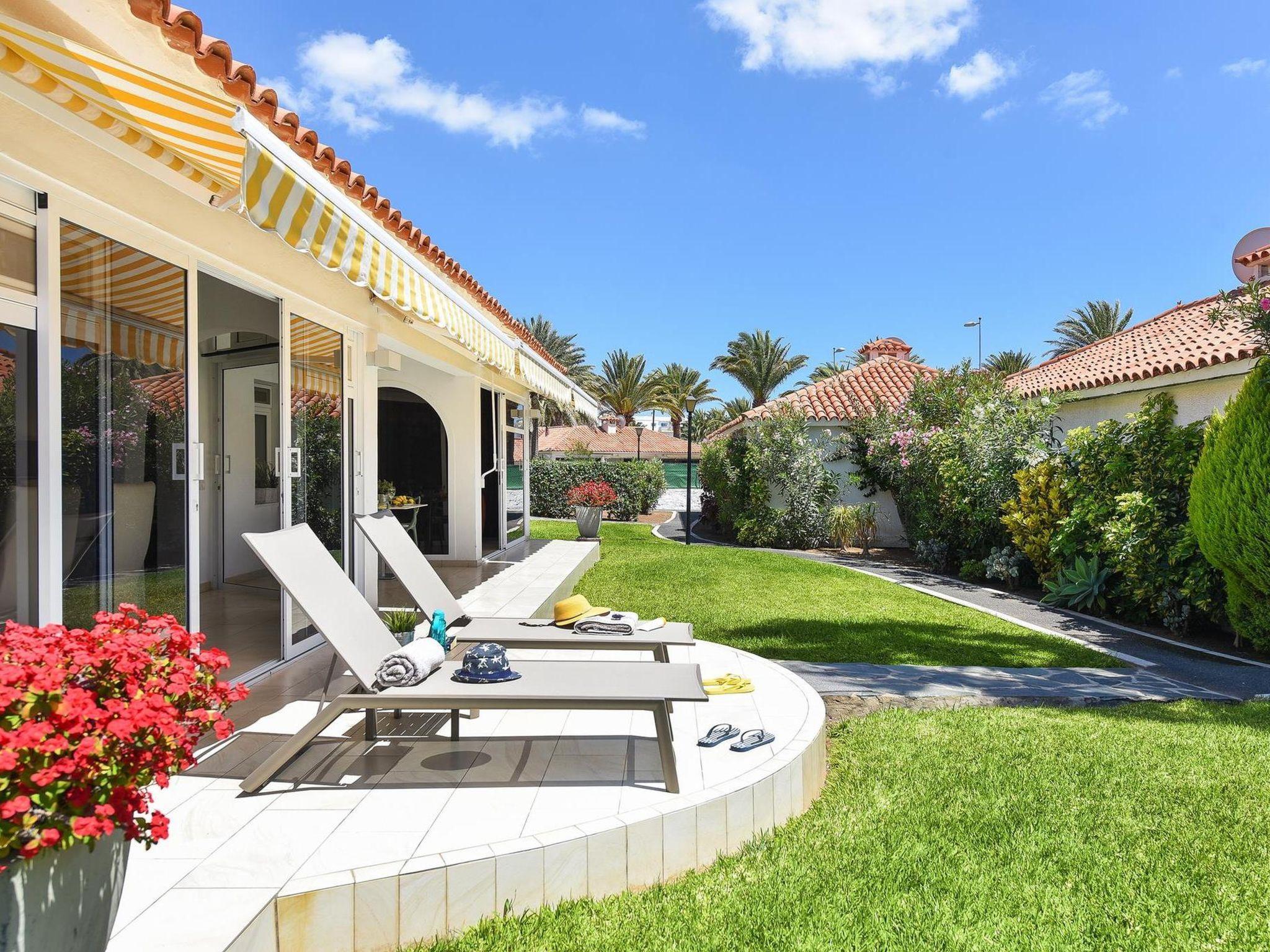 Grosse, einfache, komfortable Feriensiedlung "Bungalow Sun Club EM259A". Im Ortszentrum von Playa del Ingles, zentrale, ruhige, sonnige Lage. Zur Mitbenutzung: Schwimmbad eckig beheizt (saisonale Verfügbarkeit: 01.Jan. - 31.Dez.). Aussendusche, Tennis. Zur Alleinbenutzung: Garten (eingezäunt) mit Rasen. Grill. Im Hause: Klimaanlage. Bushaltestelle "Plaza de Teror" 300 m. Der Besitzer akzeptiert keine Jugendgruppen. Die Nachbarschaft ist sehr lärmempfindlich. Ruhe und gutes Benehmen wird erwartet.