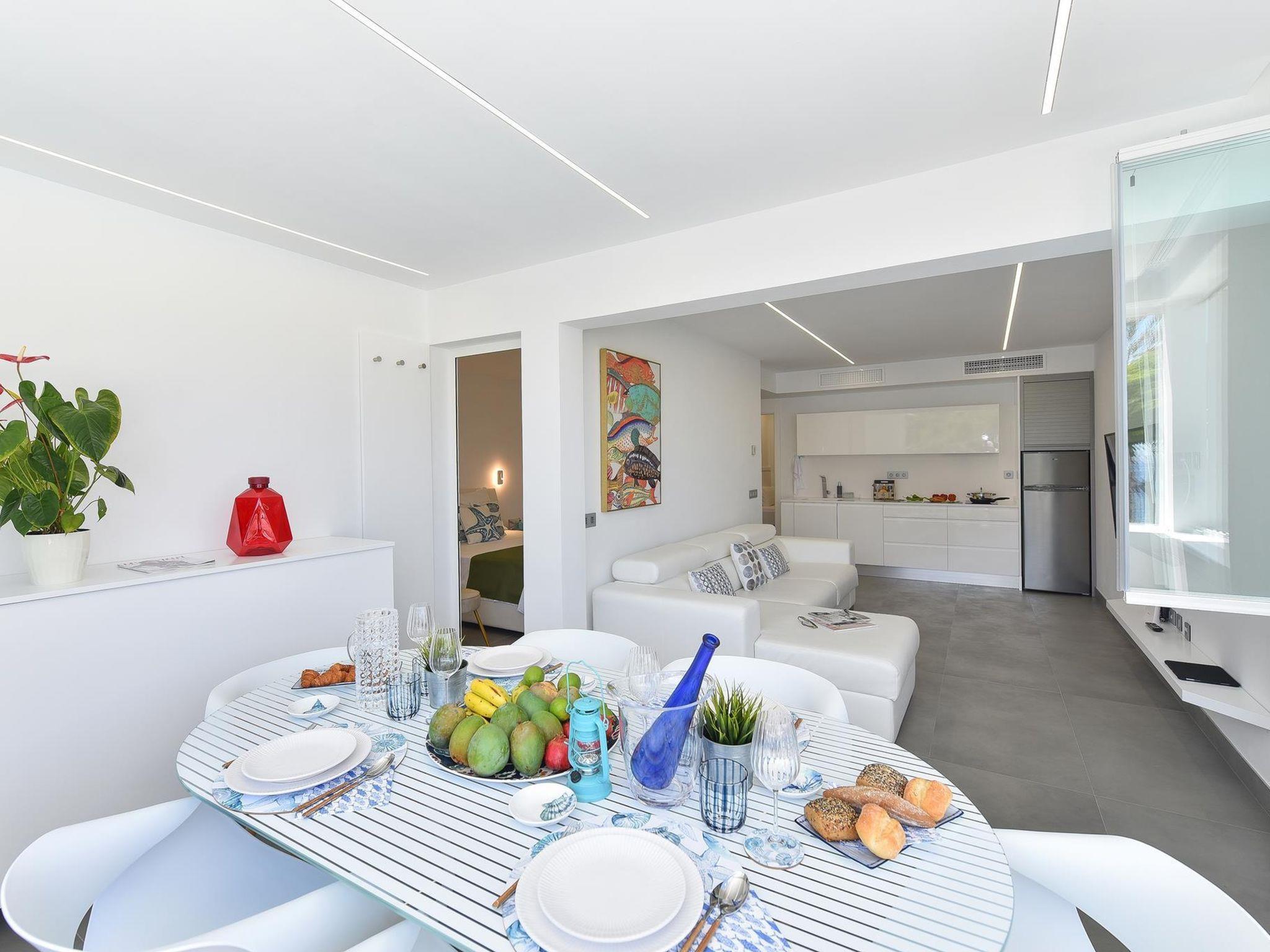 "Aida 206", 3-Zimmer-Wohnung 62 m2 im 2. Stock. Komfortabel und modern eingerichtet: Wohn-/Esszimmer mit Esstisch, Sat-TV, Digital-TV und Klimaanlage. 1 Zimmer mit 1 franz. Bett. 1 Zimmer mit 1 x 2 Etagenbetten. Offene Küche (Geschirrspüler, 3 Glaskeramikplatten, Toaster, Wasserkocher, Mikrowelle, elektrische Kaffeemaschine). Dusche/WC. Balkon. Sicht auf das Meer und den Garten. Zur Verfügung: Waschmaschine, Safe, Bügeleisen, Kinderhochstuhl, Babybett bis 2 Jahre, Haartrockner. Internet (WLAN, gratis). Bitte beachten: Nichtraucher-Unterkunft. 2021-T8125 // Reg. Nr.: ESFCTU0000350130003259320000000000000000VV35100163773