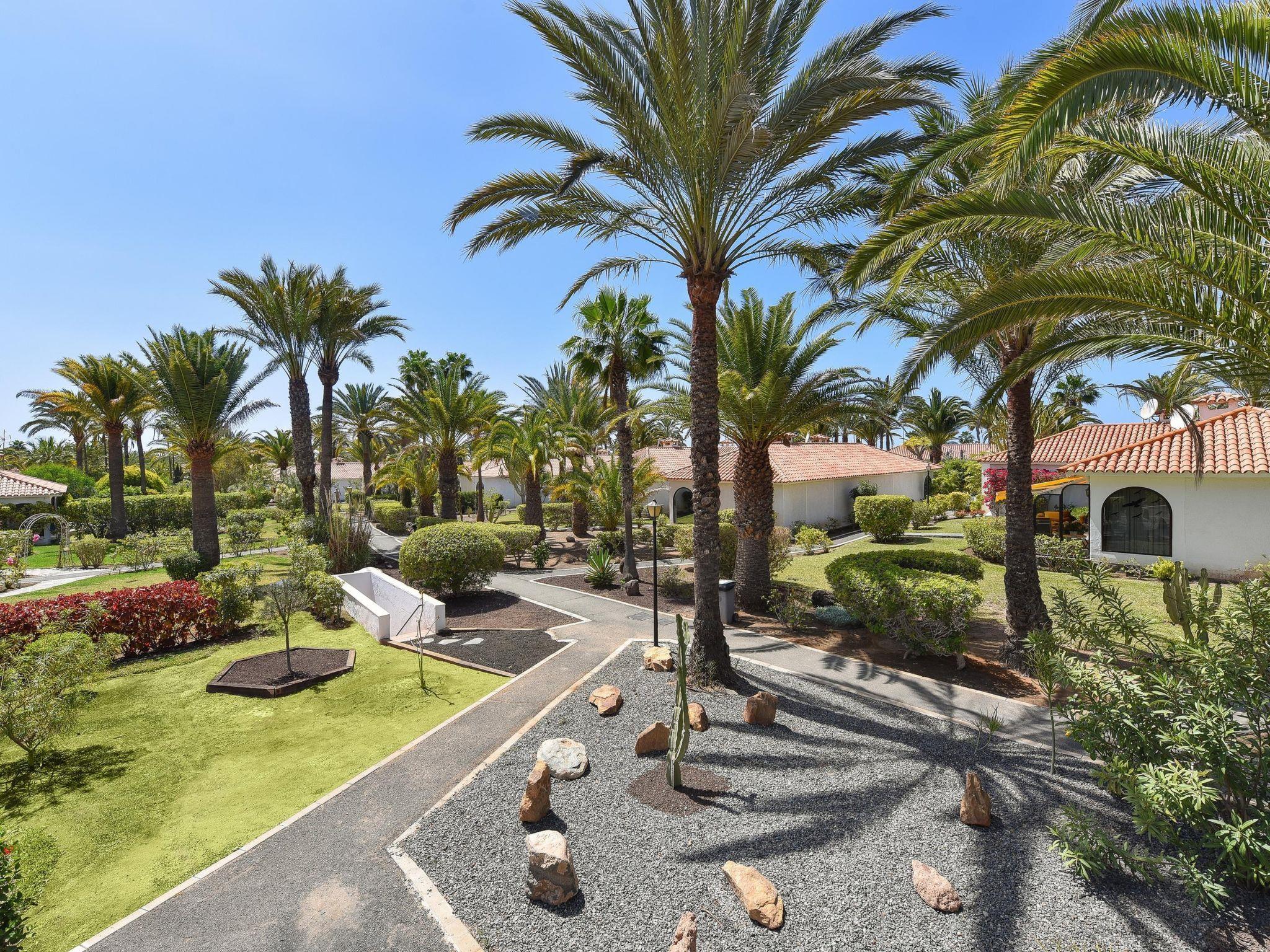 Grosse, einfache, komfortable Feriensiedlung "Bungalow Sun Club OS55". Im Ortszentrum von Playa del Ingles, zentrale, ruhige, sonnige Lage. Zur Mitbenutzung: Schwimmbad beheizt (saisonale Verfügbarkeit: 01.Jan. - 31.Dez.). Aussendusche, Tennis. Zur Alleinbenutzung: Garten (eingezäunt) mit Rasen. Grill. Im Hause: Klimaanlage. Bushaltestelle "Plaza de Agaete" 180 m. Der Besitzer akzeptiert keine Jugendgruppen. Die Nachbarschaft ist sehr lärmempfindlich. Ruhe und gutes Benehmen wird erwartet.