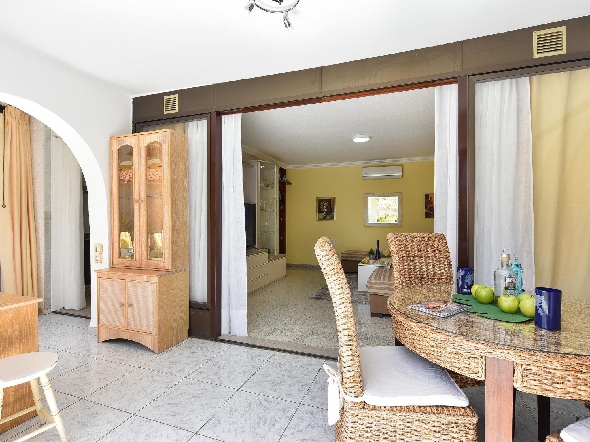 "Sun Club OS55", 2-Zimmer-Haus 80 m2. Einfach und komfortabel eingerichtet: Wohnzimmer mit Sat-TV, Digital-TV und Klimaanlage. Ausgang zum Gartensitzplatz. 1 Zimmer mit 2 Betten und Ventilator. Küche (Backofen, 4 Glaskeramikplatten, Toaster, Wasserkocher, Mikrowelle, Tiefkühler, elektrische Kaffeemaschine). Dusche/WC. Gartensitzplatz. Terrassenmöbel, Gartengrill. Sicht auf den Garten. Zur Verfügung: Waschmaschine, Safe, Bügeleisen, Kinderhochstuhl, Babybett, Haartrockner. Internet (WLAN, gratis). Bitte beachten: Nichtraucher-Haus. 2021-T2770 // Reg. Nr.: ESFCTU0000350130002472720000000000000VV-35-1-00156532