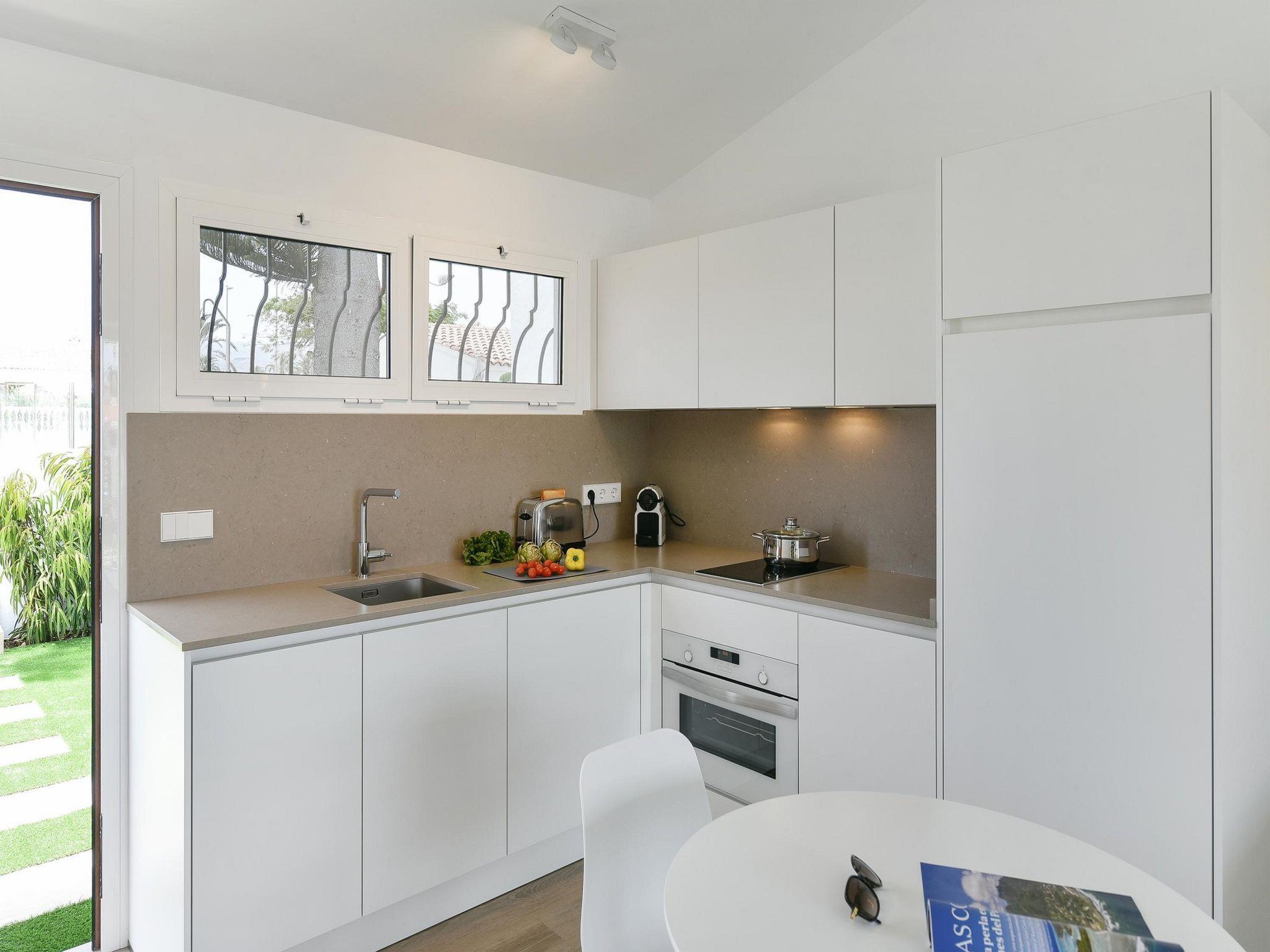 "Santa Barbara EMB5", 3-Zimmer-Bungalow. Objekt geeignet für 4 Erwachsene. Hell, sehr komfortabel und gemütlich eingerichtet: Wohn-/Esszimmer mit TV und Flachbildschirm. Ausgang zum Gartensitzplatz. 1 Zimmer mit 1 Doppelbett (150 cm, Länge 200 cm). 1 Zimmer mit 2 Betten (90 cm, Länge 190 cm). Offene Küche (Backofen, Geschirrspüler, 4 Glaskeramikplatten, Toaster, Wasserkocher, Mikrowelle, Tiefkühler, elektrische Kaffeemaschine). Dusche/WC. Parkettboden. Laube. Terrassenmöbel, Liegestühle (2), Sitzplatz. Zur Verfügung: Waschmaschine, Wäschetrockner, Bügeleisen, Kinderhochstuhl, Babybett bis 2 Jahre, Haartrockner. Internet (WLAN, gratis). Bitte beachten: geeignet für Familien. Nichtraucher-Unterkunft. Maximal 1 kleines Haustier/Hund erlaubt. 2024-T18559 // Reg. Nr.: ESFCTU0000350130002431680000000000000VV-35-1-00239464