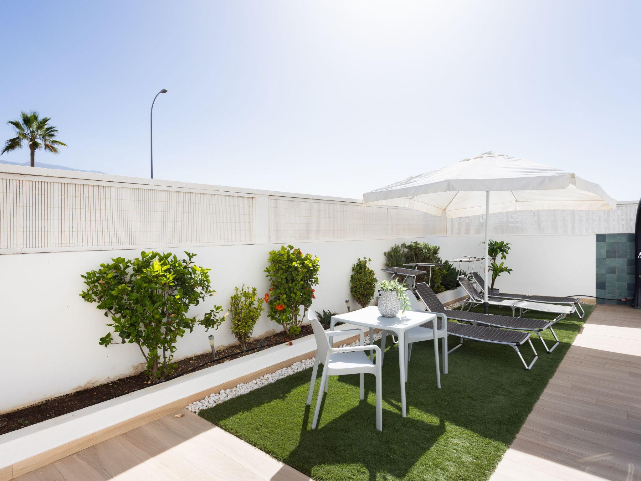 Dieses moderne Ferienhaus verfügt über einen privaten Pool, der gegen einen Aufpreis beheizt werden kann, und liegt nur wenige Gehminuten vom Strand Playa La Arena und dem Meer entfernt.