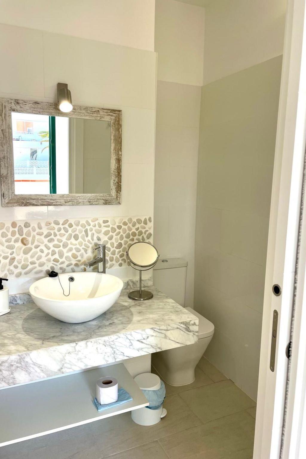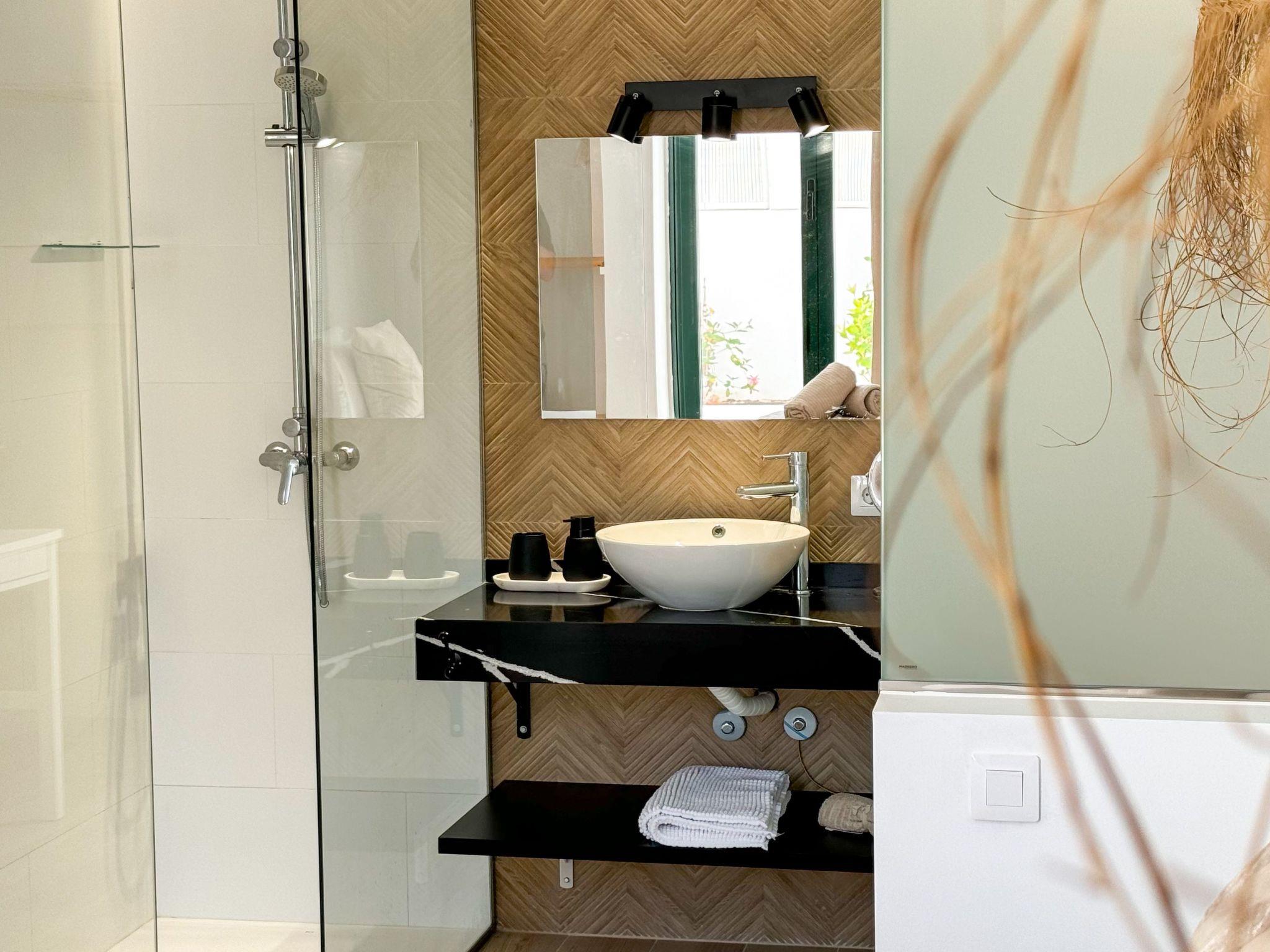 Im ersten Stock befinden sich zwei Schlafzimmer, ein Badezimmer mit Dusche und eine separate Toilette. Außerdem gibt es einen kleinen Wohnbereich mit Schlafsofa und Zugang zum Balkon, perfekt, um die Sonne zu genießen.