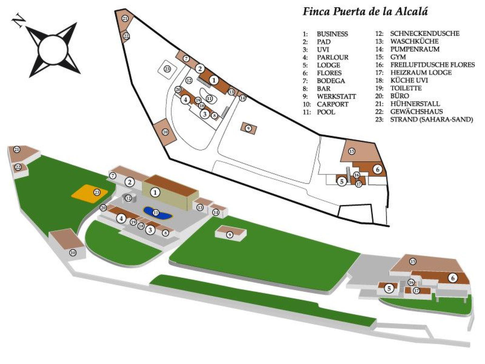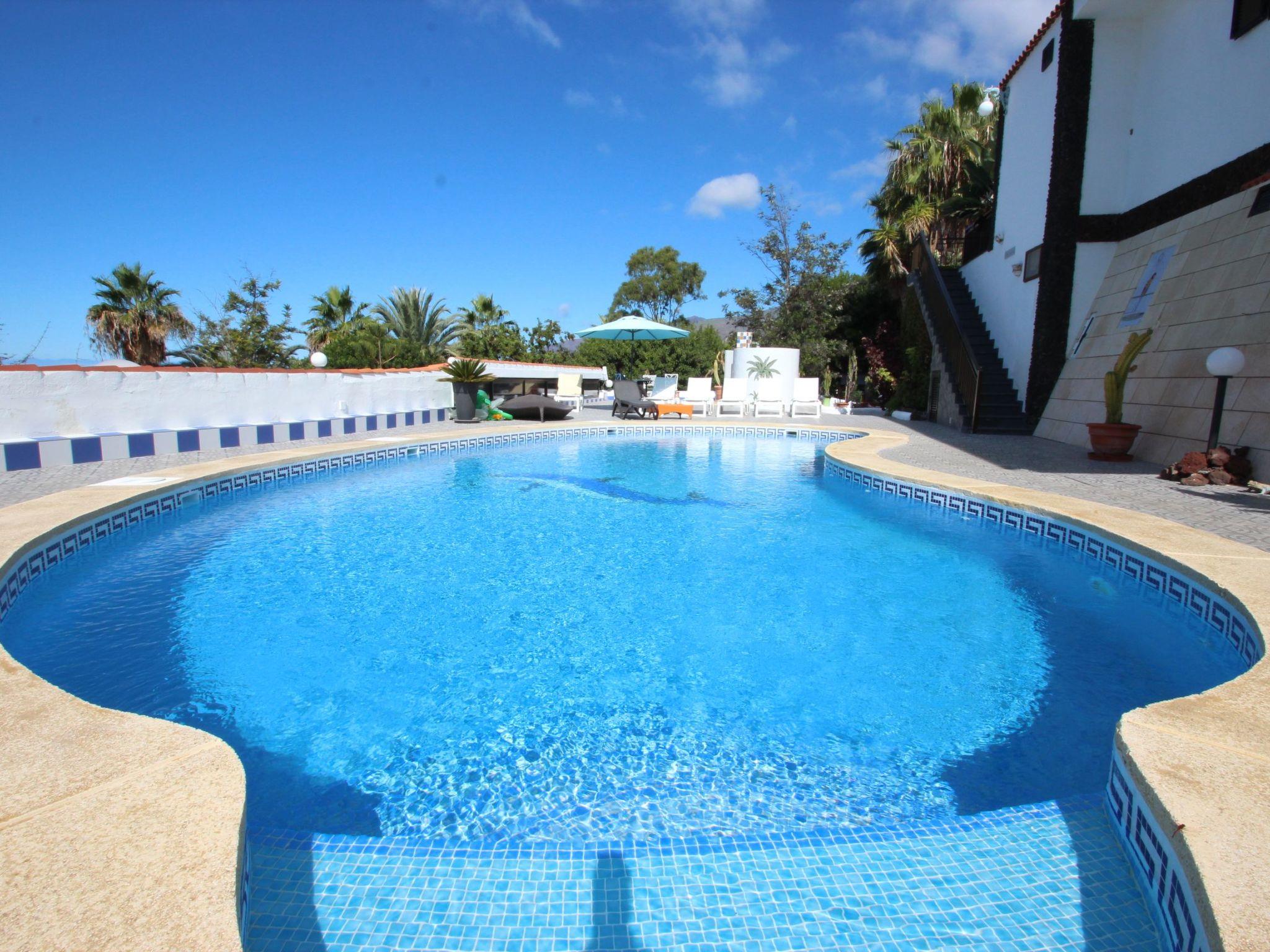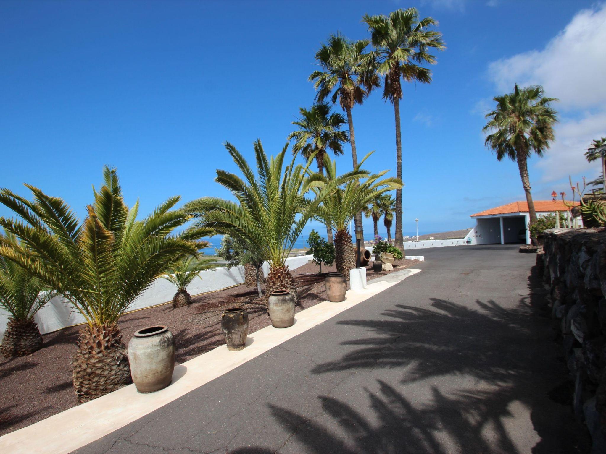 Der Außenbereich lässt keine Wünsche offen: Eine beheizte Poollandschaft mit etwa 27 Grad Celsius, umgeben von ausreichend Liegen und Sonnenschirmen, eine Schneckendusche mit Warmwasser sowie ein Selbstbedienungs-Barbereich bieten ideale Voraussetzungen für Entspannung unter der Sonne Teneriffas. Zusätzlichen Komfort bieten ein großer Sandkasten für Kinder, eine vollständige Ummauerung des Anwesens für maximale Privatsphäre, ein motorbetriebenes Eingangstor, eine Garage sowie sonnengeschützte Stellplätze und ausreichend Parkplätze.
