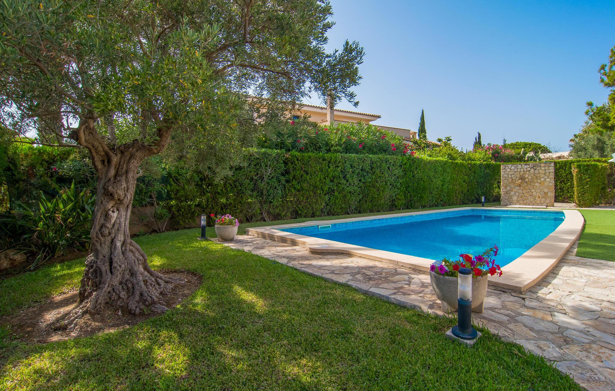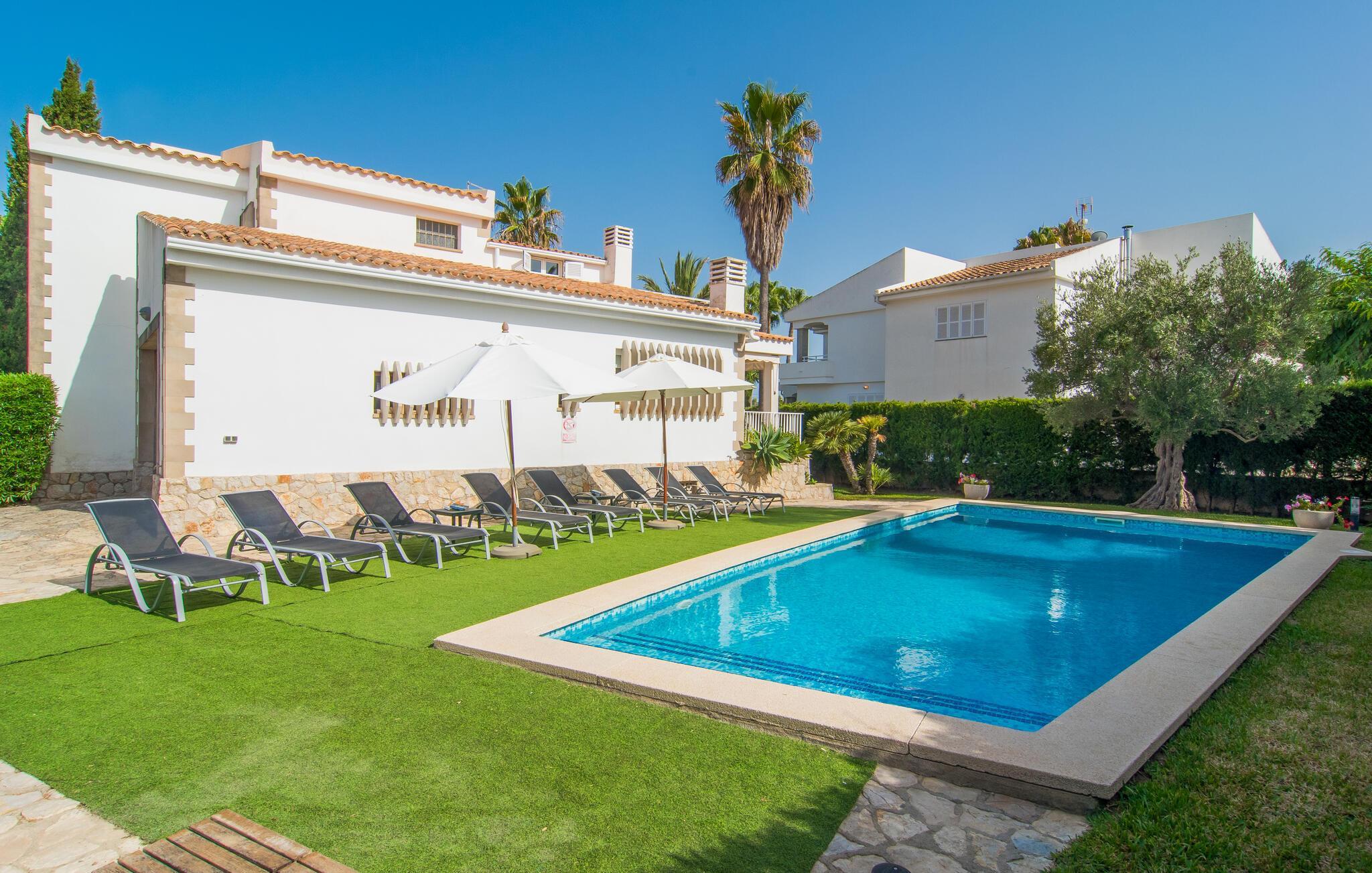 Diese großzügige und stilvolle Villa bietet Ihnen und Ihrer Großfamilie oder Freunden ein komfortables Urlaubsdomizil, das keine Wünsche offenlässt. Die hellen, geräumigen Zimmer verteilen sich auf zwei Etagen und laden zum Entspannen ein. Beginnen Sie den Tag mit einem gemeinsamen Frühstück in der voll ausgestatteten Küche, bevor Sie sich im schön angelegten Garten erholen. Die Veranda und das Sonnendeck am Pool bieten ideale Plätze, um die mallorquinische Sonne zu genießen und erfrischende Stunden im Pool zu verbringen.