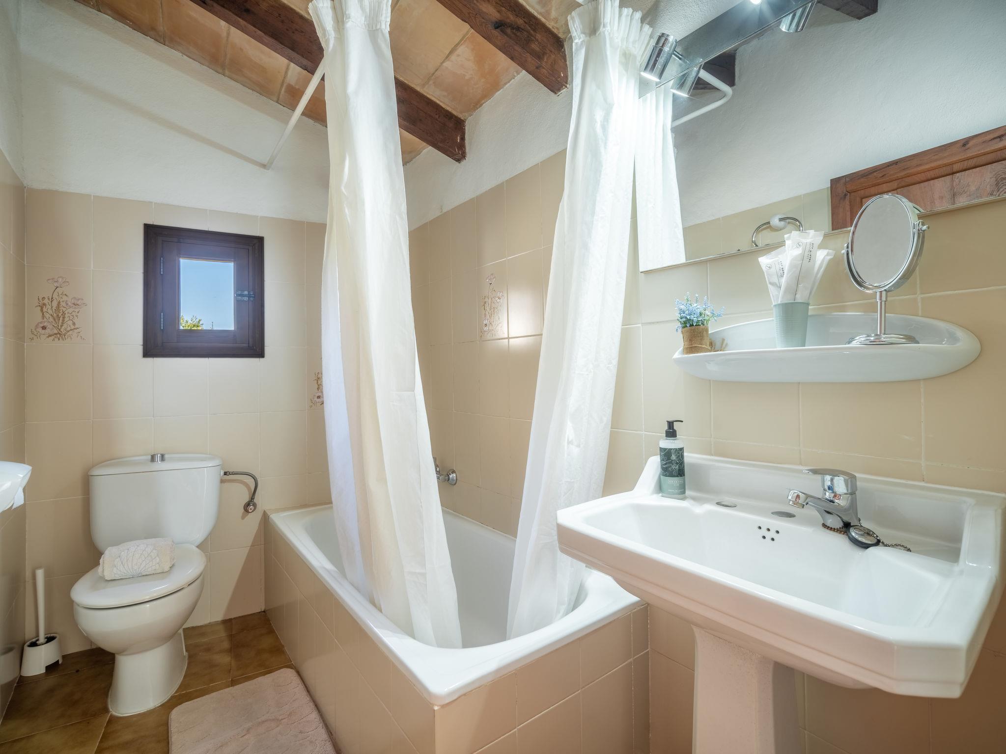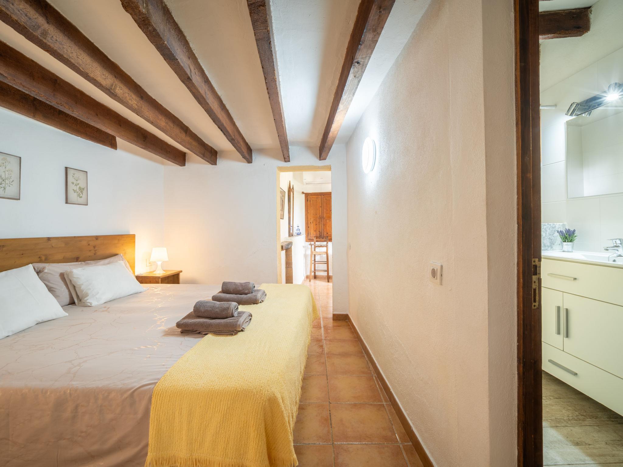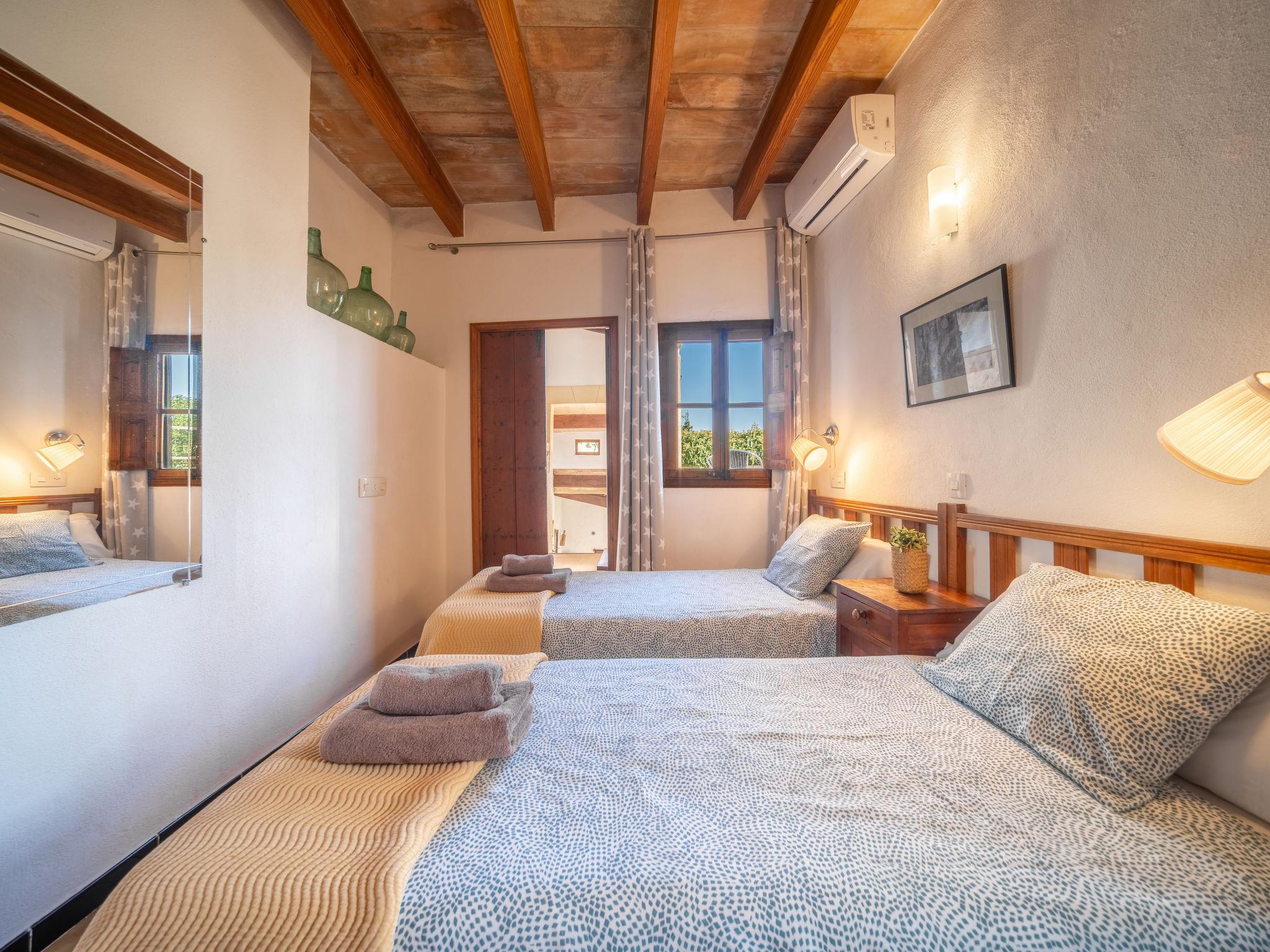 Grosse, rustikale Finca "Ca na Canta", auf 2 Stockwerken, einseitig angebaut. Ausserhalb des Ortes, 700 m vom Zentrum von Pollença, sonnige Lage im Villenviertel, 2 km vom Waldrand, 7 km vom Meer, im Grünen. Zur Alleinbenutzung: Grundstück 1'600 m2 (eingezäunt), kleiner Garten 15 m2 Rasen, Obstgarten 2'000 m2, Schwimmbad eckig (4 x 8 m, 32 m2, 100 - 200 cm tief, saisonale Verfügbarkeit: 01.Mar. - 30.Nov.). Dusche/WC im Poolbereich, Aussendusche, Gartenmöbel, Grill. Im Hause: Internetzugang, Wireless LAN, Klimaanlage, Waschmaschine. Schmale Zufahrt. Parkplatz auf dem Grundstück. Supermarkt 1.5 km, Einkaufszentrum 1.8 km, Restaurant 650 m, Bar 600 m, Bäckerei 900 m, Zentrum zu Fuss in 18 Minuten erreichbar, Bushaltestelle "Pont Romà 1 (42045)" 500 m, Sandstrand "Port de Pollença" 7 km. Sporthafen 7 km, Golfplatz (18 Loch) 4.2 km, Reitstall 2 km, Sportzentrum 1.5 km, Wanderwege ab Haus 1 km, Radweg 500 m. Nahe gelegene Sehenswürdigkeiten: Playa de Formentor 14 km, Pueblos:Port Pollença, Alcúdia, Sa Pobla, Monasterio de Lluc 21 km, Cuevas de Campanet 17 km, Bodega Can Axartell 9 km, Palma City 54 km. Wandergebiete: Puig de Maria, Serra de Tramuntana, Cala Boquer. Bitte beachten: Fahrzeug empfohlen. Objekt geeignet für 8 Erwachsene. Der Besitzer akzeptiert keine Jugendgruppen. Flugplatz 60 km vom Haus.