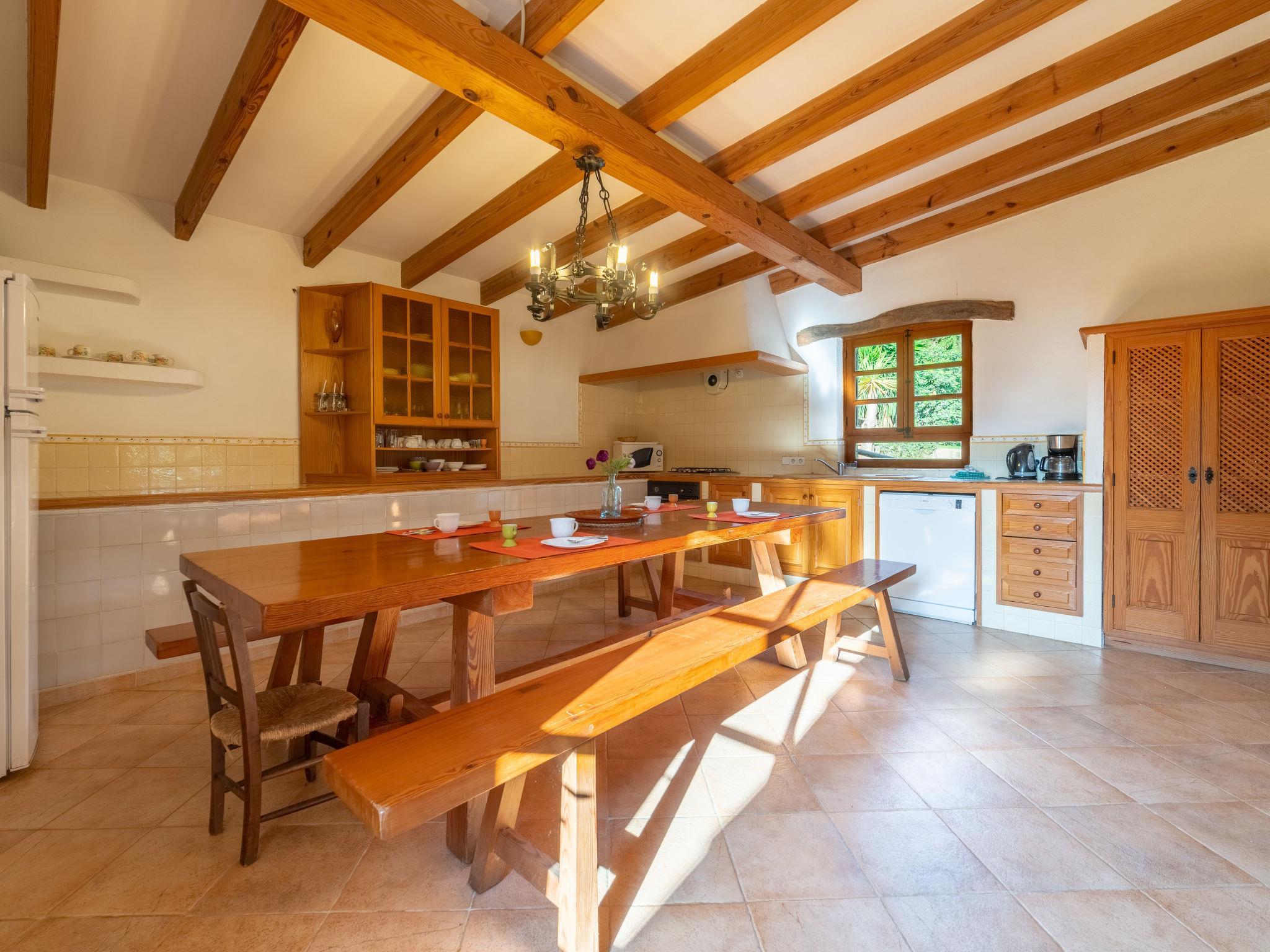 "Can Ferre Nou", 4-Zimmer-Haus 140 m2. Komfortabel und schön eingerichtet: Wohnzimmer mit offenem Kamin und Sat-TV. Ausgang zur Terrasse. 1 Zimmer mit 1 franz. Bett (150 cm), Bad/WC und Ventilator. Ausgang zur Terrasse. 1 Zimmer mit 2 Betten und Ventilator. 1 Zimmer mit 1 franz. Bett (150 cm), Ventilator. Ausgang zur Terrasse. Offene Küche (Backofen, Geschirrspüler, 4 Flammen, Toaster, Mikrowelle, Tiefkühler, elektrische Kaffeemaschine) mit Esstisch. Ausgang zur Terrasse. Bad/WC. Ölheizung. Heizung nur verfügbar von 01.04. bis 15.05. 3 Terrassen überdacht. Terrassenmöbel, Gartengrill, Liegestühle (6). Schöne Panoramasicht auf das Meer und die Landschaft. Zur Verfügung: Waschmaschine, Safe, Bügeleisen, Kinderhochstuhl, Babybett bis 2 Jahre, Haartrockner. Internet (WLAN, gratis). Bitte beachten: Nichtraucher-Haus. Maximal 1 Haustier/Hund erlaubt. ETV/1305 // Reg. Nr.: ESFCTU00000704300012722600000000000000000000ETV/13051
