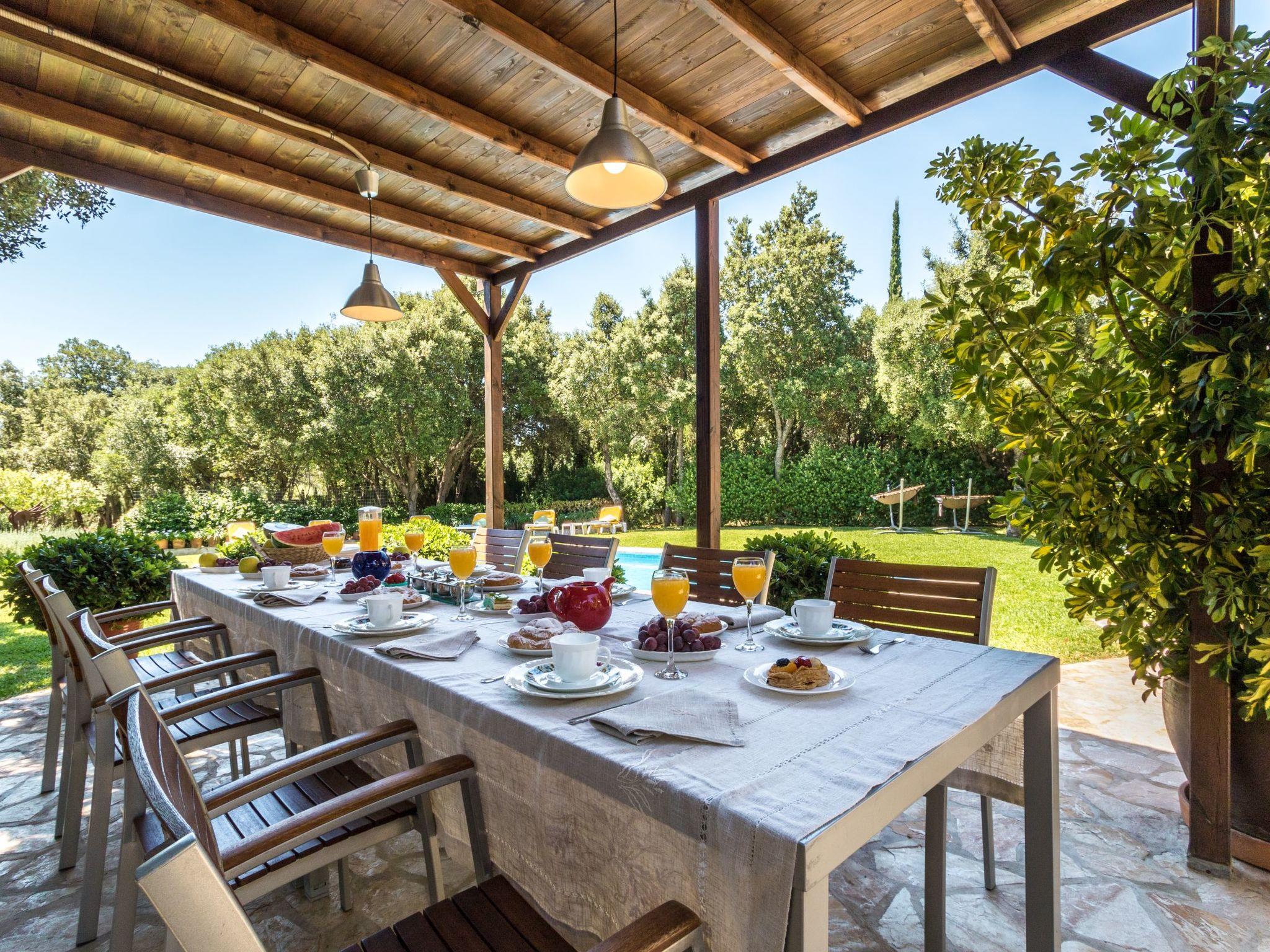Die geräumige Villa ist 180 m² groß und verfügt über zwei Schlafzimmer mit je einem Doppelbett (eines 1,80 m x 2,00 m und das andere 1,35 m x 2,00 m) und ein Schlafzimmer mit zwei Einzelbetten (0,90 m x 2,00 m), jeweils mit eigenem Zugang zu einem der vier Bäder. Im Winter können Sie das Haus mit Ihrem eigenen Kamin im Wohnzimmer heizen. Das Holz dafür wird vom Eigentümer zur Verfügung gestellt. Es gibt auch eine Heizung. Im Wohnzimmer gibt es auch Satellitenfernsehen, DVD-Player und Stereoanlage. Die voll ausgestattete Küche verfügt über einen Kühlschrank, eine Kaffeemaschine, einen Herd, eine Mikrowelle, einen Geschirrspüler und einen Esstisch mit acht Sitzplätzen. Darüber hinaus ist das Haus mit einer Alarmanlage und Wi-Fi ausgestattet. Sie können das Internet sogar von Ihrem Garten aus nutzen.