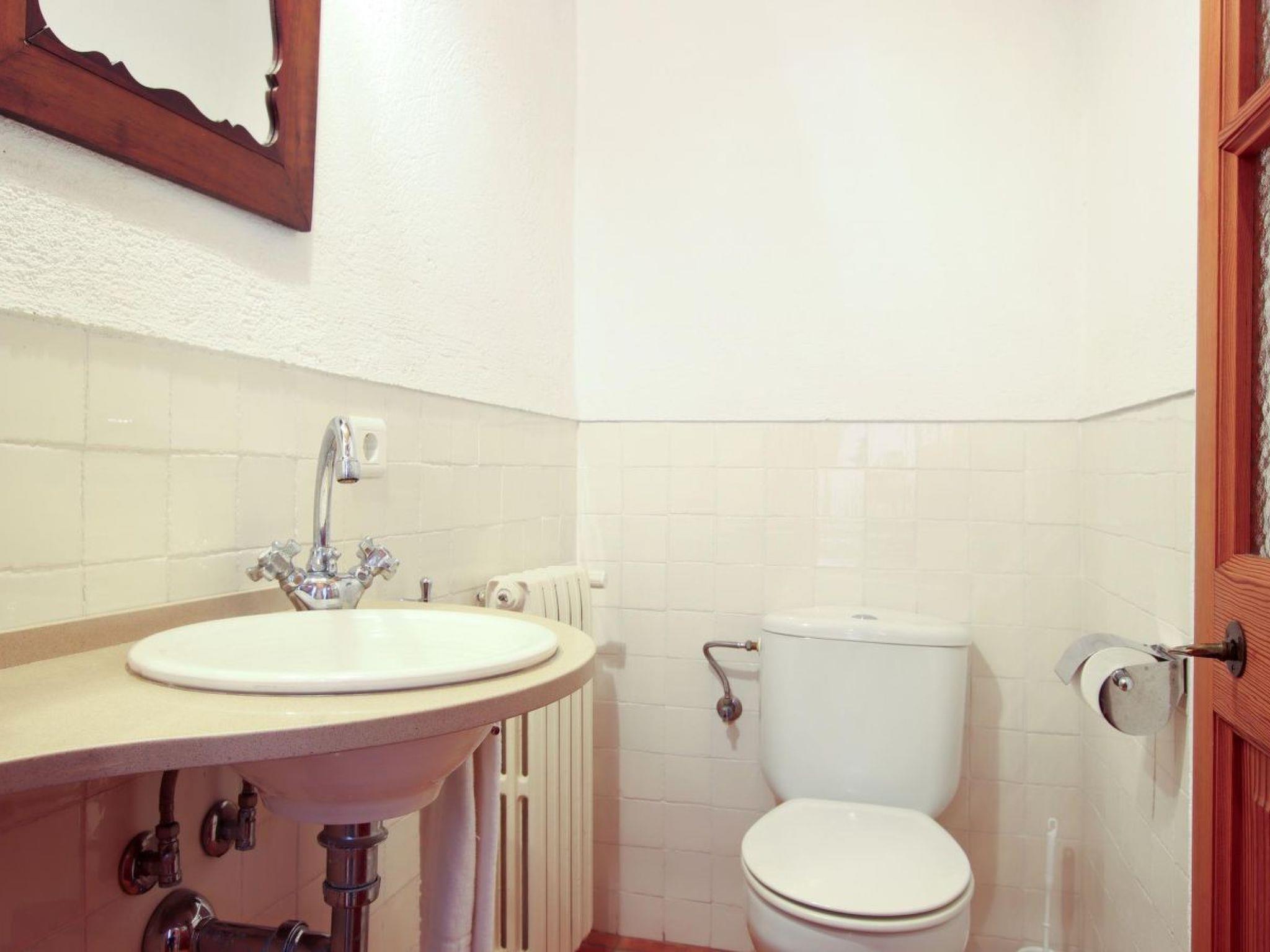 Im Inneren zeigt die Villa Martorellet ihren rustikalen Charme mit einem Split-Level-Wohnzimmer mit bequemen Sitzgelegenheiten, Flachbildfernseher und einem gemütlichen Kamin, alles unter einer Holzbalkendecke und umgeben von freiliegenden Steinmauern. Das Erdgeschoss beherbergt auch ein helles Esszimmer mit großen Fenstern mit Blick auf den Garten und eine voll ausgestattete Küche, die auf eine hintere Terrasse führt. Mit allem, was Sie brauchen, von der Spülmaschine bis zum Wi-Fi, haben Sie den Komfort von zu Hause, während Sie weg sind.