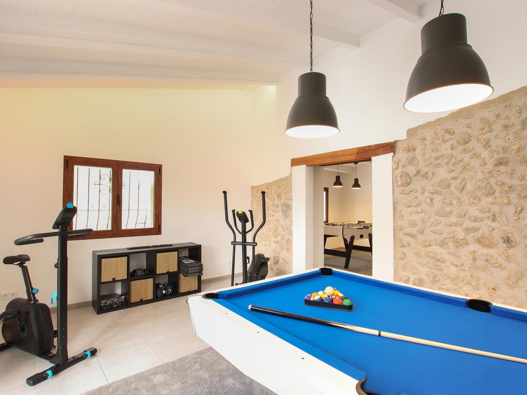 - Freizeitraum mit Billard, Heimtrainer, Ellipsentrainer, Tischfußball, Smart TV und Klimaanlage.