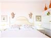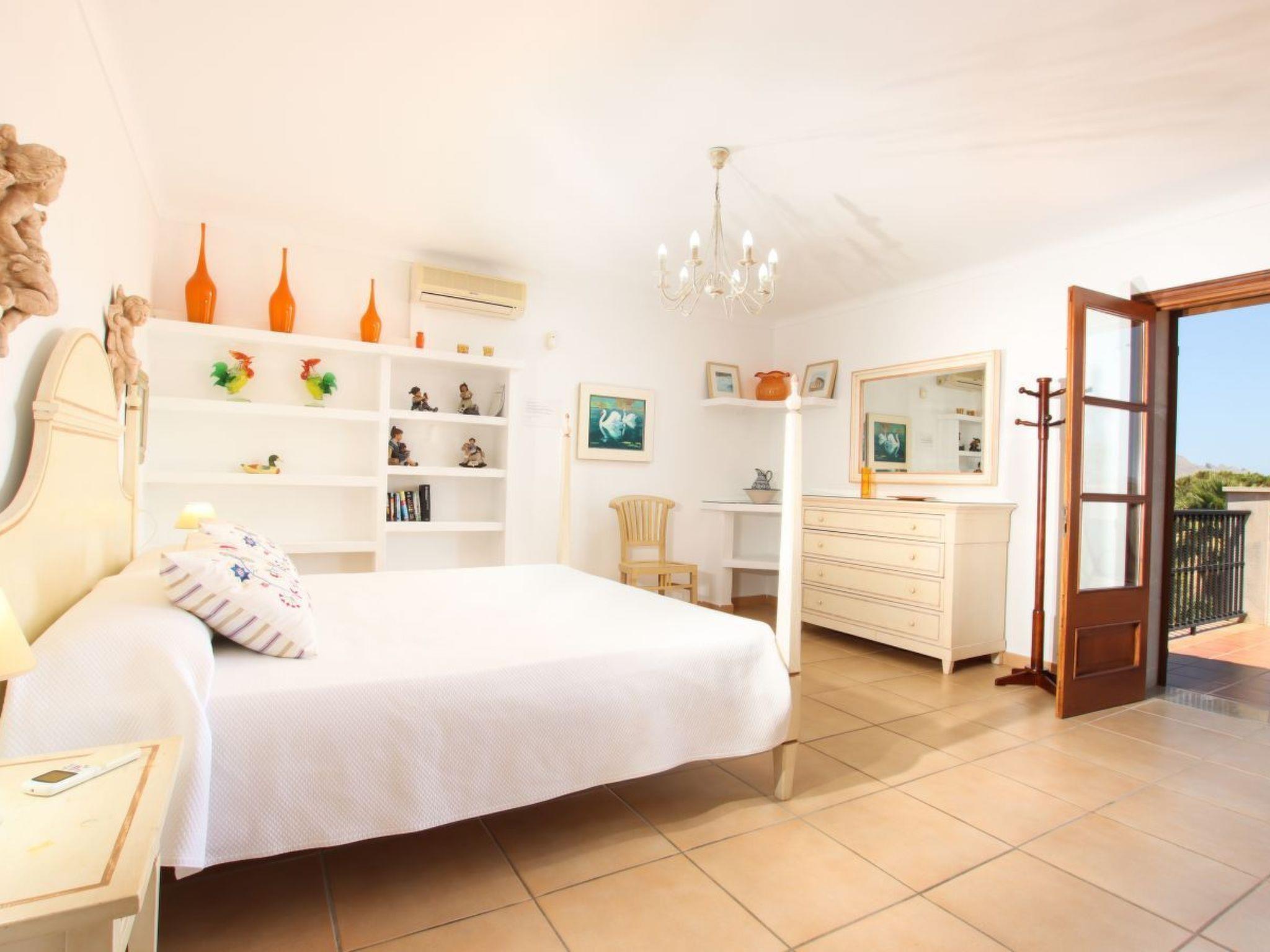 Im Obergeschoss befindet sich das Hauptschlafzimmer mit einem Kingsize-Mahagonibett, einem individuell geschnitzten Kopfteil und Einbauschränken. Dieses Zimmer hat ein wunderschönes en-suite Badezimmer und eine private, möblierte Sonnenterrasse mit weitem Meer- und Bergblick. Das zweite Schlafzimmer verfügt ebenfalls über ein weiß gestrichenes Kingsize-Bett mit geschnitztem Kopfteil und Einbauschränken, ein eigenes Bad und eine eigene möblierte Sonnenterrasse, die zum Entspannen einlädt, während man den Blick auf den Sonnenuntergang genießt. Das dritte Schlafzimmer, ein Superior-Doppelzimmer, verfügt über Teakholzbetten und Einbauschränke, ein komplettes Badezimmer und eine eigene möblierte Terrasse mit Blick auf den Pool. Das vierte Schlafzimmer verfügt ebenfalls über zwei Teakholzbetten und Einbauschränke, ein komplettes Badezimmer und eine private Sonnenterrasse mit weitem Meer- und Bergblick. Alle Schlafzimmer sind klimatisiert. Um Energie zu sparen und die Effizienz zu steigern, verfügt diese Villa über eine programmierte Klimaanlage, die während der Mittagszeit und in der Nacht genutzt werden kann.