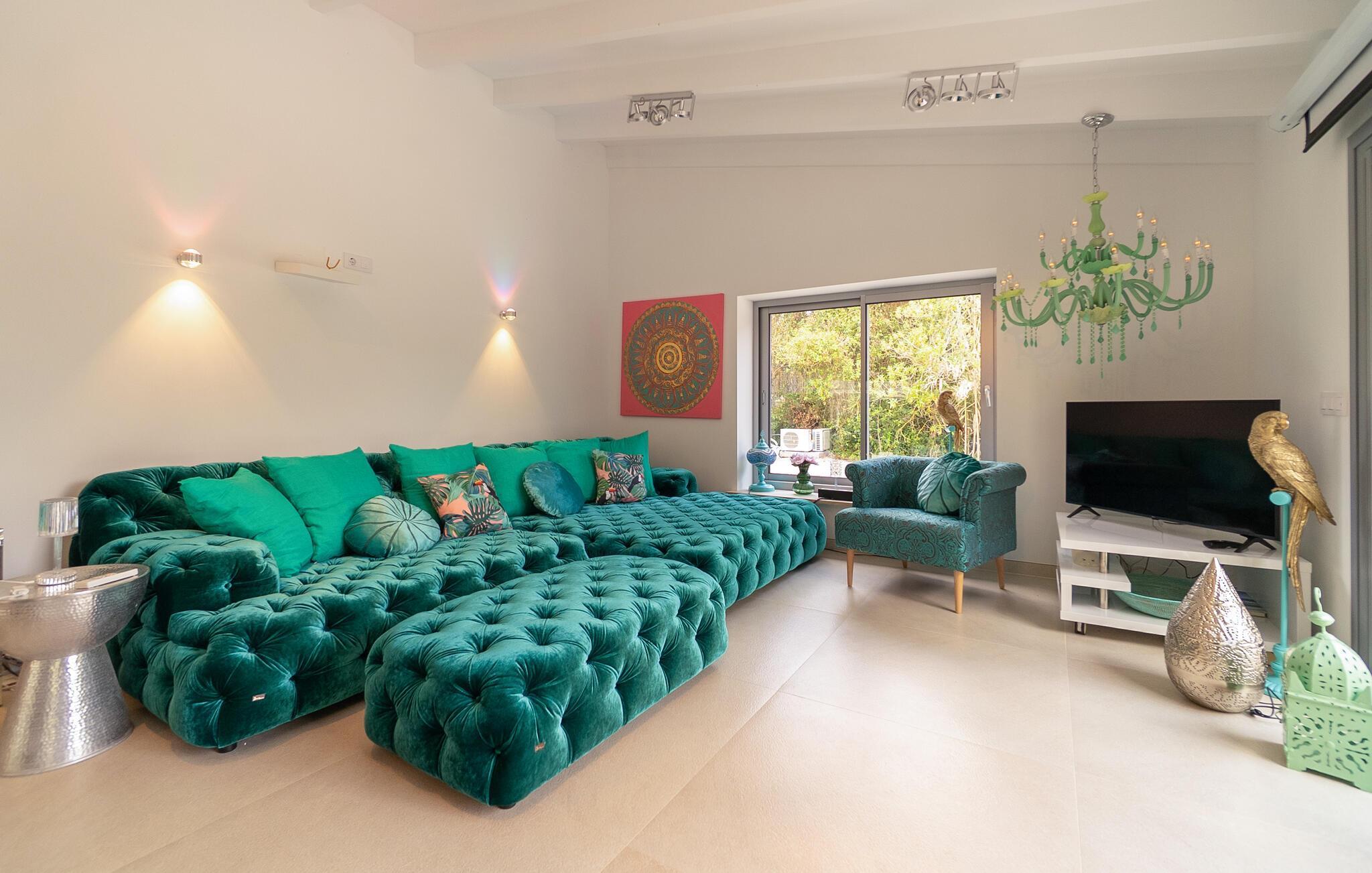 Eingebettet in die ruhige Natur und zugleich nur wenige Autominuten vom Dorfplatz und guten Einkaufsmöglichkeiten entfernt, begrüßt Sie diese wunderschöne Finca. Treten Sie ein und lassen Sie sich vom hellen und frischen Interieur begeistern. Zaubern Sie mediterrane Gerichte in der einladenden Küche, nehmen Sie am stilvollen Esstisch Platz und machen Sie es sich nach einem langen Tag für einen entspannten Filmabend auf dem extravaganten Sofa gemütlich.