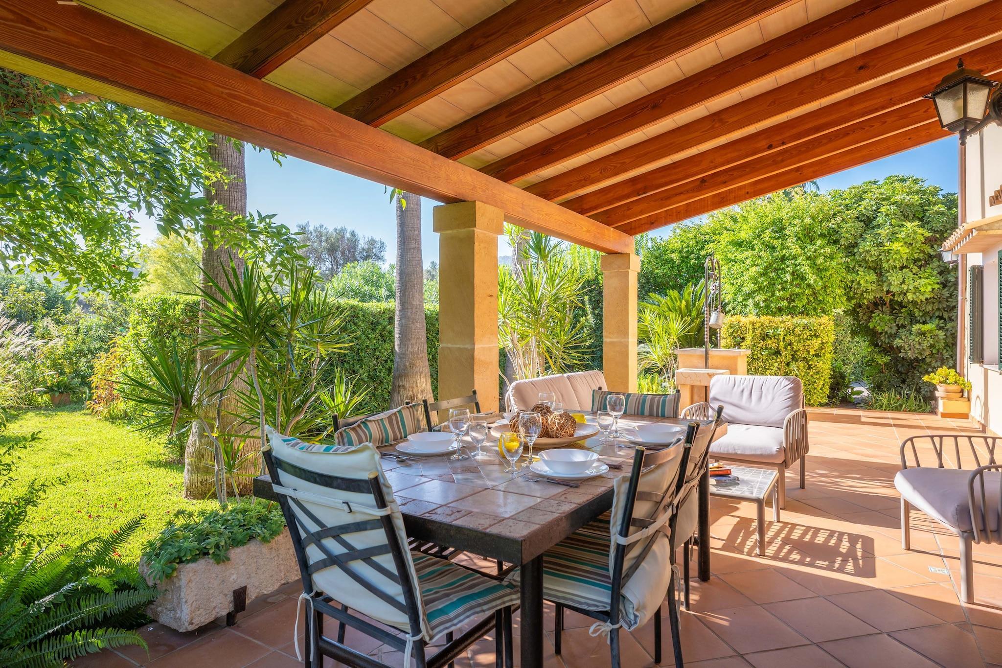Sie werden den charmanten Außenbereich dieses Hauses genießen, da es über Terrassen, Veranden und Gartenbereiche verfügt. Sie können auf den 4 Sonnenliegen ein Sonnenbad nehmen oder mit den Kindern auf dem Rasen spielen, der einen Teil des Hauses umgibt. Die möblierte Terrasse mit zwei Sesseln und einem gemütlichen Sofa ist ideal, um ein Buch zu lesen oder ein Glas guten mallorquinischen Wein zu genießen. Die vollständig möblierte Veranda ist ideal, um angenehme Momente mit der Familie oder Freunden zu verbringen oder um ein leckeres Barbecue zuzubereiten. Die Privatsphäre des Hauses ist total und das Grundstück ist eingezäunt. Die 210 m2 Wohnfläche, die sich auf zwei Etagen verteilen, werden Ihren Urlaub zu einer großartigen Zeit der Entspannung und Erholung machen. Im Erdgeschoss finden Sie ein Schlafzimmer mit einem Doppelbett und zwei Badezimmer mit Dusche, eines davon im Freien. Wenn Sie mit einem Baby reisen, stellen wir Ihnen gerne ein Kinderbett und einen Hochstuhl zur Verfügung. Das Wohnzimmer ist zum gleichen Raum wie das Esszimmer hin offen. Hier finden Sie ein Sofa, auf dem Sie Ihre Lieblingsserie im Satellitenfernsehen sehen können, daneben steht ein bequemer Tisch mit Stühlen, an dem Sie mit der Familie zu Mittag oder Abend essen können. Die Küche, unabhängig, ist geräumig und komfortabel, ist aus Glaskeramik und verfügt über alle notwendigen Utensilien, um Ihre besten Gerichte bequem zu kochen. Im ersten Stock befinden sich zwei weitere Schlafzimmer; eines mit Doppelbett und eines mit zwei Einzelbetten, beide mit Kleiderschrank und Ventilator. Es gibt auch ein drittes Badezimmer mit Badewanne. Auf dieser Etage befindet sich auch eine Terrasse mit schönem Blick auf die Landschaft und die Berge. Pollença ist ein schönes Dorf am Fuße der Sierra de Tramuntana, das hauptsächlich von Einheimischen bewohnt wird. Pollença hat einen Hafen mit 7 km langen Stränden und ein reichhaltiges Geschäfts- und Gaststättenleben, das zum Bummeln einlädt oder zum Verzehr von frischem Fisch oder typisch mallorquinischen Gerichten in den Restaurants. Die Geschichte von Pollença kann man bei einem Spaziergang durch die Altstadt erleben, die seit Jahren intakt ist. Sie können wandern gehen und das Heiligtum von Lluc, das Dorf Llucalcari oder die in unserer Sierra versteckte Escorca besuchen. Ein Wechsel der Handtücher und der Bettwäsche während des Aufenthaltes ist inbegriffen. Eventuelle Nebenkosten müssen beim Anbieter nachgefragt werden. Haustiere sind verboten. Partys oder ähnliche Veranstaltungen sind nicht gestattet. Es gibt Freiluftparkplätze für 2 Autos. Entfernungen Strand: 5.5 km - Cala Sant Vicenç Flughafen: 64.0 km - Son Sant Joan Golfplatz: 4.4 km - Golf Pollença Ortsmitte: 1.3 km - Pollença Bahnhof: 15.4 km - Estació de Sa Pobla Bushaltestelle: 0.5 km - Ctra. Pollença-Pto. Pollença, Pollença Fähre: 14.8 km - Port d'alcudia Krankenhaus: 13.8 km - Hospital Juaneda muro Touristen Lizenz: ETV/86Einheitsregister: ESFCTU0000070300003236730000000000000000000000ETV/860 Heizung (Jan - Dezember): 20 EUR/Nacht (optional)