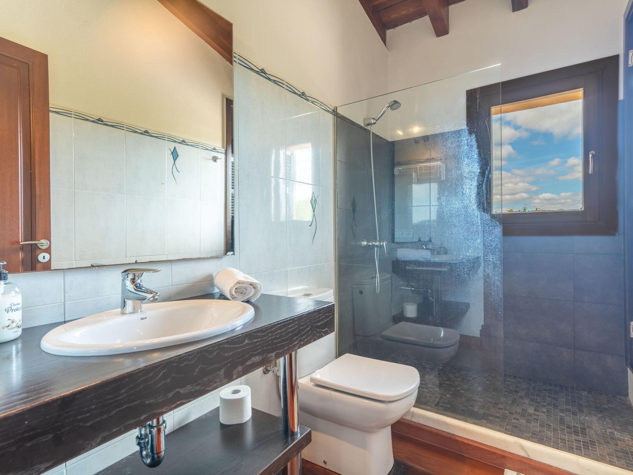 "Son Mainou", 5-Zimmer-Villa 270 m2 auf 2 Stockwerken. Objekt geeignet für 4 Erwachsene + 2 Kinder. Geräumig und hell, sehr komfortabel und modern eingerichtet: Wohn-/Esszimmer mit offenem Kamin (nur Deko), Sat-TV, Klimaanlage und Warmluftheizung. Ausgang zum Gartensitzplatz, zum Schwimmbad. 1 Doppelzimmer mit 1 franz. Bett (1 x 150 cm, Länge 200 cm), Bad/Dusche/WC, Sat-TV, Klimaanlage und Warmluftheizung. Ausgang zum Garten. Grosse, offene Küche (Backofen, Geschirrspüler, 4 Glaskeramikplatten, Toaster, Wasserkocher, Mikrowelle, elektrische Kaffeemaschine) mit Esstisch, Durchreiche, Klimaanlage und Warmluftheizung. Ausgang zum Gartensitzplatz. Dusche/WC, Bad oder Dusche/WC. Obergeschoss: 1 Doppelzimmer mit 1 franz. Bett (1 x 150 cm, Länge 200 cm), Klimaanlage und Warmluftheizung. 1 grosses Doppelzimmer mit 1 franz. Bett (1 x 150 cm, Länge 200 cm). Ausgang zum Balkon. 1 Doppelzimmer mit 1 franz. Bett (1 x 150 cm, Länge 200 cm), Dusche/WC, Klimaanlage und Warmluftheizung. Ausgang zum Balkon. Bad/WC. Natursteinboden. Gartensitzplatz. Terrassenmöbel, Gartengrill, Liegestühle, Loggia, Sitzplatz. Sehr schöne Sicht auf die Landschaft. Zur Verfügung: Waschmaschine, Wäschetrockner, Bügeleisen, Kinderhochstuhl, Babybett bis 2 Jahre, Haartrockner. Internet (WLAN, gratis). Parkplatz beim Haus. Bitte beachten: geeignet für Familien. Nichtraucher-Haus. ETV/4859