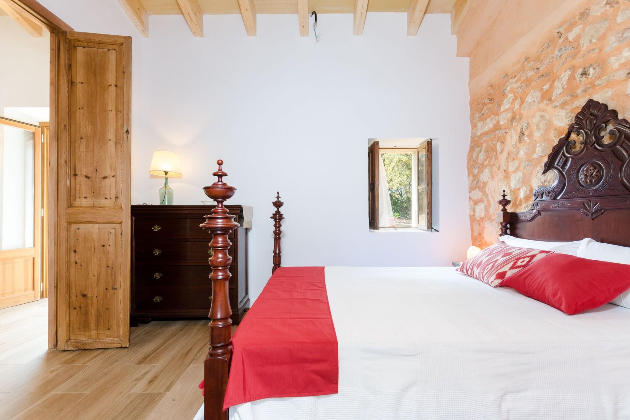 Umgeben von riesigen Feldern und einem wunderschönen Ausblick auf die Berge, ist es eine wahre Wohltat hier in den Außenbereichen der Finca Ihrer Seele und Ihrem Körper ein wenig an Entspannung zu gönnen. Genießen Sie ein tolles Frühstück auf der Terrasse, schwimmen Sie einige Runden im Chlorwasserpool, oder bereiten Sie sich und Ihren Lieben ein wohlschmeckendes Barbecue auf der Veranda zu. Der erhöht gelegene Pool hat eine Länge von 8 x 4.5 m bei einer Tiefe von 1.9 m. Hier befindet sich auch eine geschmackvoll gestaltete Grünzone mit Kunstrasen, auf der 4 Sonnenliegen für ein Bad in der Sonne oder der Genuss einer guten Lektüre parat stehen. Das Grundstück ist eingezäunt und garantiert absolute Privatsphäre. Das mit Sonnenenergie gespeiste Haus ist auf eine Wohnebene angelegt. Gleich bei Eintritt finden Sie den großzügig gestalteten Wohn-, Koch- und Essbereich vor. Hier können Sie nach Herzenslust fernsehen, sich unterhalten oder einen Aperitif verköstigen, während der Tisch gedeckt wird und am Gasherd oder im Ofen wohlriechende Speisen zubereitet werden. In der separierten Waschküche befinden sich die Waschmaschine, Bügelbrett und Bügeleisen. Für die Nachtstunden stehen Ihnen zwei Schlafzimmer mit Doppelbett zur Verfügung. Eines der Zimmer ist mit einem Badezimmer en-suite mit Dusche, sowie ausreichend Platz für ein Babybett mit Hochstuhl und einer Kommode für Ihre Kleidung ausgestattet. Im anderen Schlafzimmer befindet sich ein Kleiderständer. Das Badezimmer des Hauses ist zentral begehbar und hat eine Dusche. Porreres ist sehr authentisch und zentral zwischen Feldern und Wäldern gelegen. Im Stadtkern finden Sie alles, was Sie für einen unbeschwerten Aufenthalt benötigen, wie Supermärkte, Restaurants etc. Wenn Sie jemand sind der gerne mit dem Rad unterwegs ist und etwas vom Land sehen möchte, dann sind Sie hier genau richtig. Empfehlenswert ist auf Grund des beeindruckenden Ausblicks vor allem der Besuch des Santuario de Cura. Der nächste Strand liegt nur 24 km in Porto Colom entfernt, auch wenn die weiter entfernt gelegenen paradiesischen Strände von Sa Rapita und Es Trenc ebenfalls einen Besuch wert sind. Haustiere bis 5 kg sind willkommen! (Auf Anfrage) Eventuelle Nebenkosten müssen beim Anbieter nachgefragt werden. Haustiere bis 5.00 kg sind willkommen. Partys oder ähnliche Veranstaltungen sind nicht gestattet. Es gibt Freiluftparkplätze für 3 Autos. Entfernungen Strand: 24.1 km - Porto Colom Flughafen: 38.8 km - Son Sant Joan Golfplatz: 30.3 km - Golf Son Gual Ortsmitte: 7.5 km - Porreres Bahnhof: 17.5 km - Estació de Manacor Bushaltestelle: 8 km - Porreres Fähre: 49.6 km - Port de Palma Krankenhaus: 18 km - Hospital de Manacor Touristen Lizenz: ETV/12664Einheitsregister: ESFCTU0000070080003111670000000000000000000ETV/126645Bei der Anreise muss die Ecotasa (Touristensteuer der Balearen) bar bezahlt werden. Der zu zahlende Betrag beträgt zwischen 0.55EURO pro Nacht und Gast in der Nebensaison und 2.2EURO pro Nacht und Gast in der Hochsaison. Ab dem 9. Tag reduziert sich die Steuer um die Hälfte. Personen unter 16 Jahren sind davon ausgenommen.Die Kaution ist bei Ankuuft direkt an den Eigentümer zu übergeben.