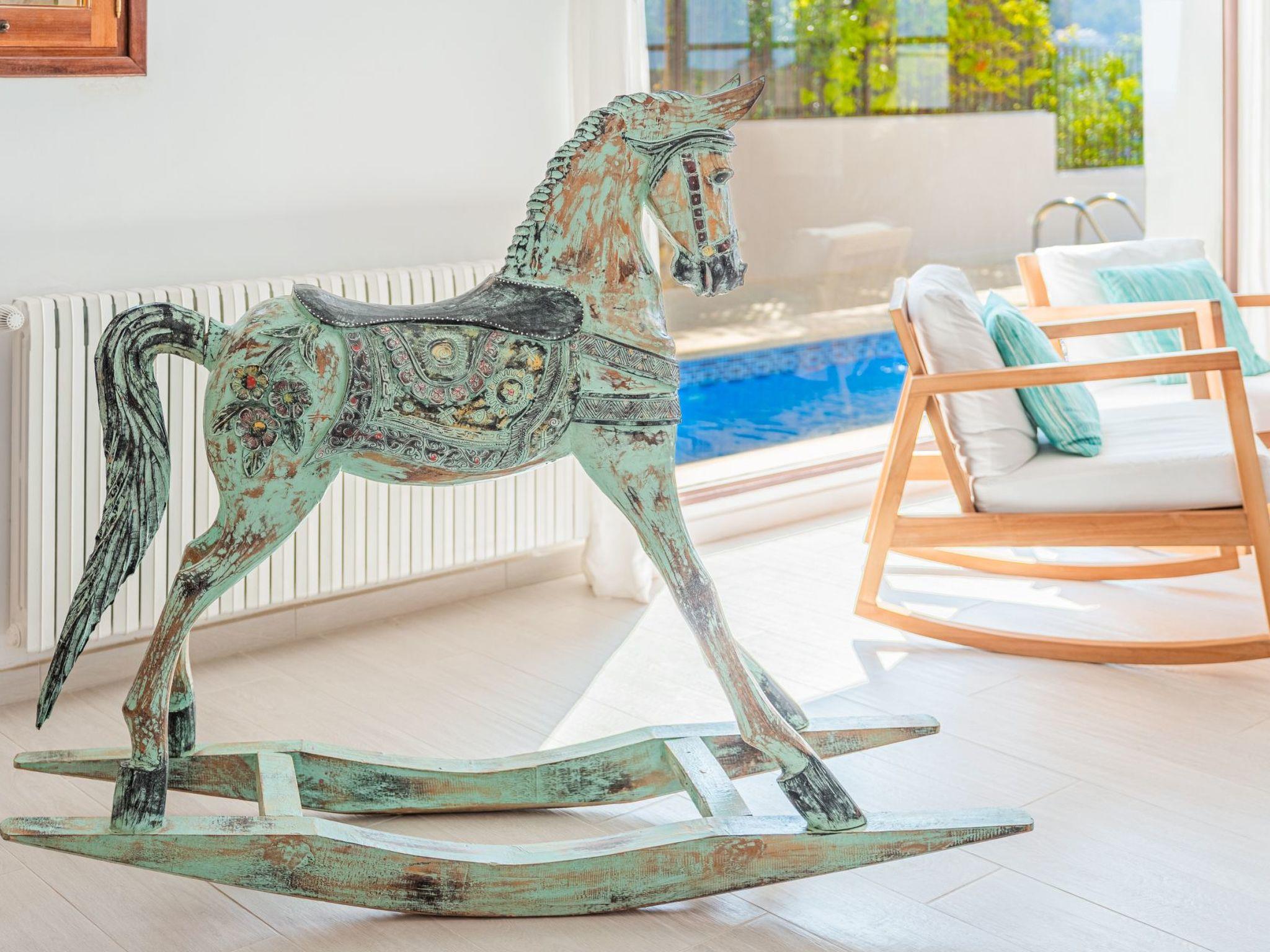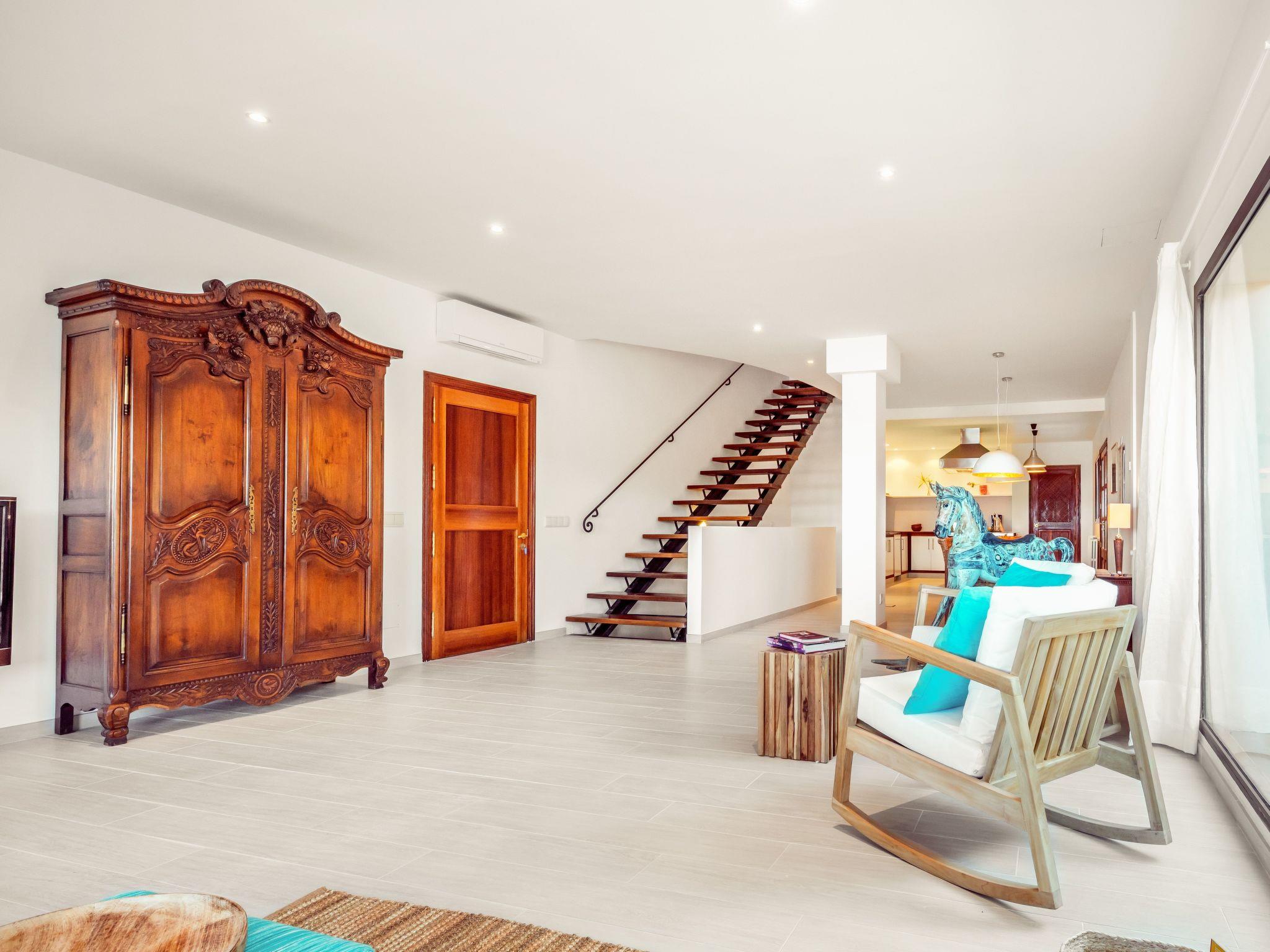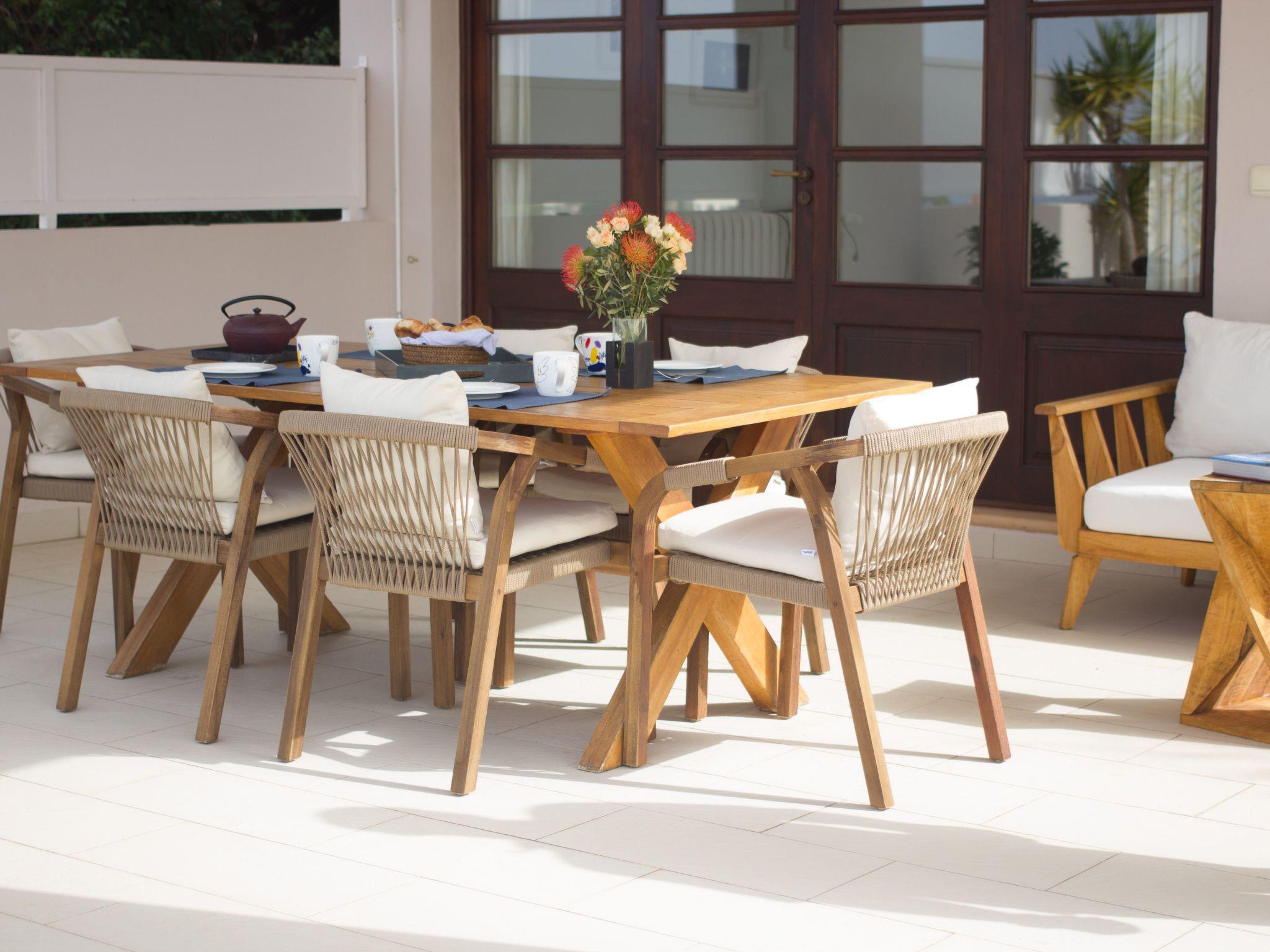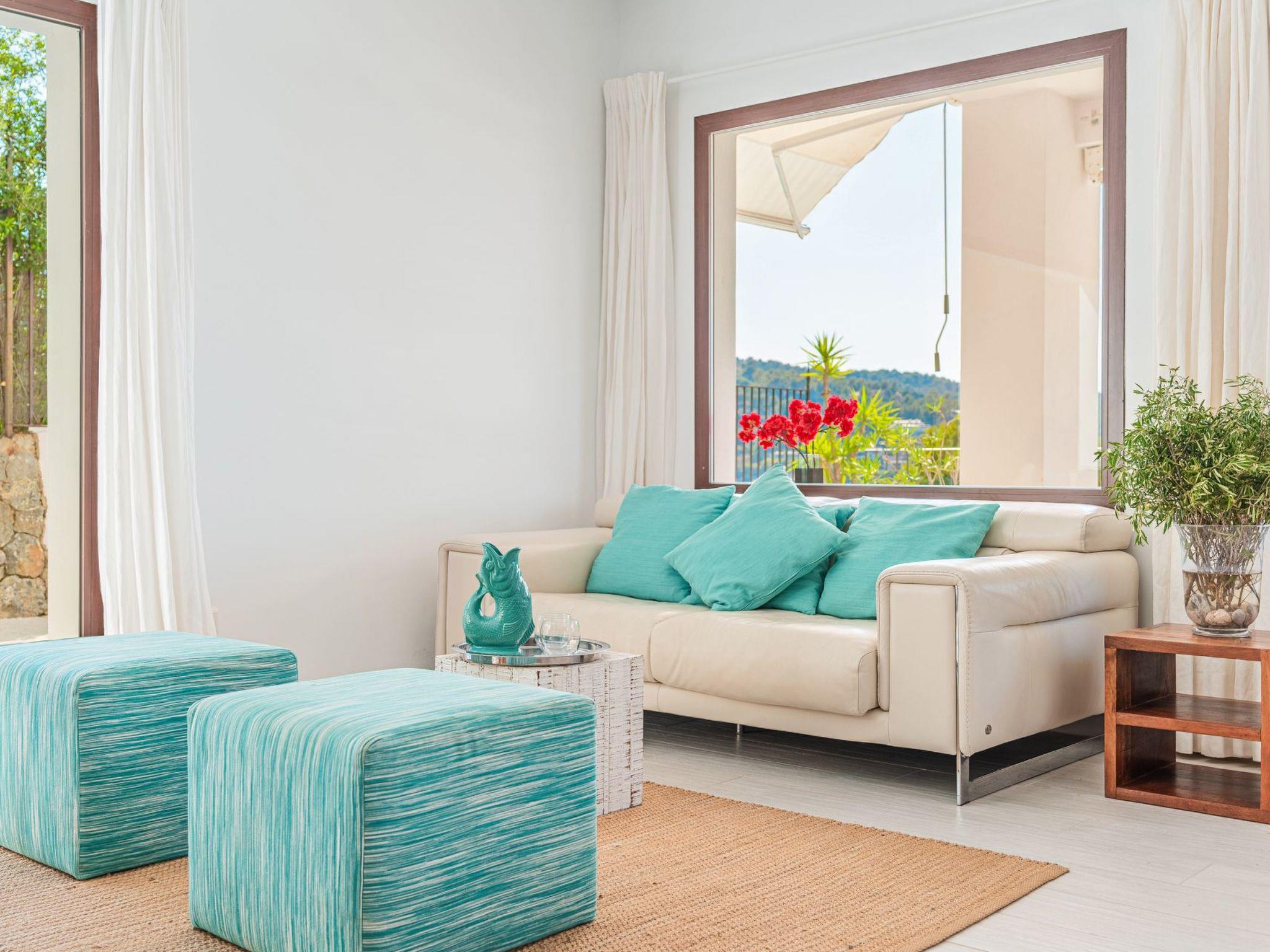 Zeitgenössischer mediterraner Baustil. Ca. 350 qm bebaute Fläche inkl. 150qm Terrasse auf 2 Etagen, 3 Schlafzimmer (mit Klimaanlage), 3 Bäder (1 en suite), großzügiger Wohn- und Essbereich, offene Küche mit großer Kochinsel (SMEG, Gas), Kühl-/Gefrierschrank (Bosch), Spülmaschine, Trockner und Waschmaschine (Miele), separater Abstellraum. Zentralheizung. Essecke für 8 Personen. Küche und Essbereich mit individuellen Schreinerarbeiten, hochwertige Ausstattung mit liebevollen Details. Wohnzimmer mit LOEWE-TV, Apple TV, bequemer Ledercouch und Schaukelstühlen. Eine Hausmanagerin und ein Hausmeister stehen bei Bedarf zur Verfügung.